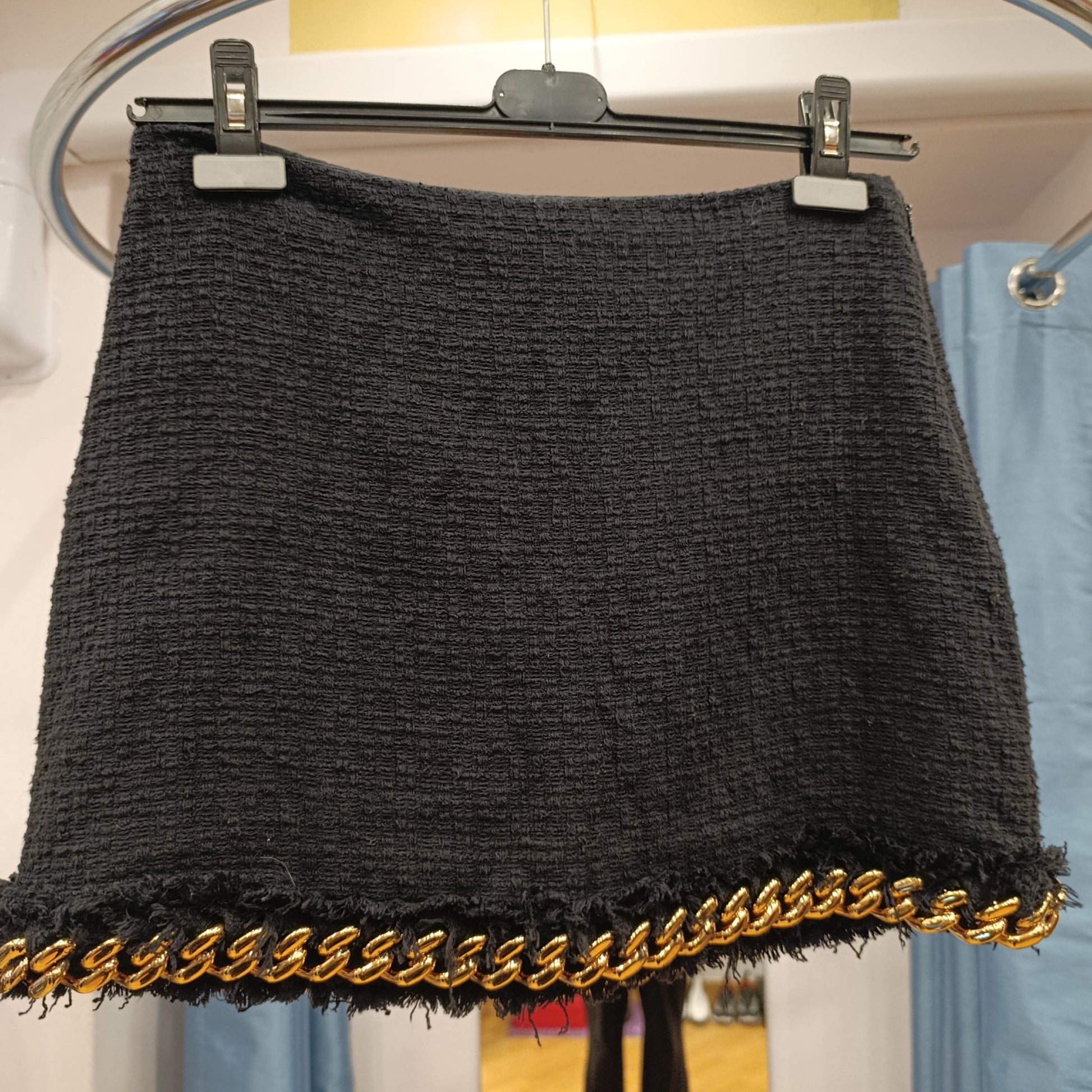 Gonna super bella e alla moda, con dettaglio sul fondo di questa catena oro che da un tocco più particolare.
