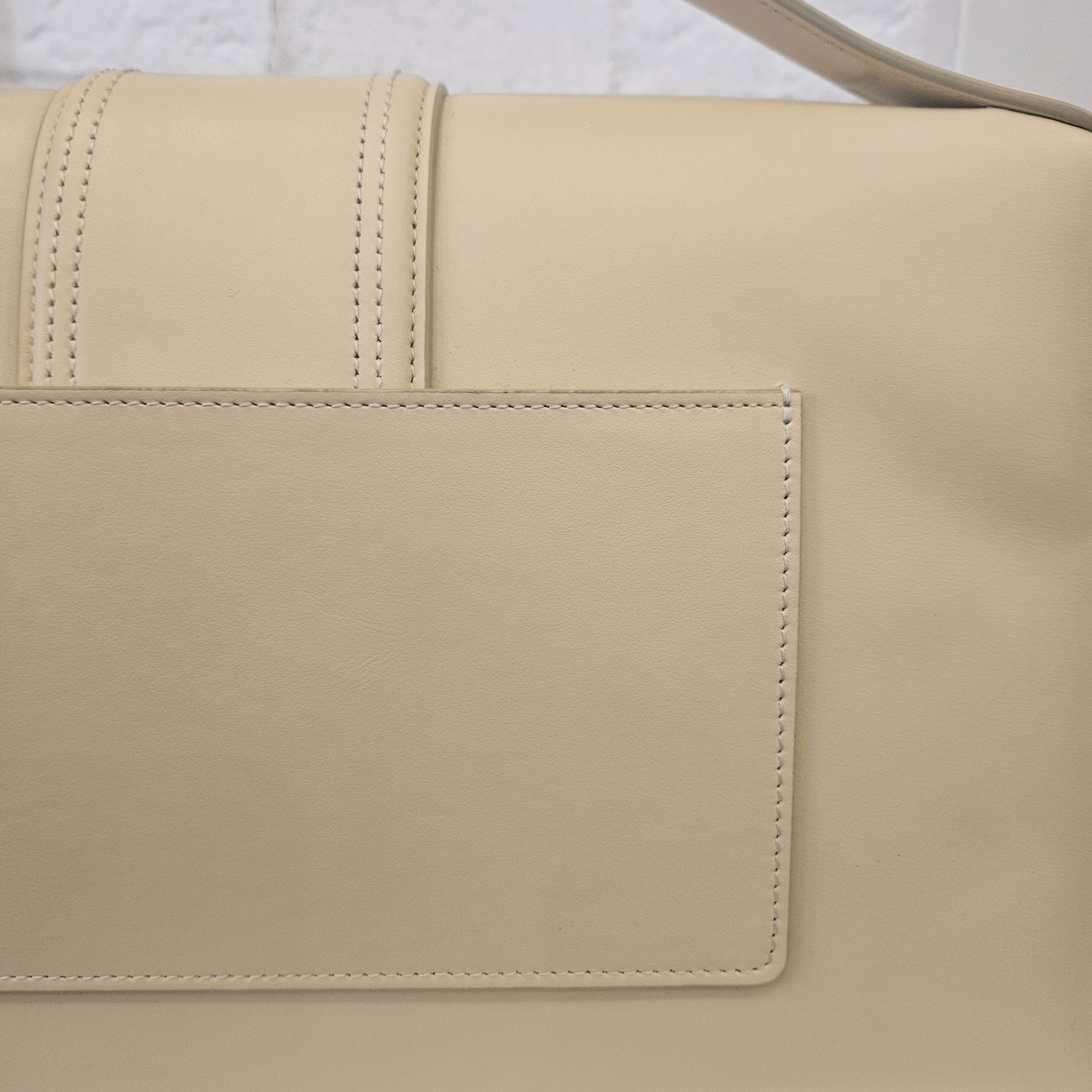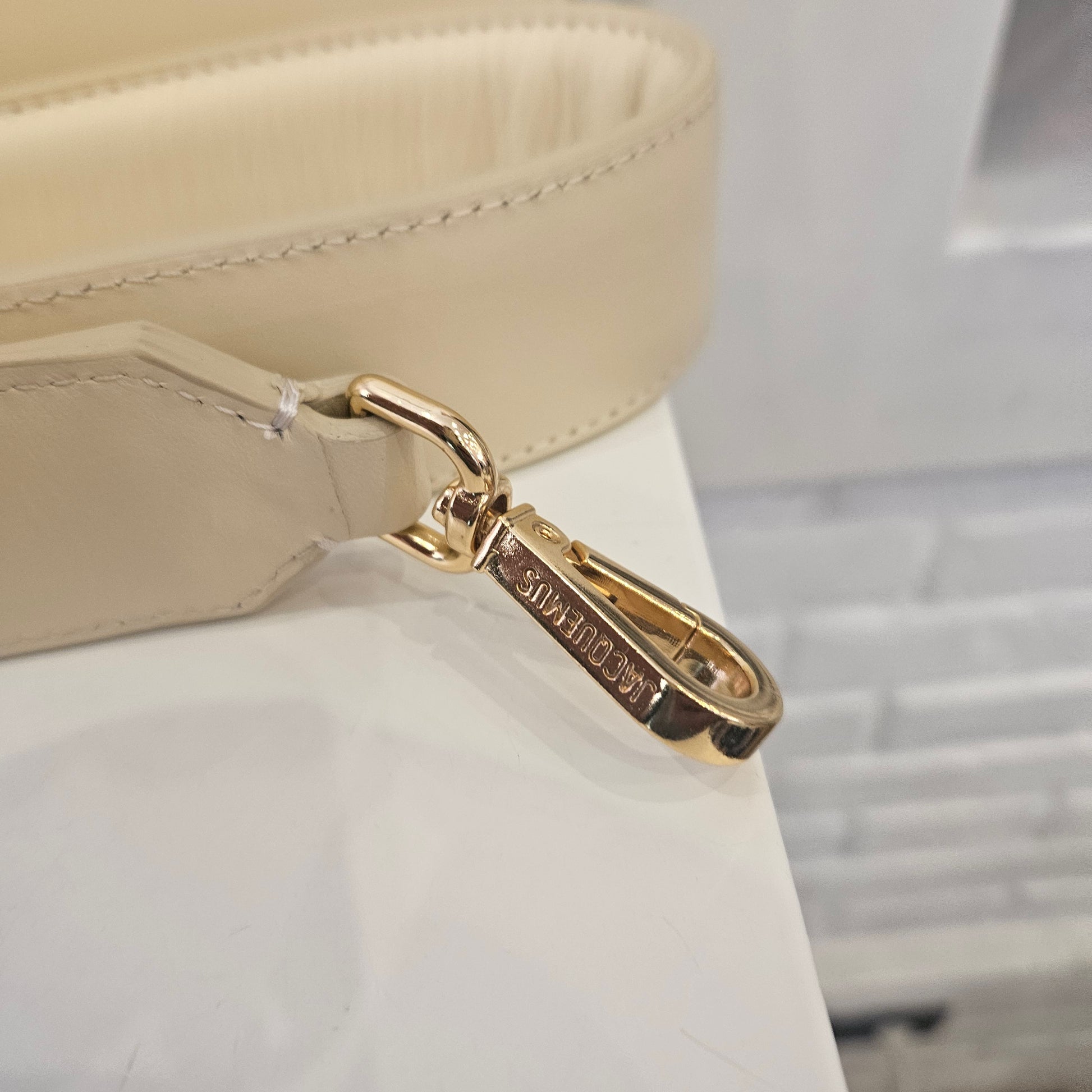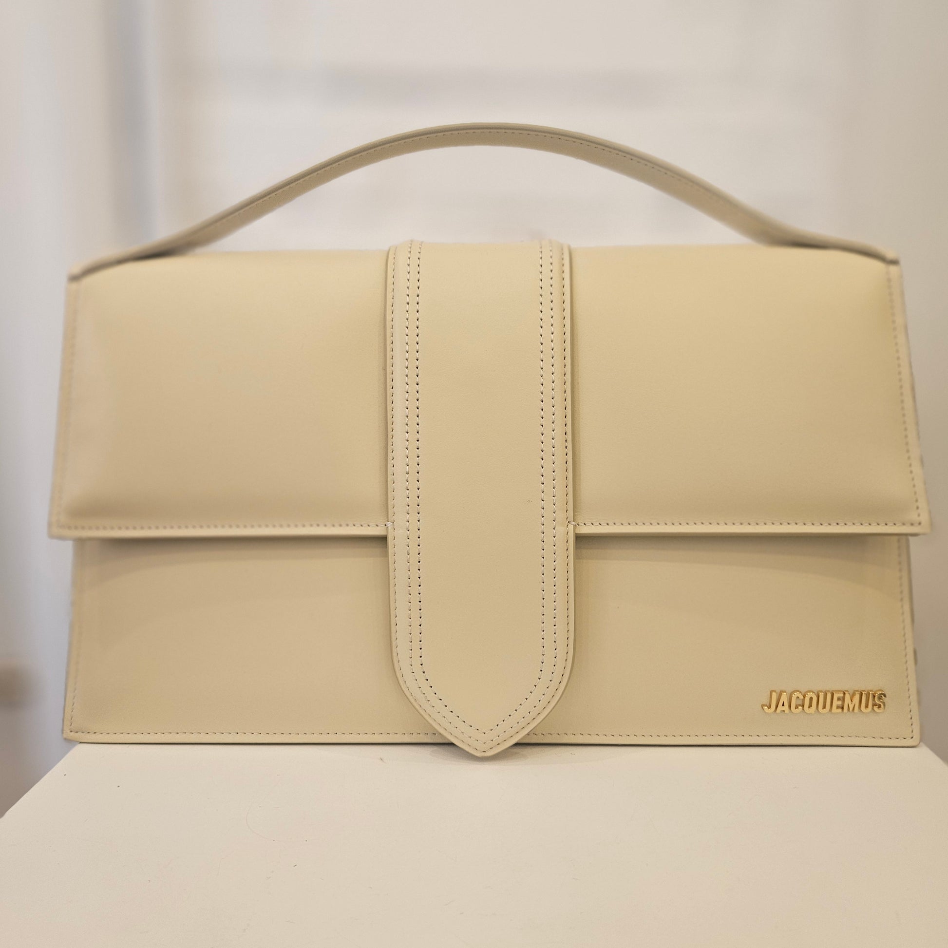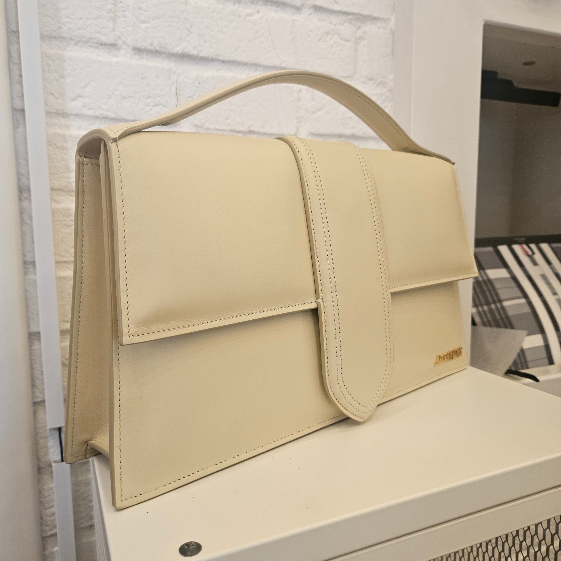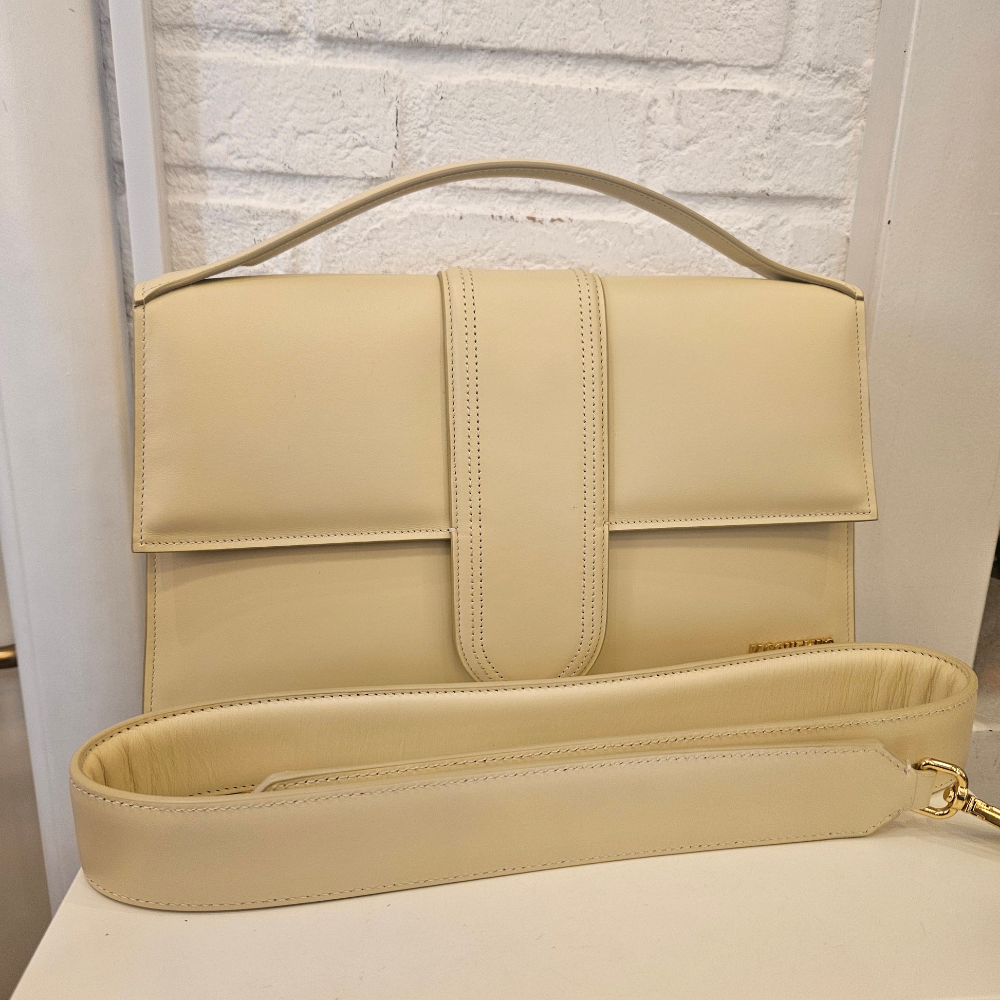 Borsa Jacquemus Le Bambino mis L in colorazione panna e dettagli metallici dorati borsa in condizioni pari al nuovo. Dotata di tracolla e dustbag