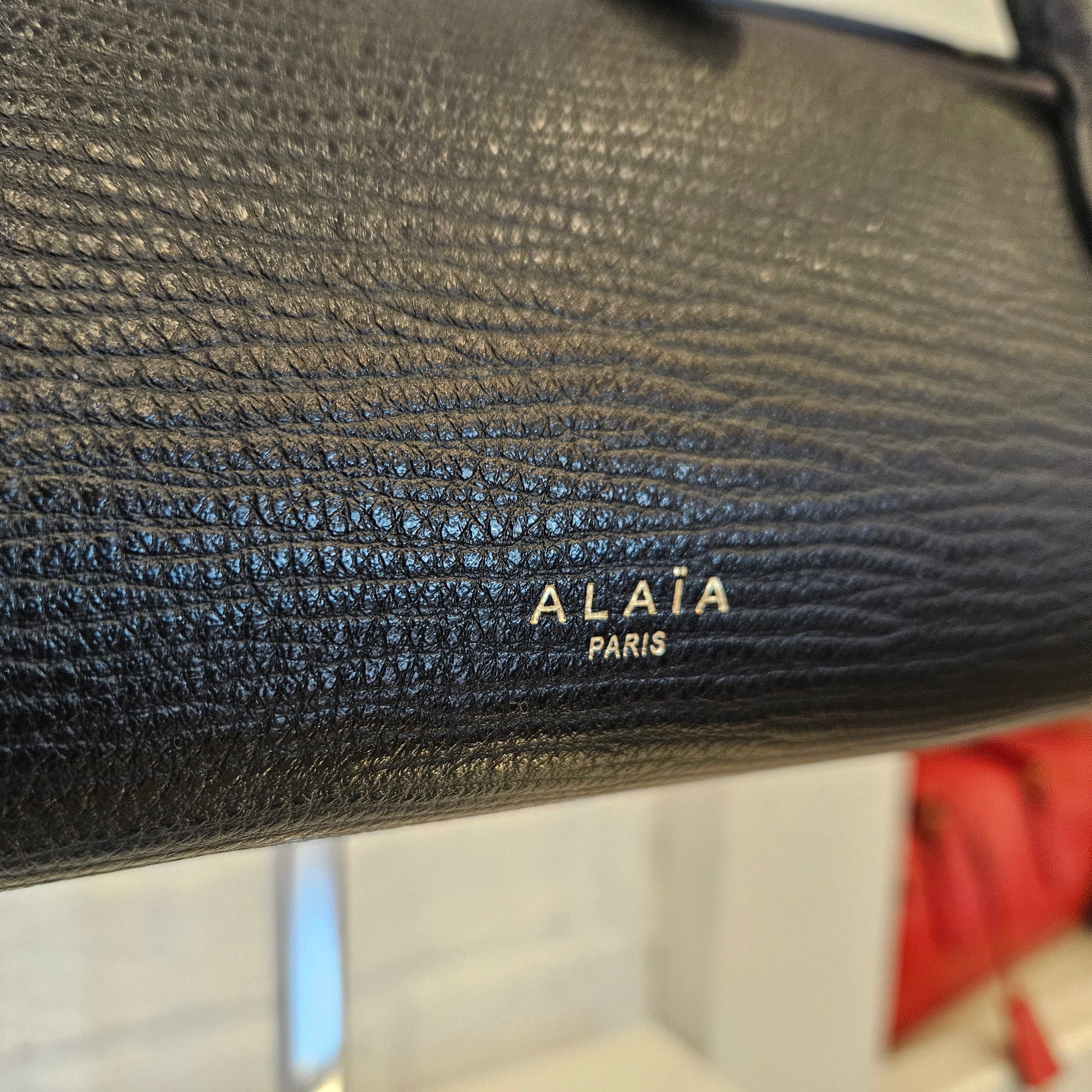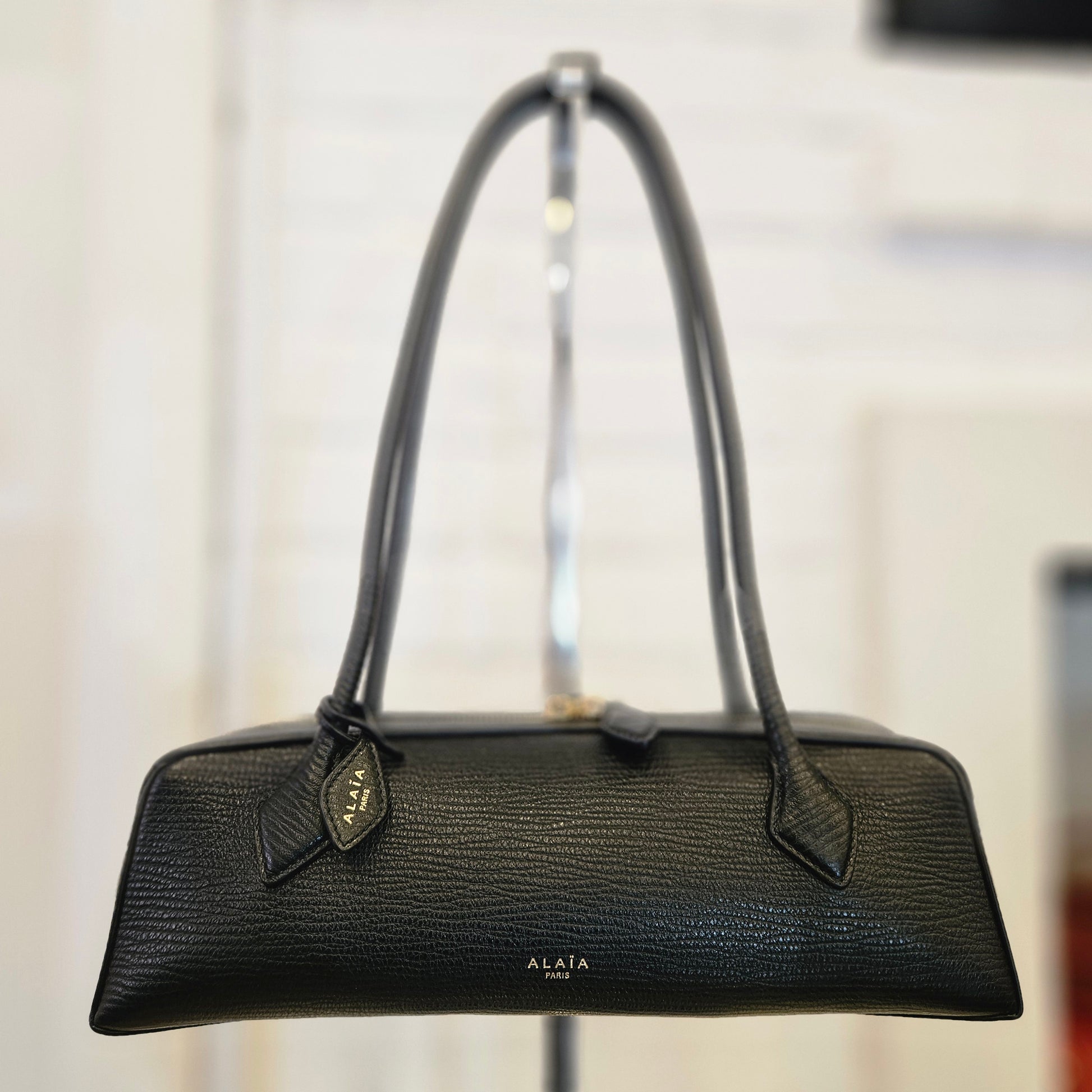 Alaïa Le Teckel in colorazione nera e dettagli metallici dorati, borsa in condizioni pari al nuovo, pelle priva di segni dovuti all'utilizzo.
