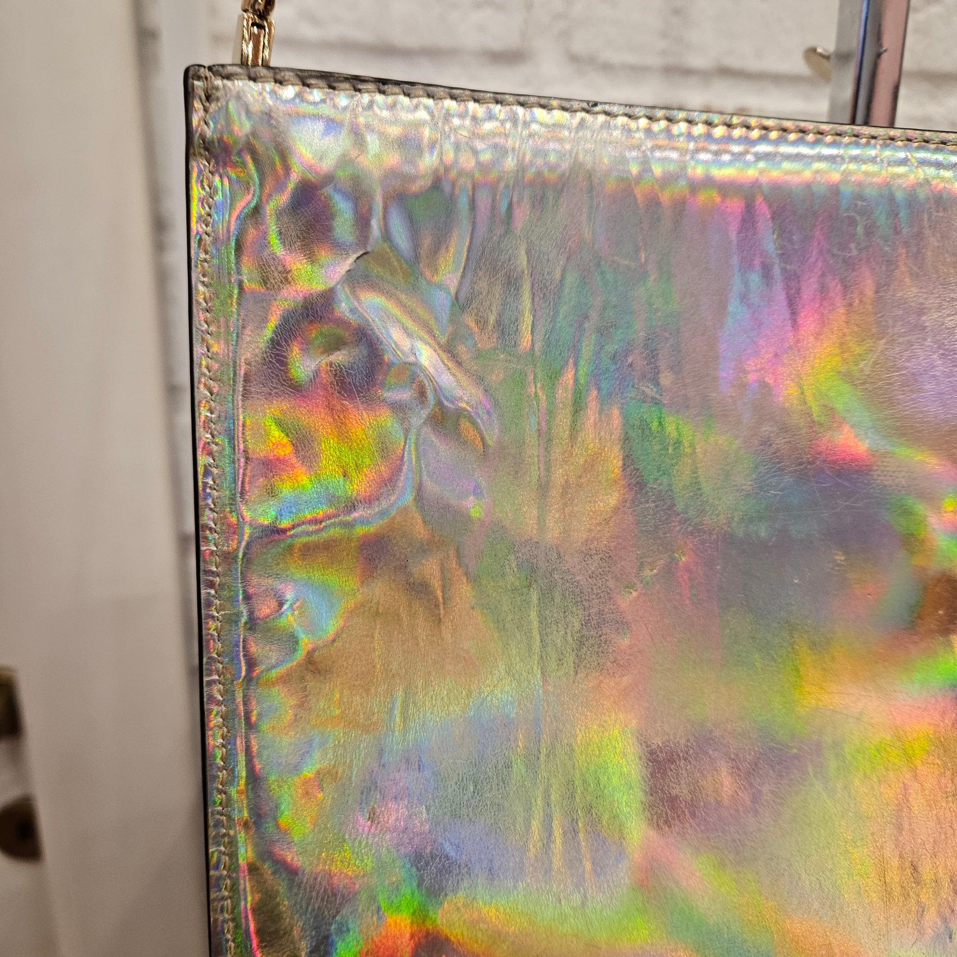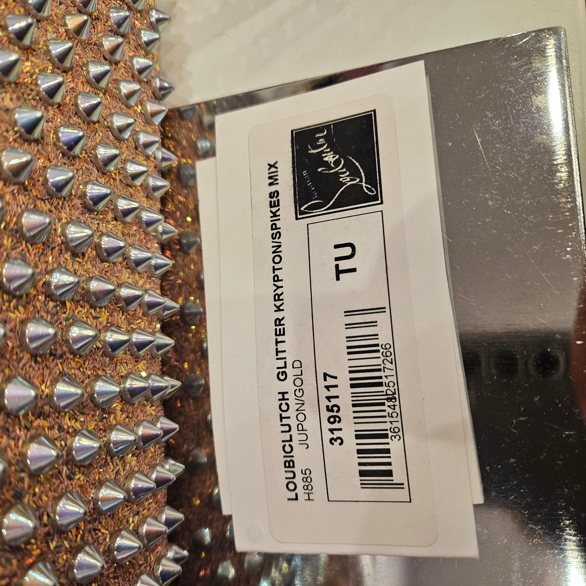 Pochette a tracolla Louboutin in pelle glitterata con borchie e retro madreperla, Pochette dalle grandi dimensioni, comodo e spaziosa interno in ottime condizioni anch'esso in pelle nella classica colorazione Louboutin . Dotata di dustbag.