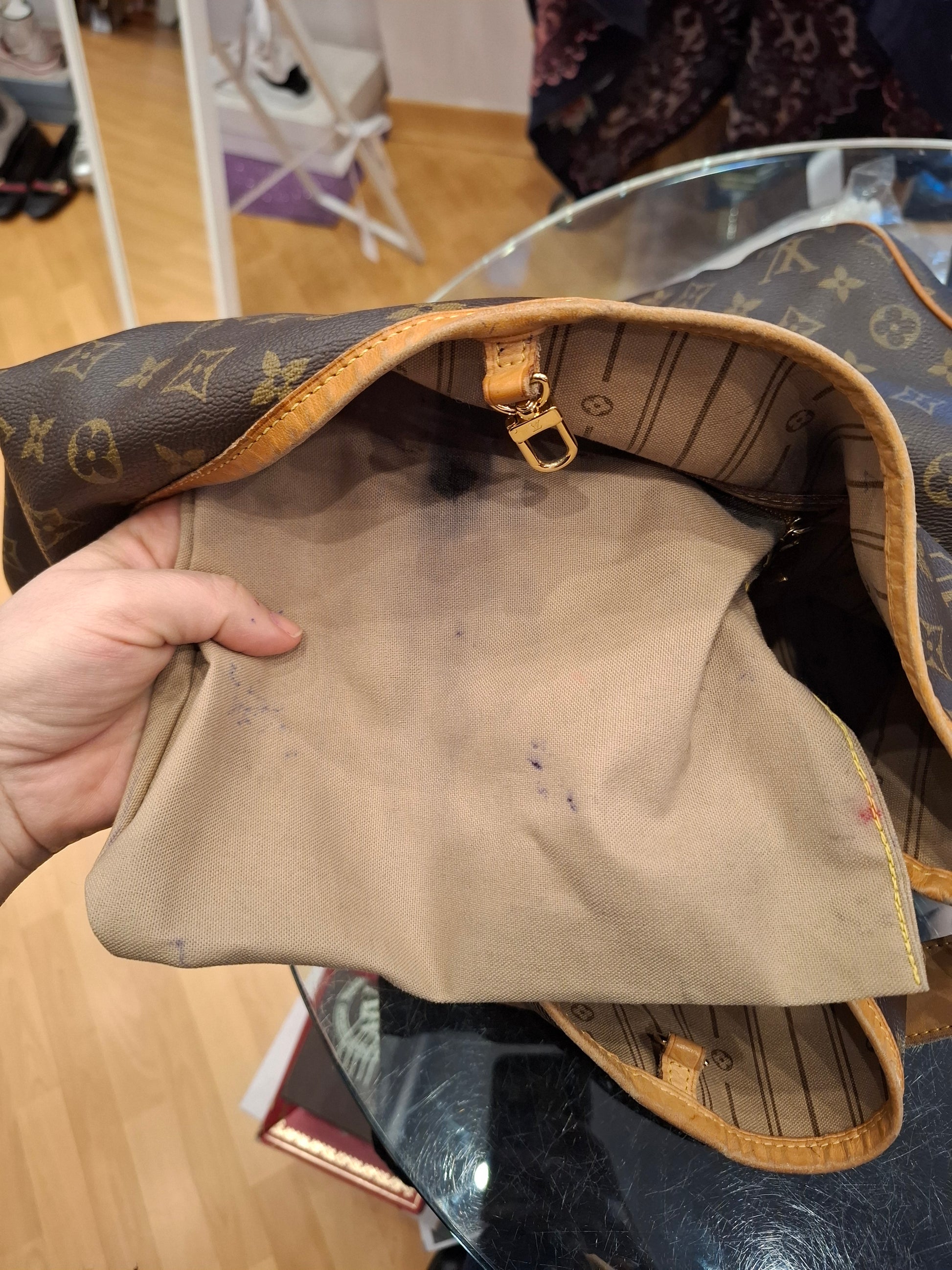 La borsa possiede: -macchie di inchiostro tasca interna