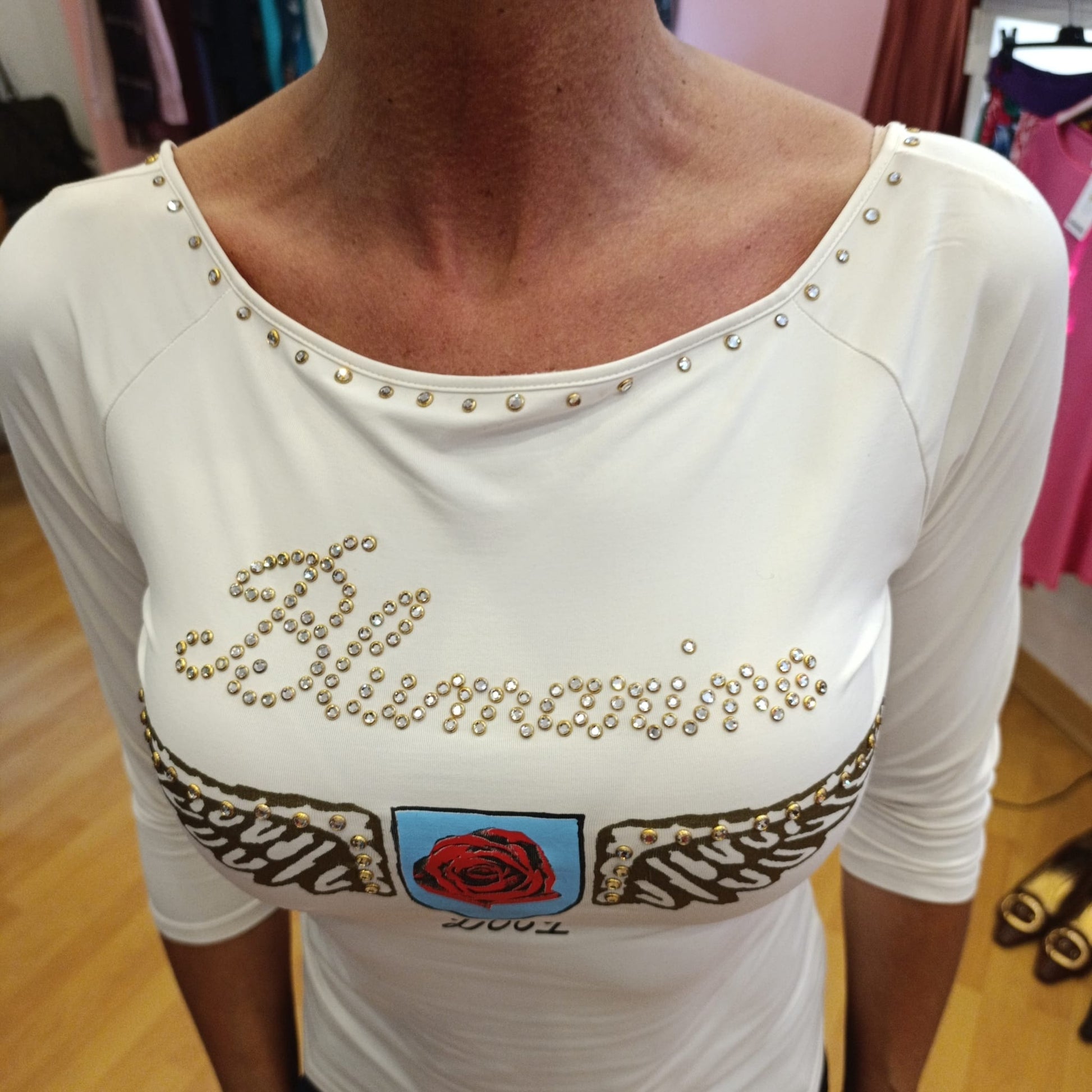 Maglia Blumarine tg 46 in colorazione bianca con scritta centrale