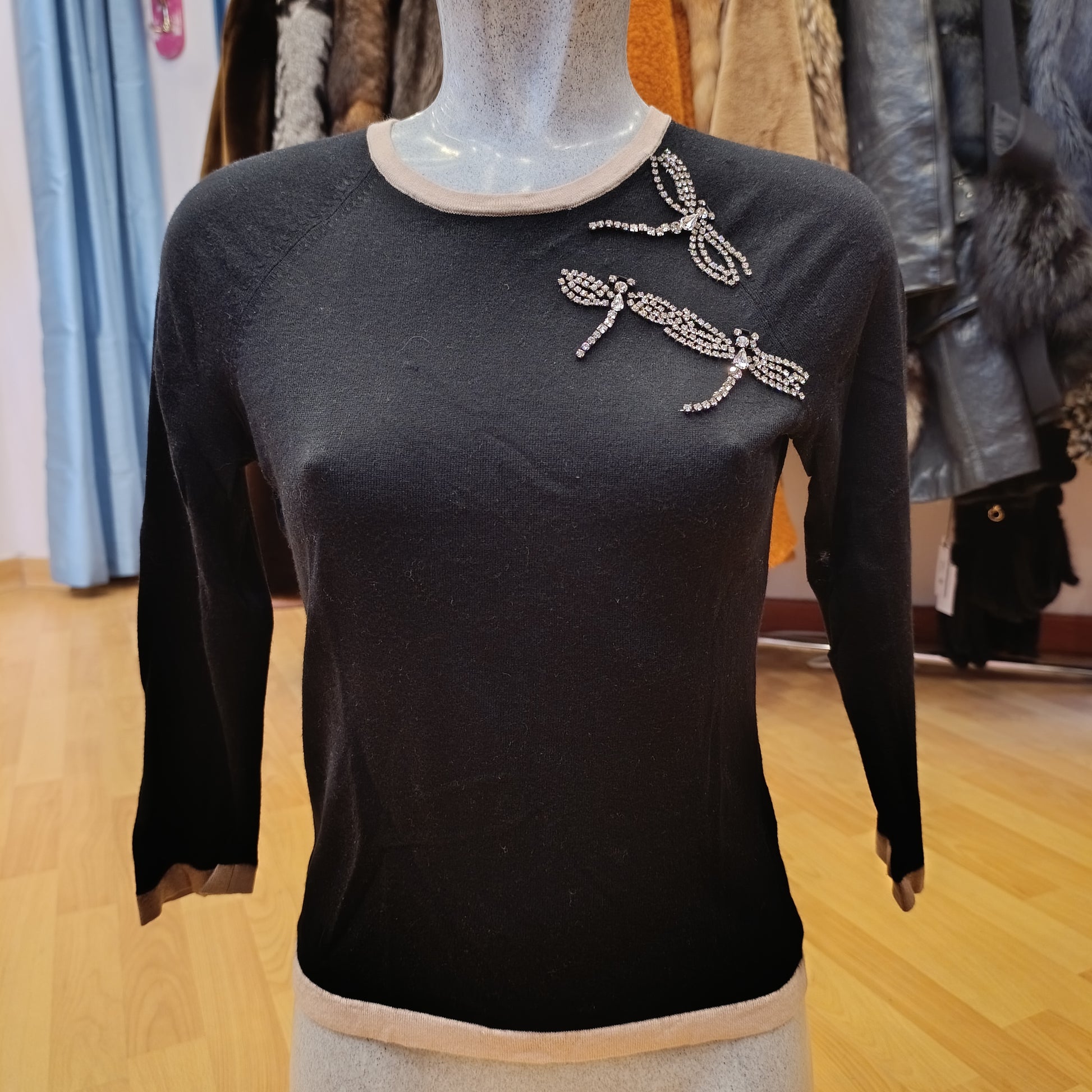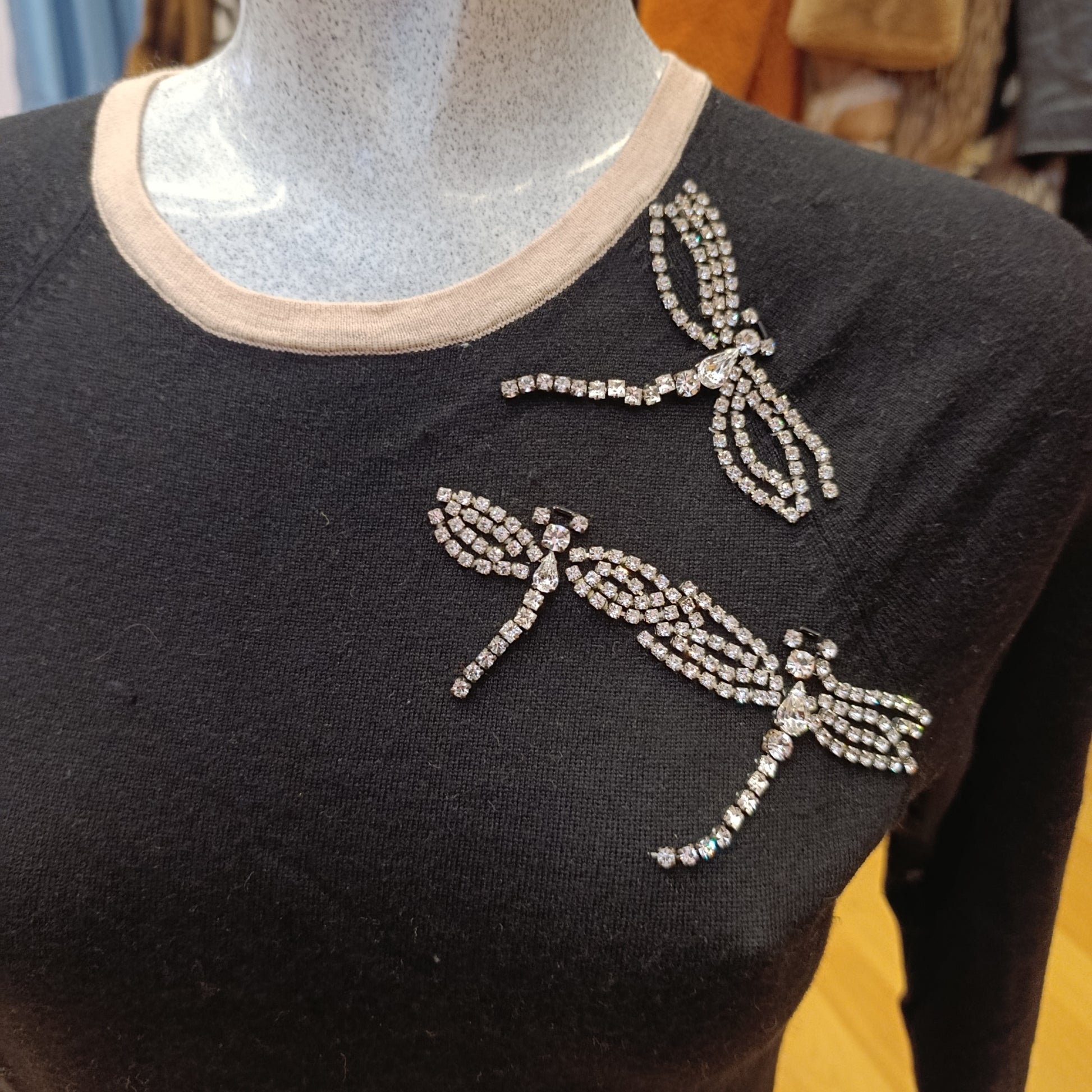 Con applicazioni frontali strass a forma di libellule