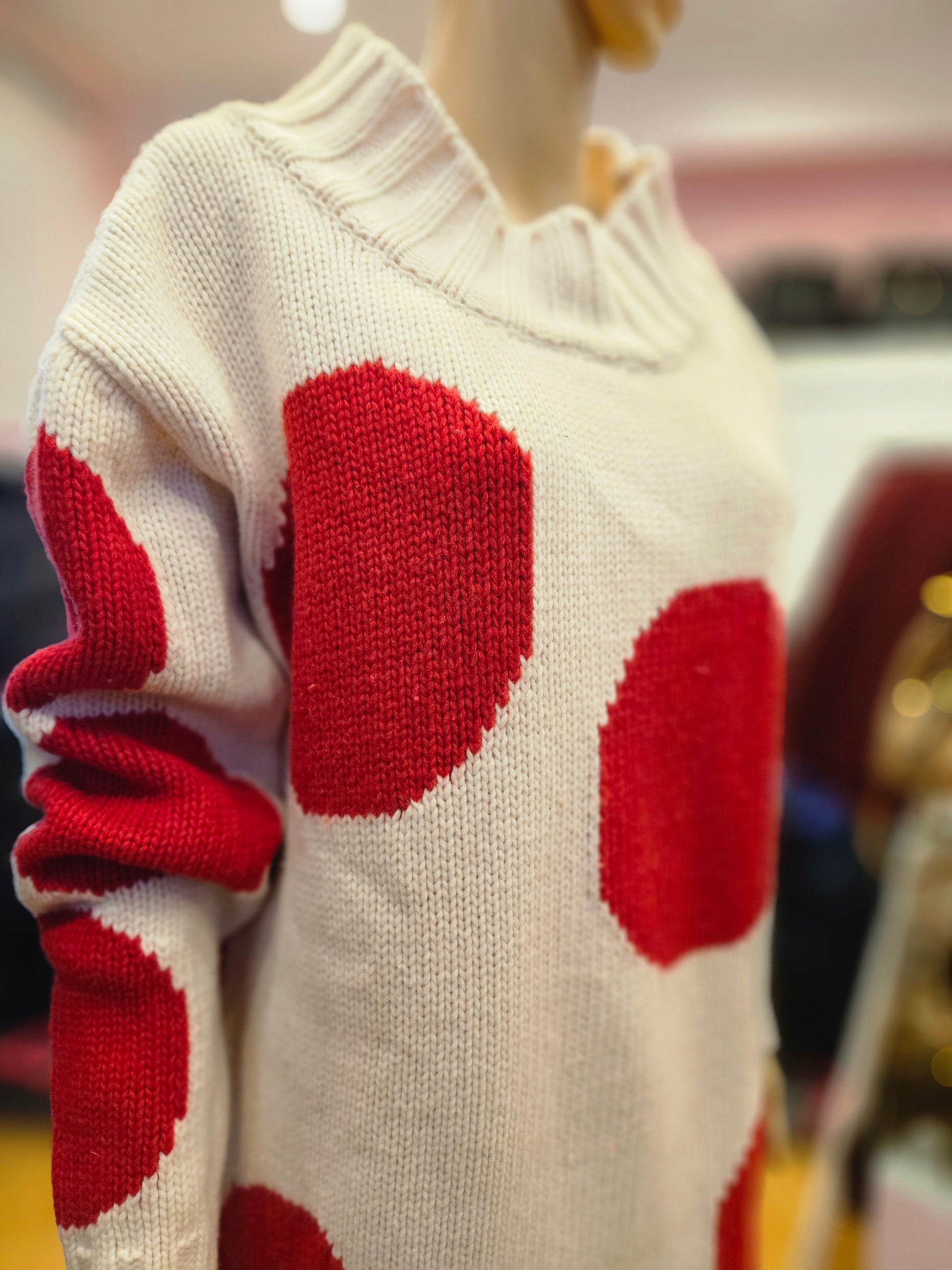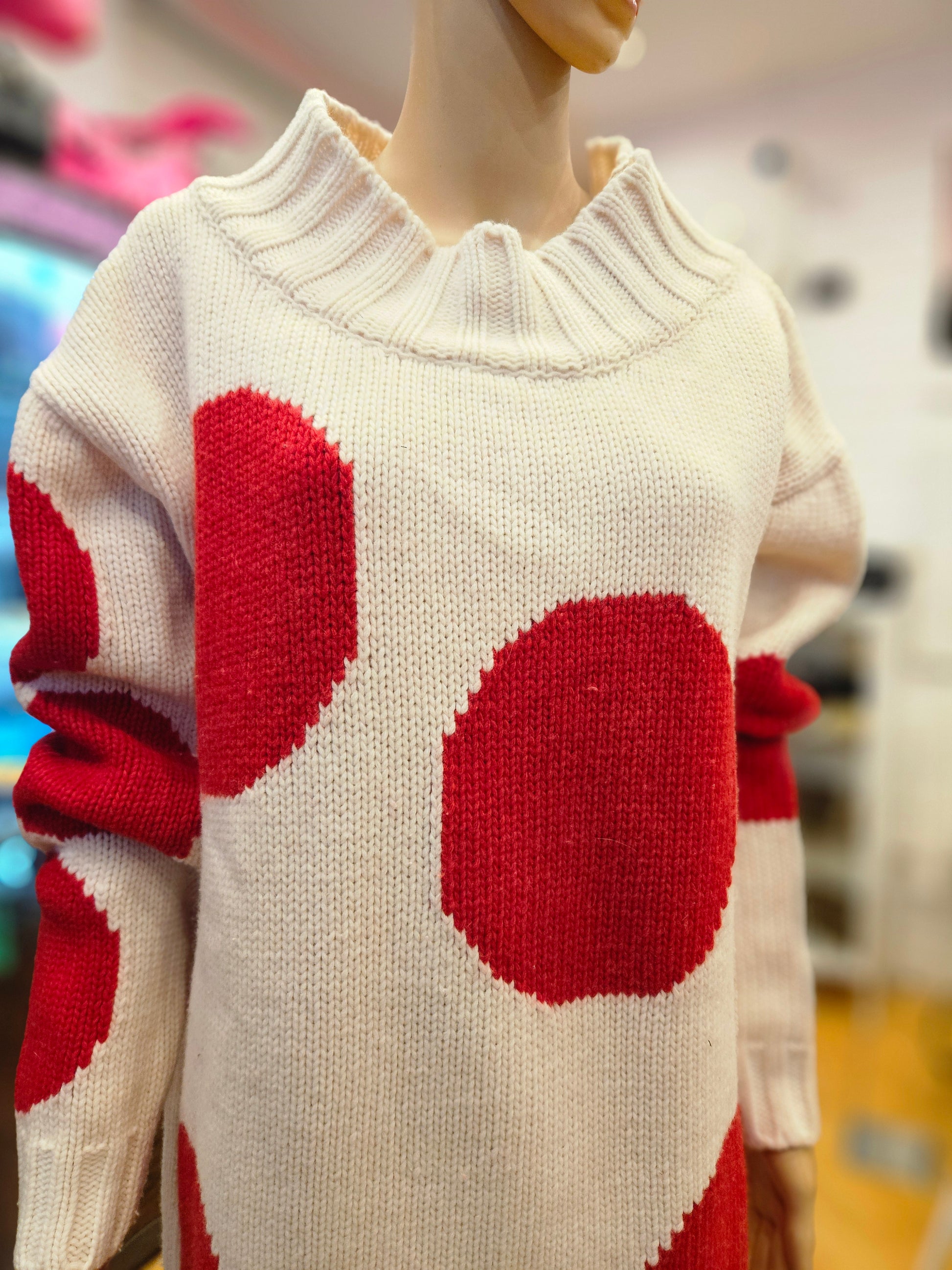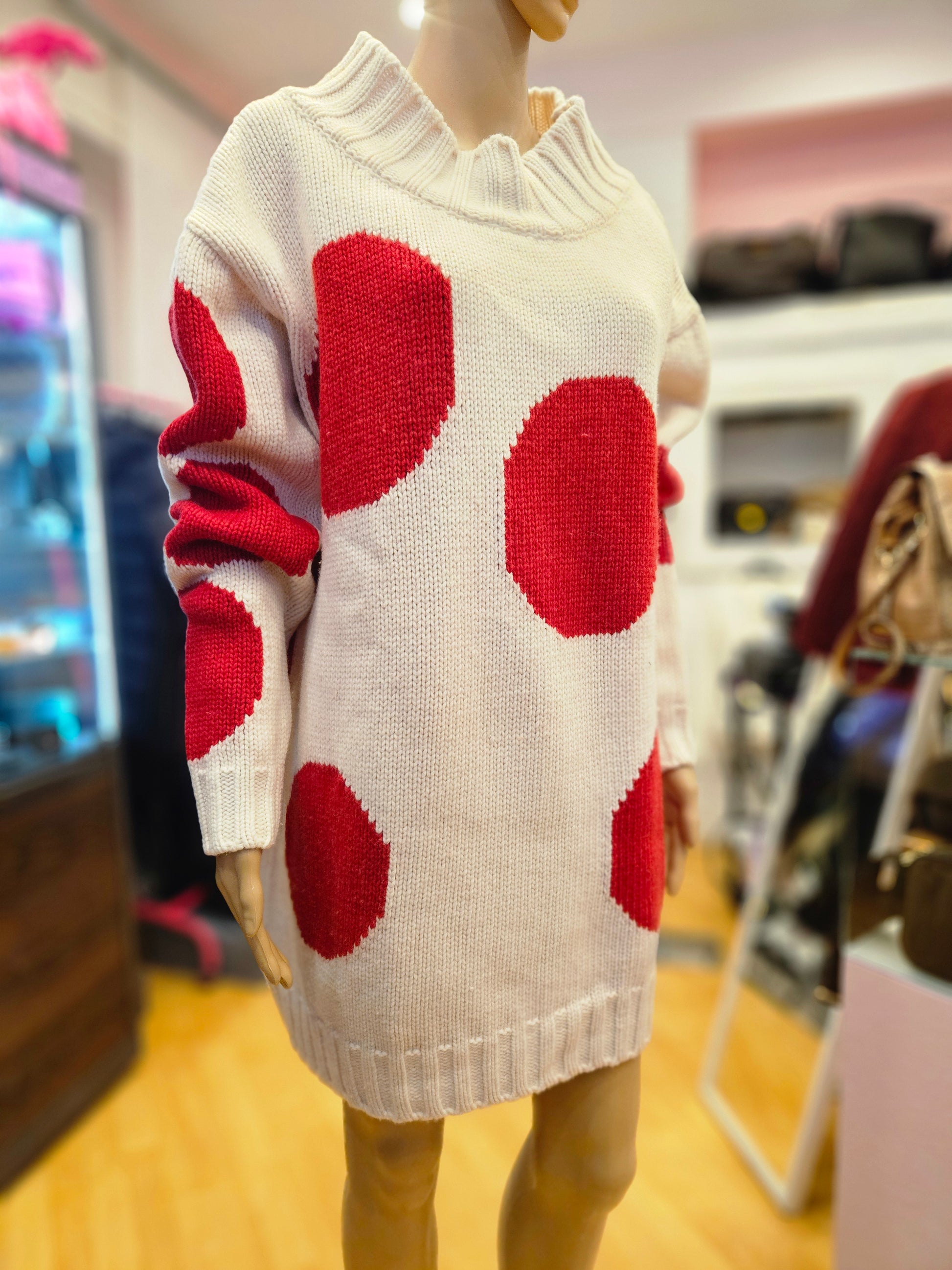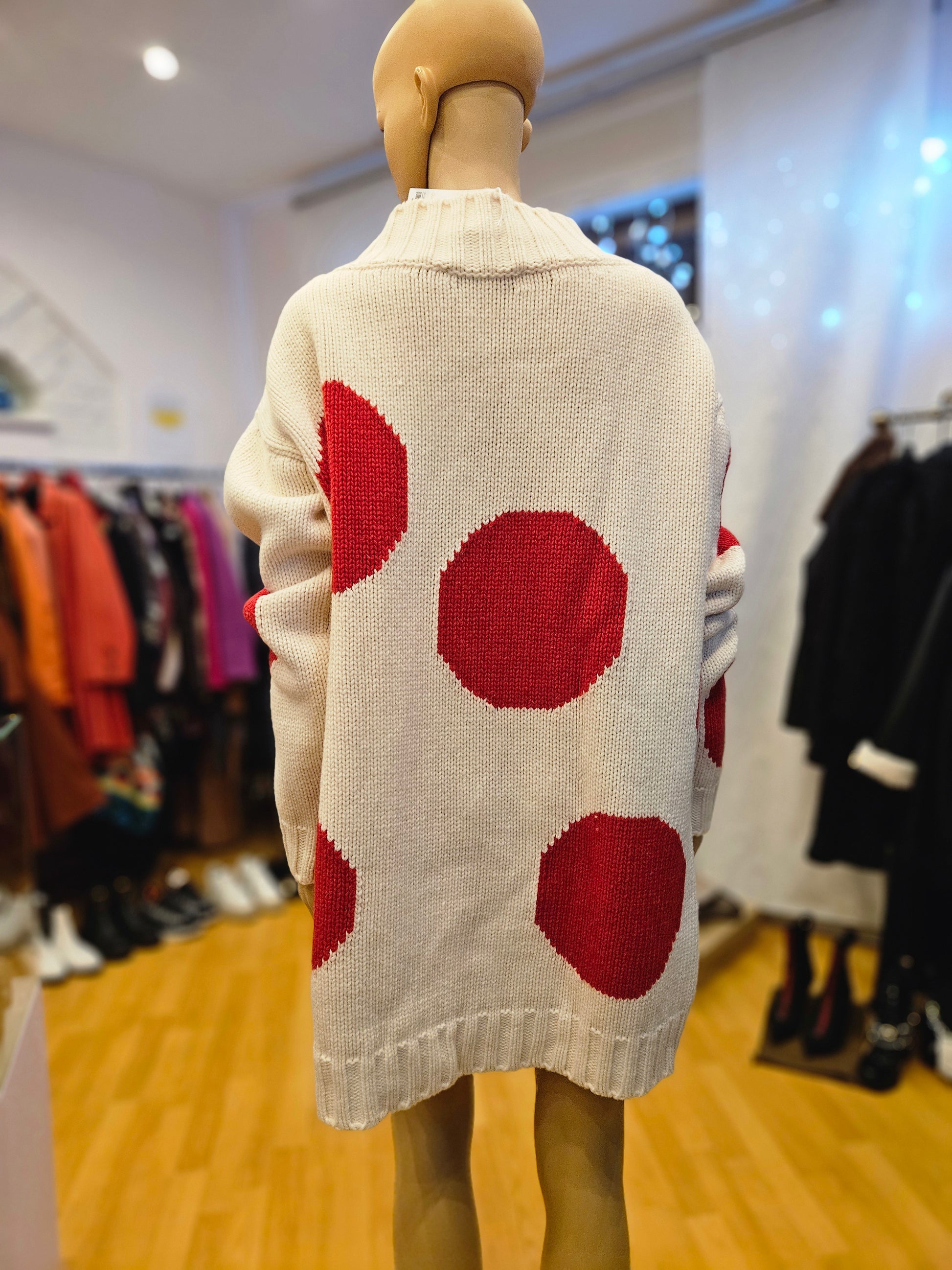 Maxi Maglione Msgm in colorazione panna e pois rossi, maglione quasi completamente in lana, tg S dalla vestibilità molto oversize