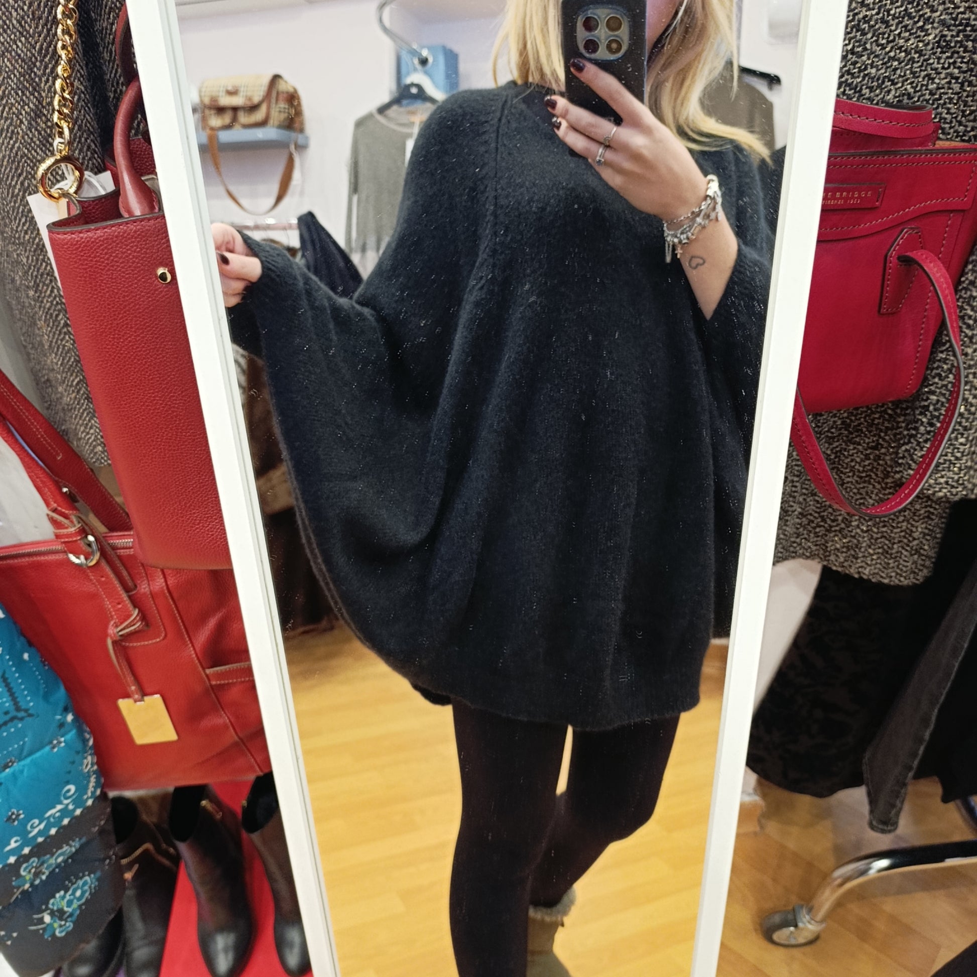 Ampia mantella nera Roberto Collina TU, adatta a tutte le fisicità!