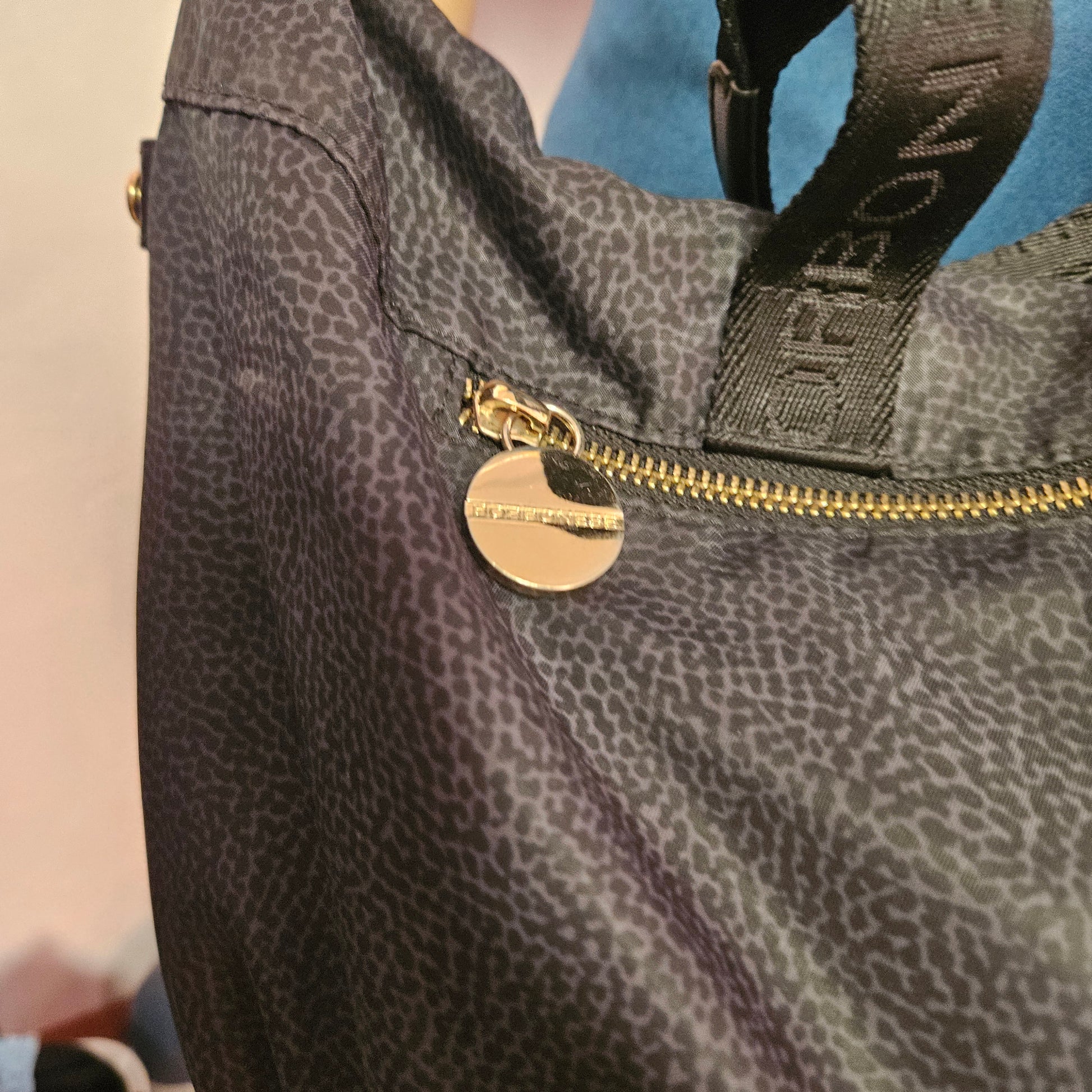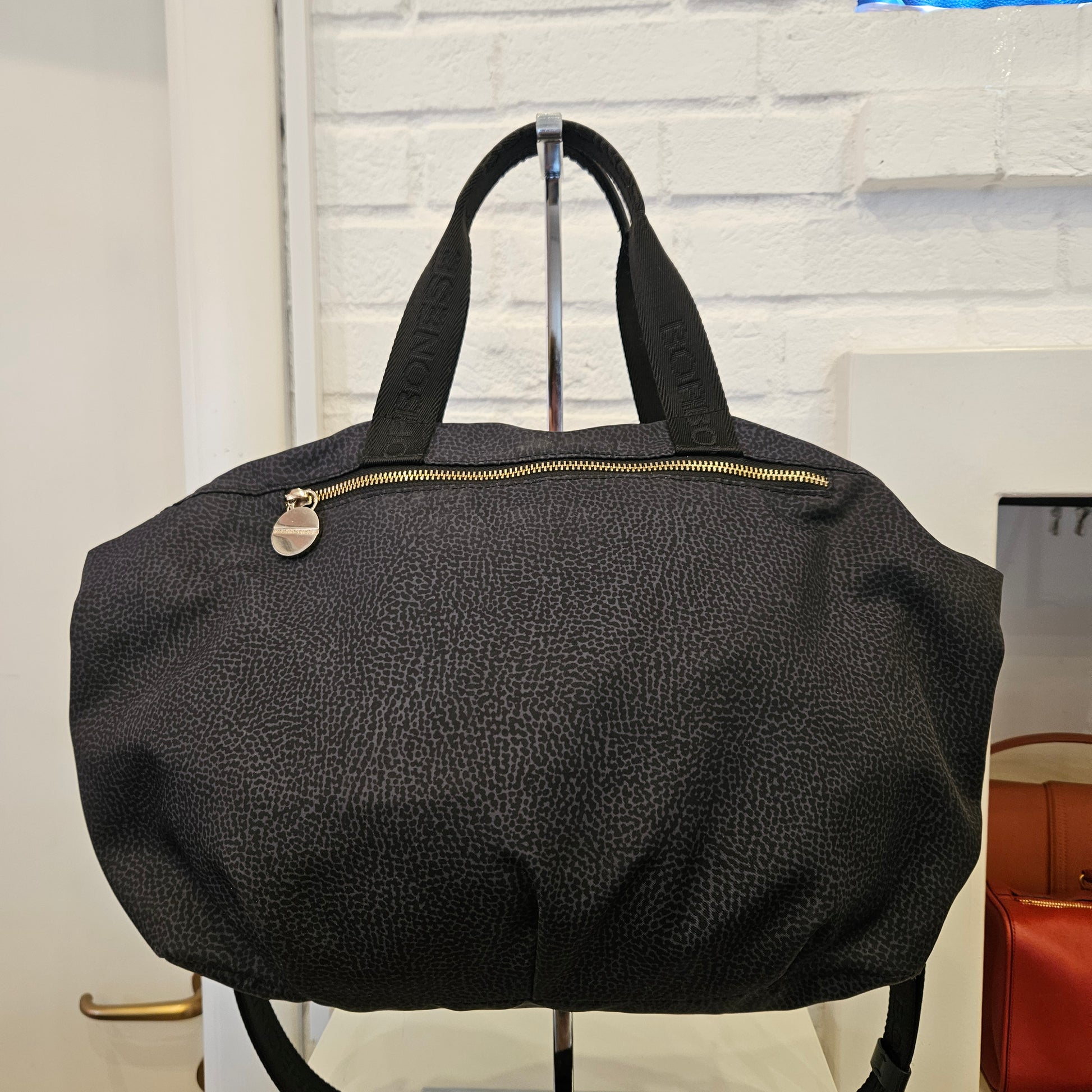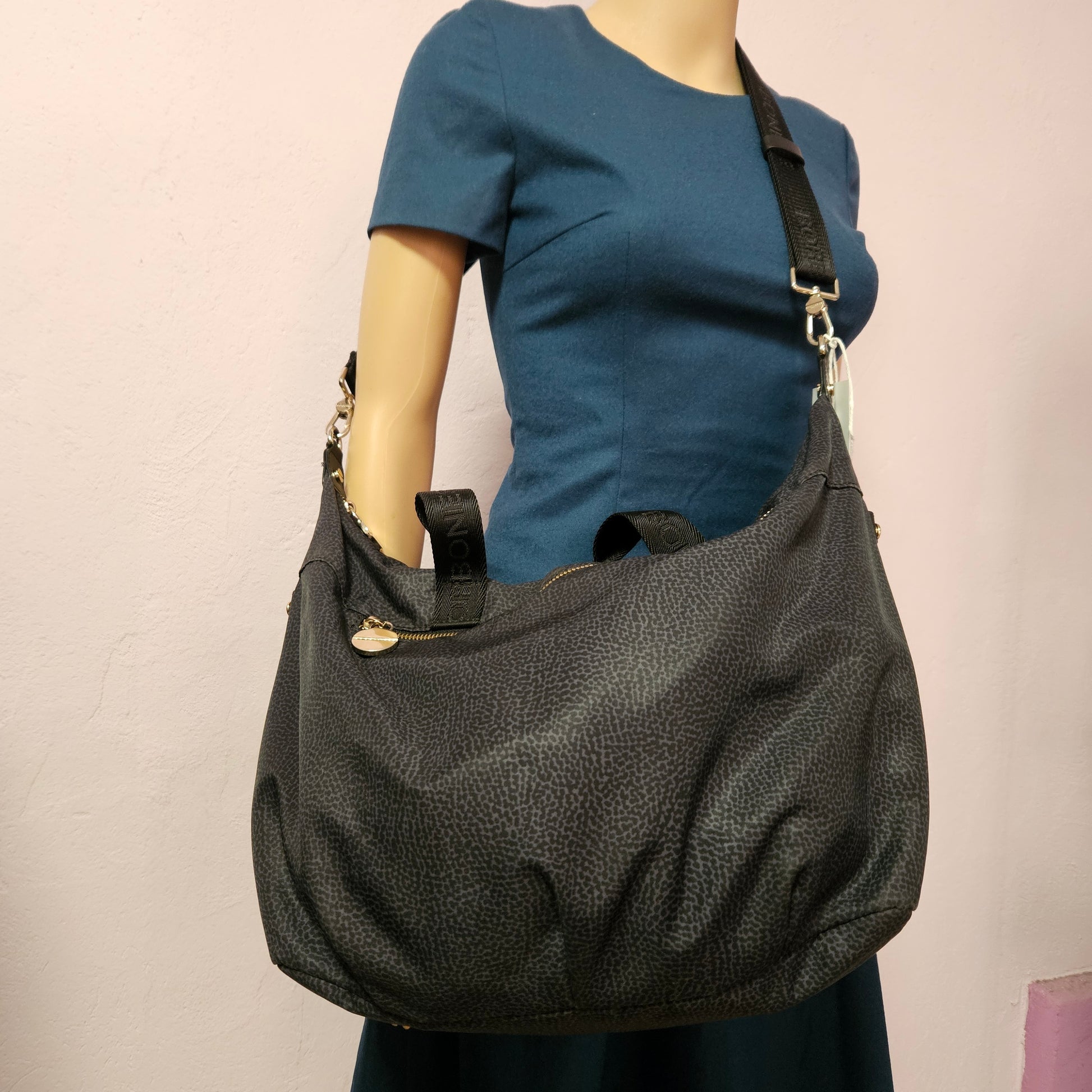 Borsa hobo Borbonese in nylon colorazione nera dotata di manici e tracolla, articolo in ottime condizioni