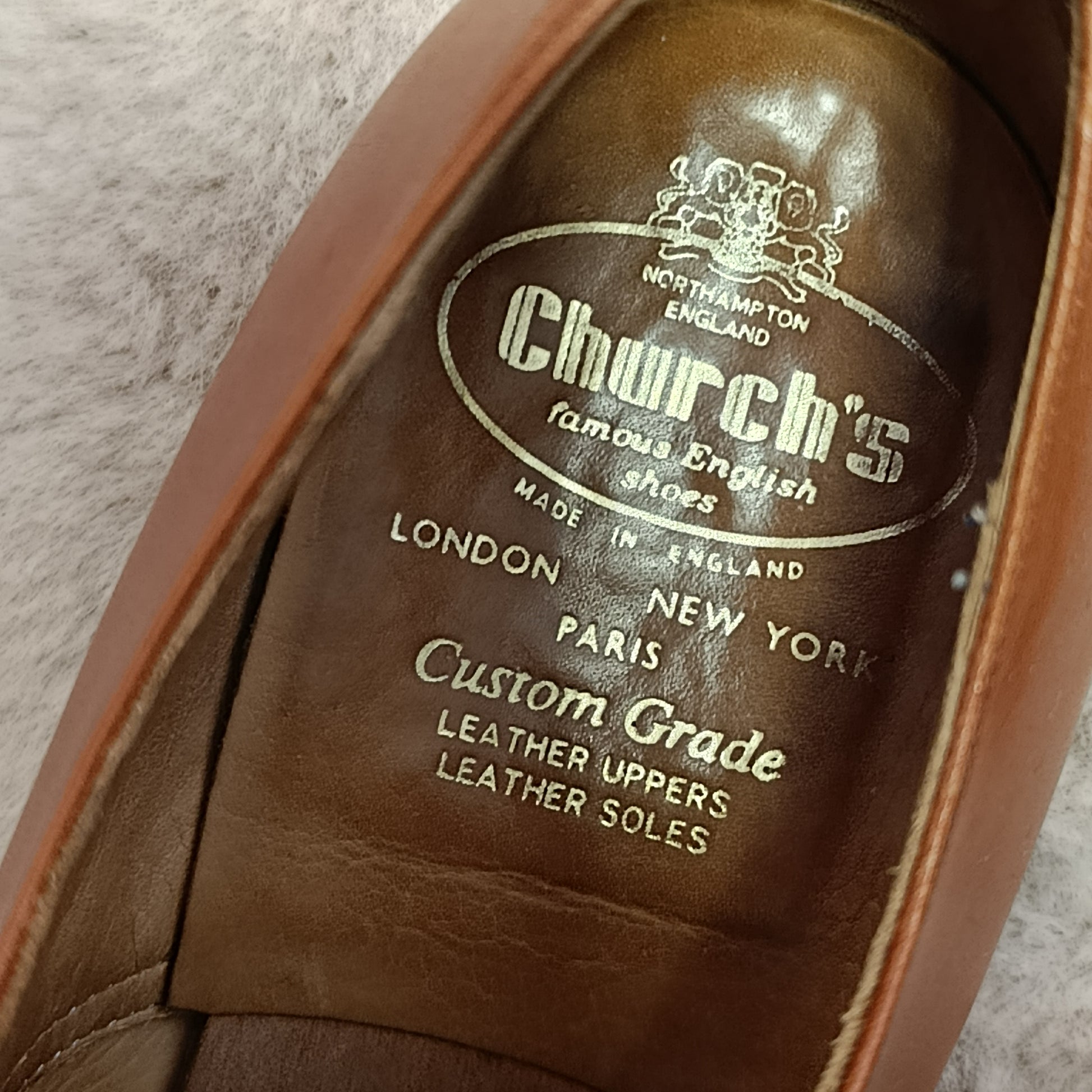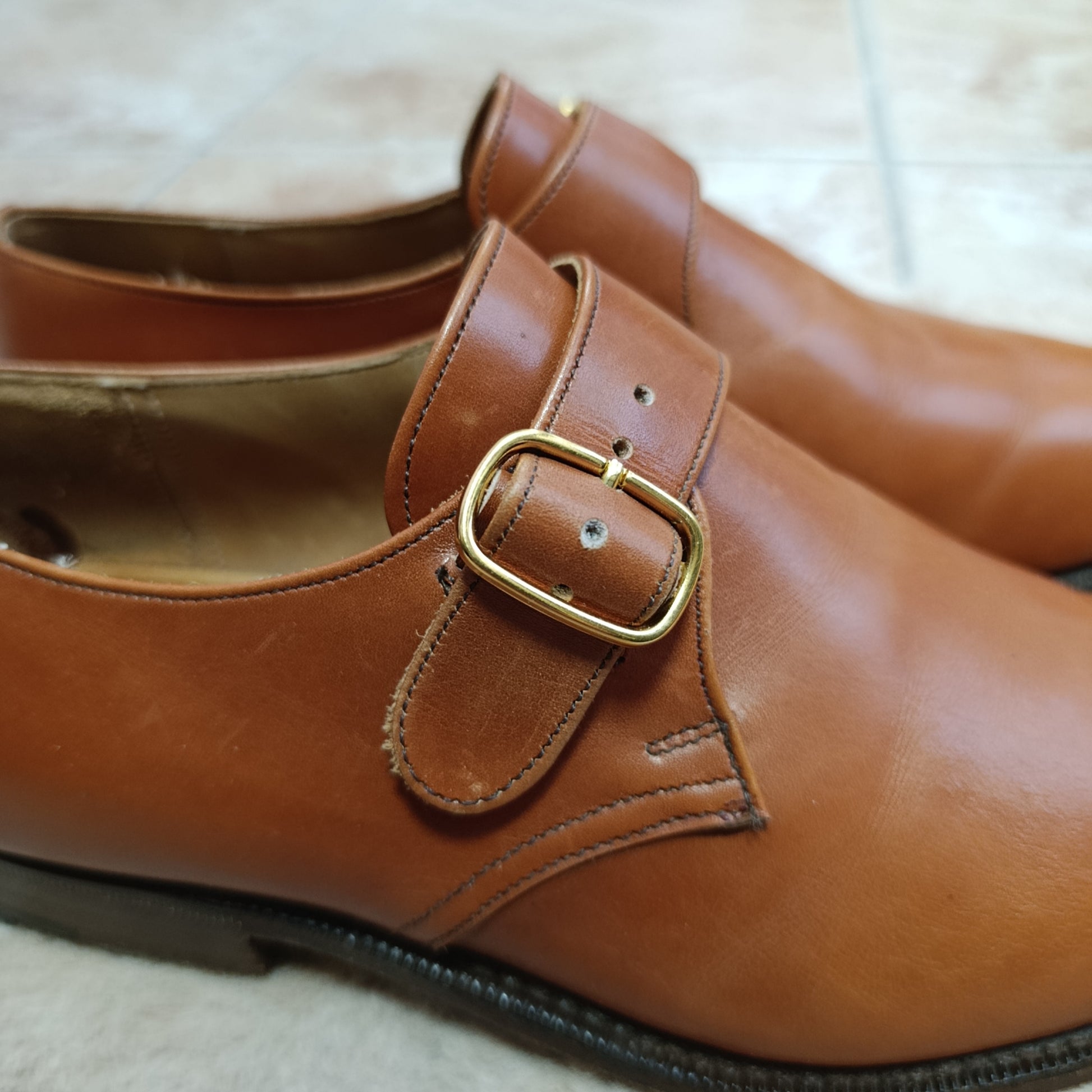 Stupendi mocassini inglesi church's colorazione marrone con fibbia dorata regolabile sul fronte,in pelle morbidissima di vitello, lavorazione artigianale di manifattura eccezionale, condizioni ottimali, con lacci frontali