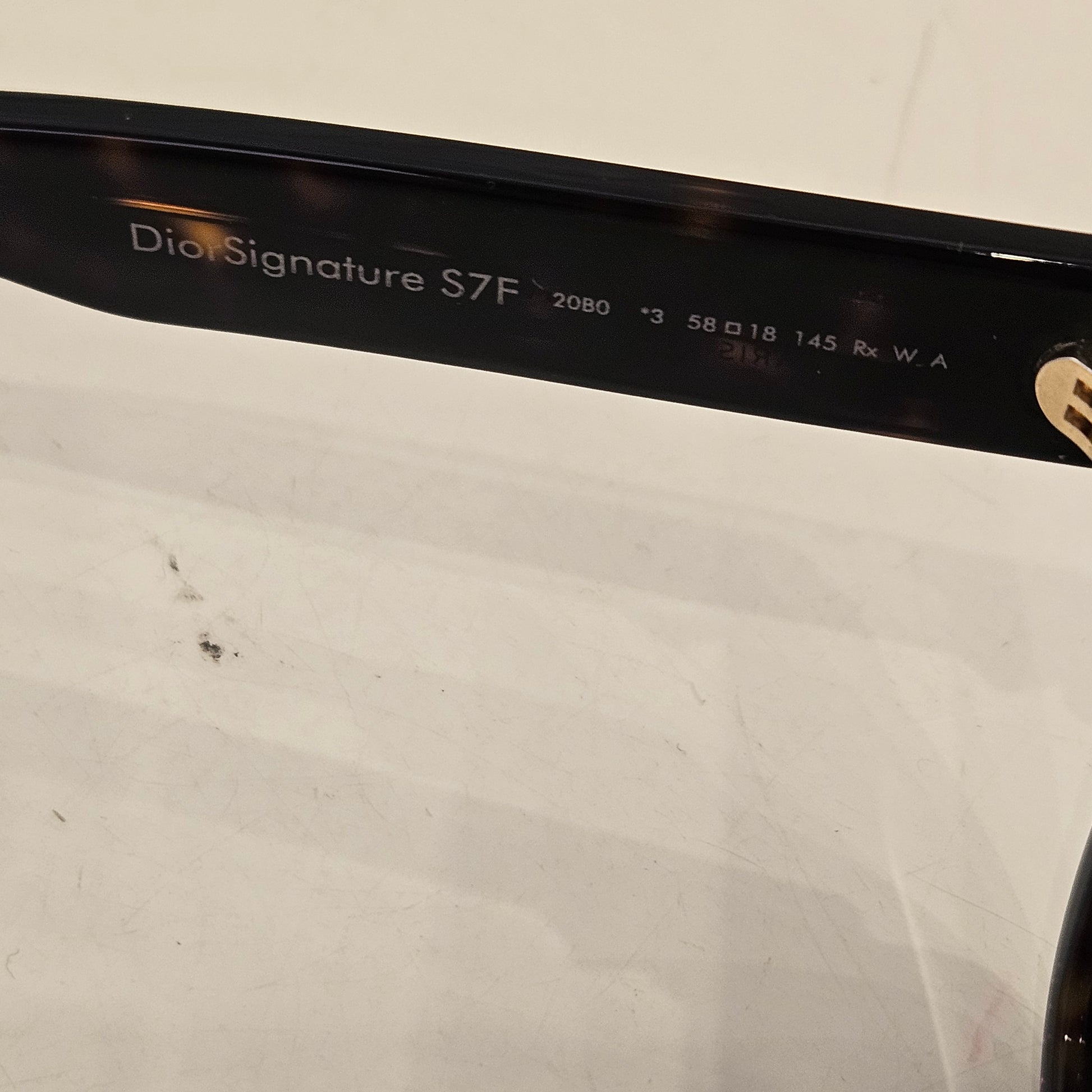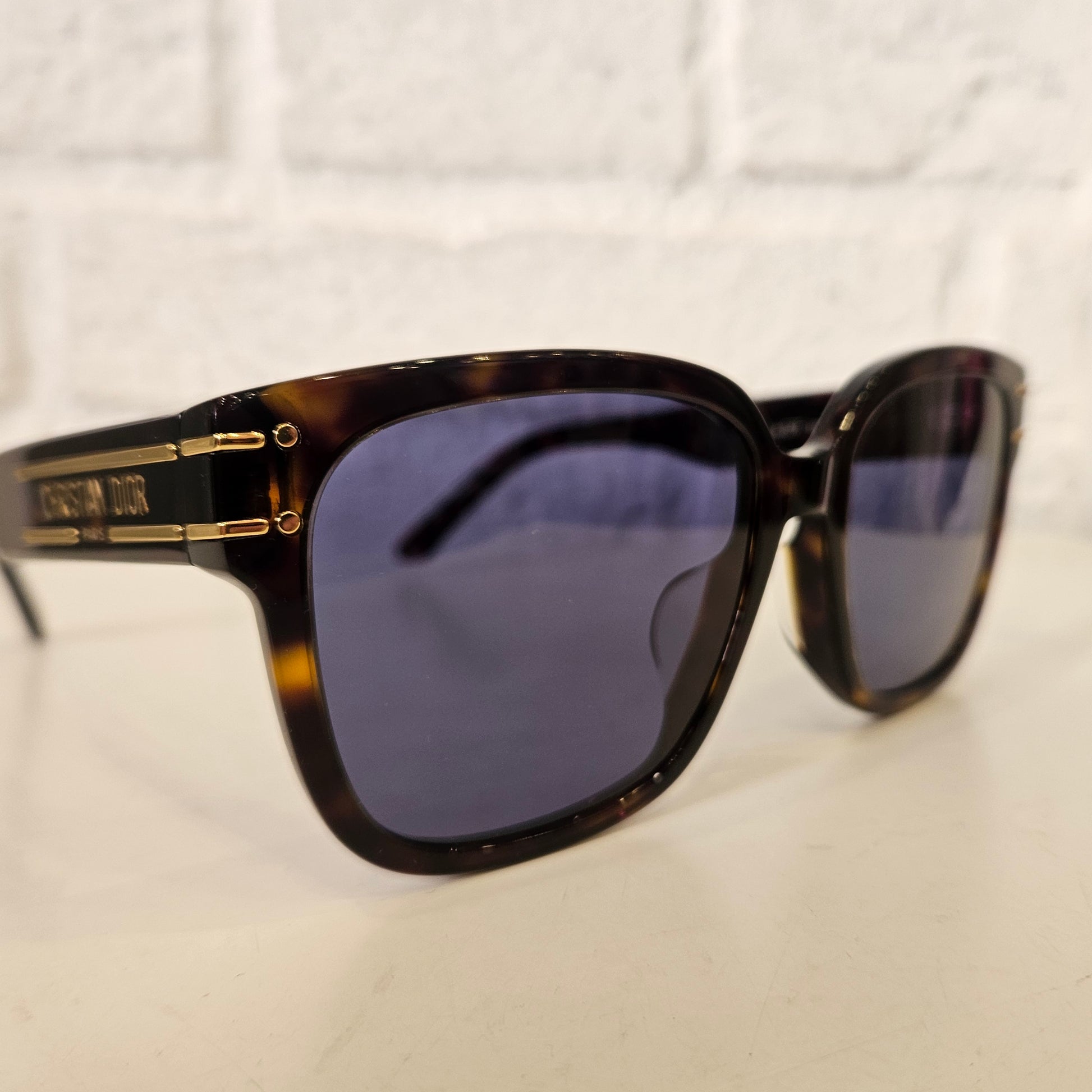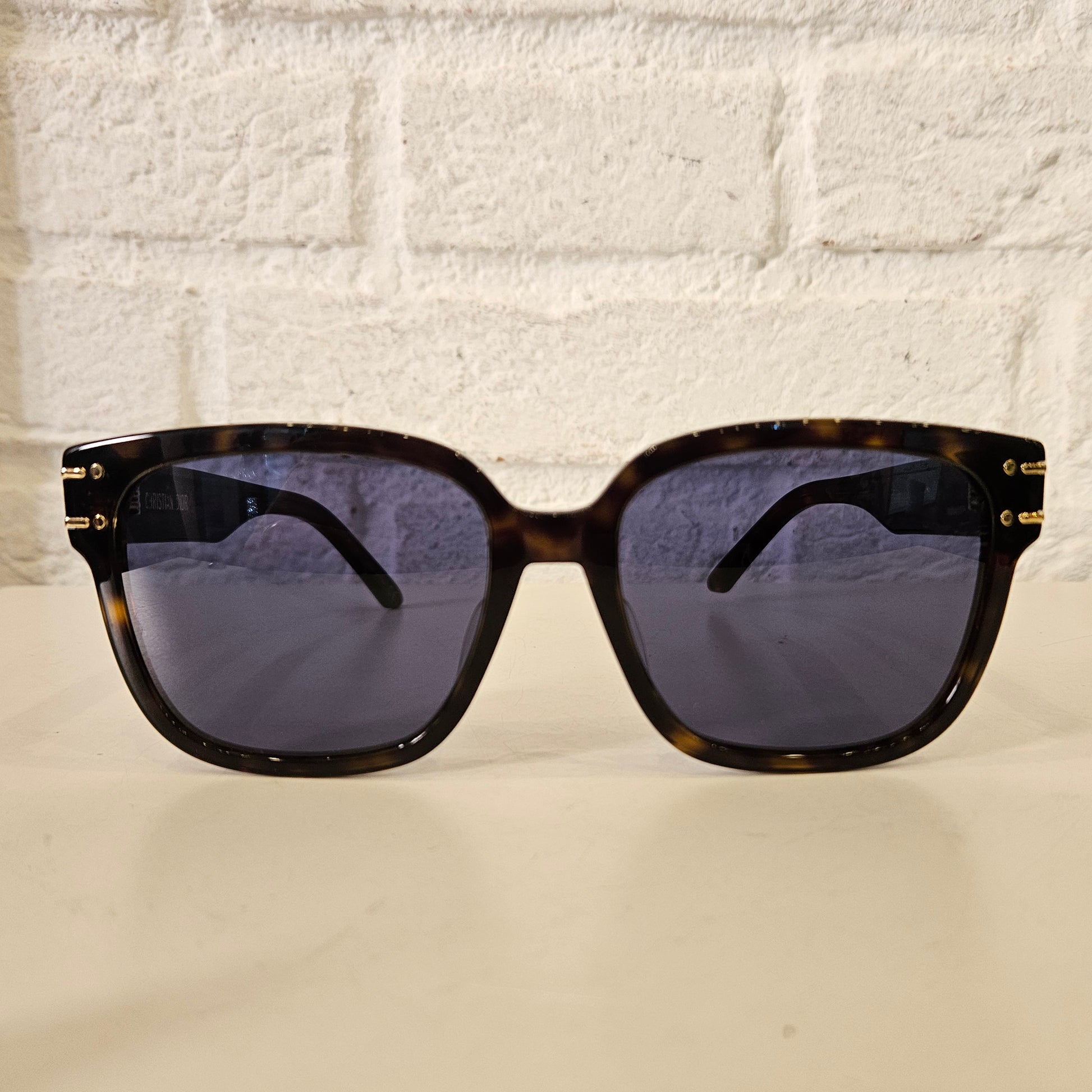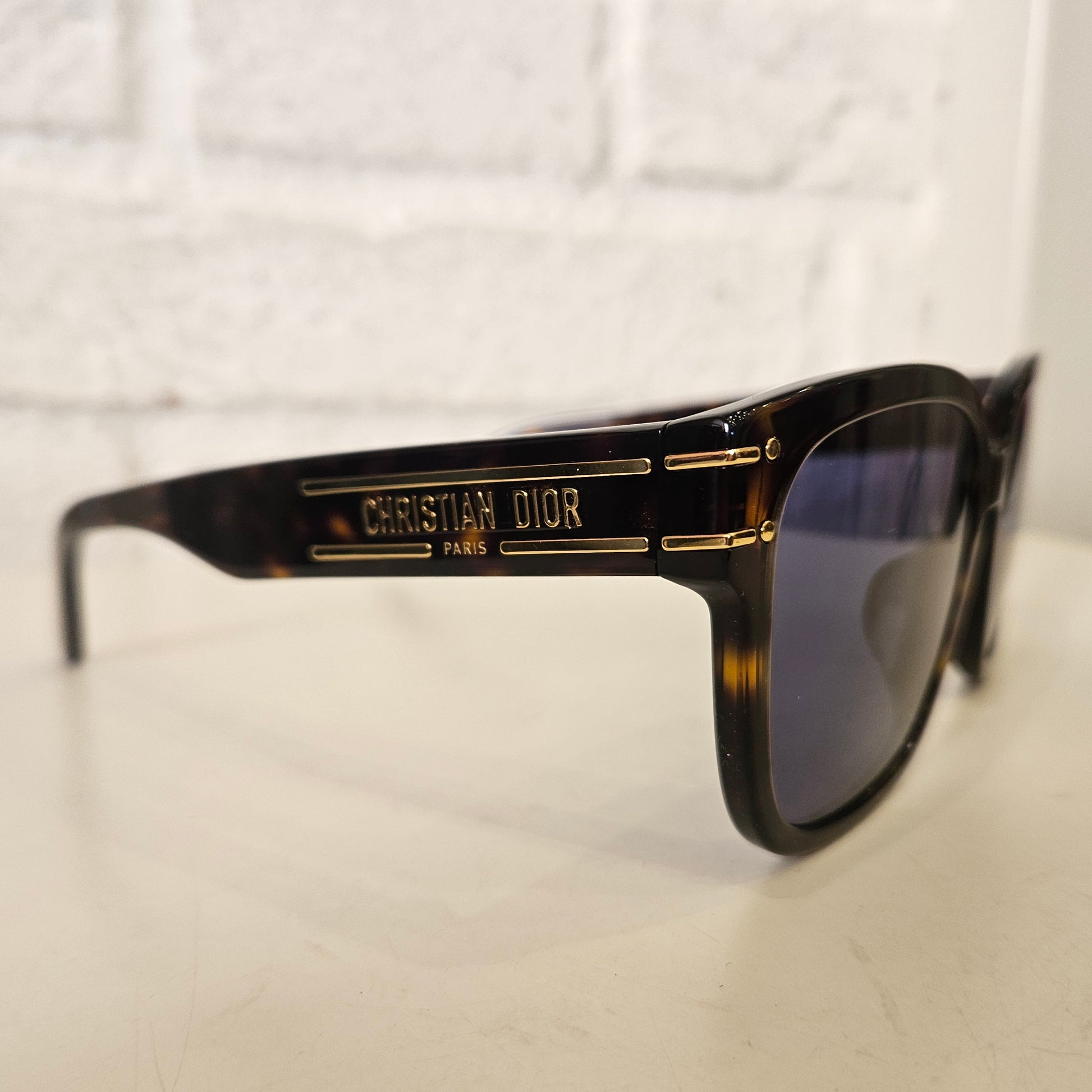 Occhiali Dior montatura oversize tartarugata marrone e lente marrone, logo Christian Dior su lati