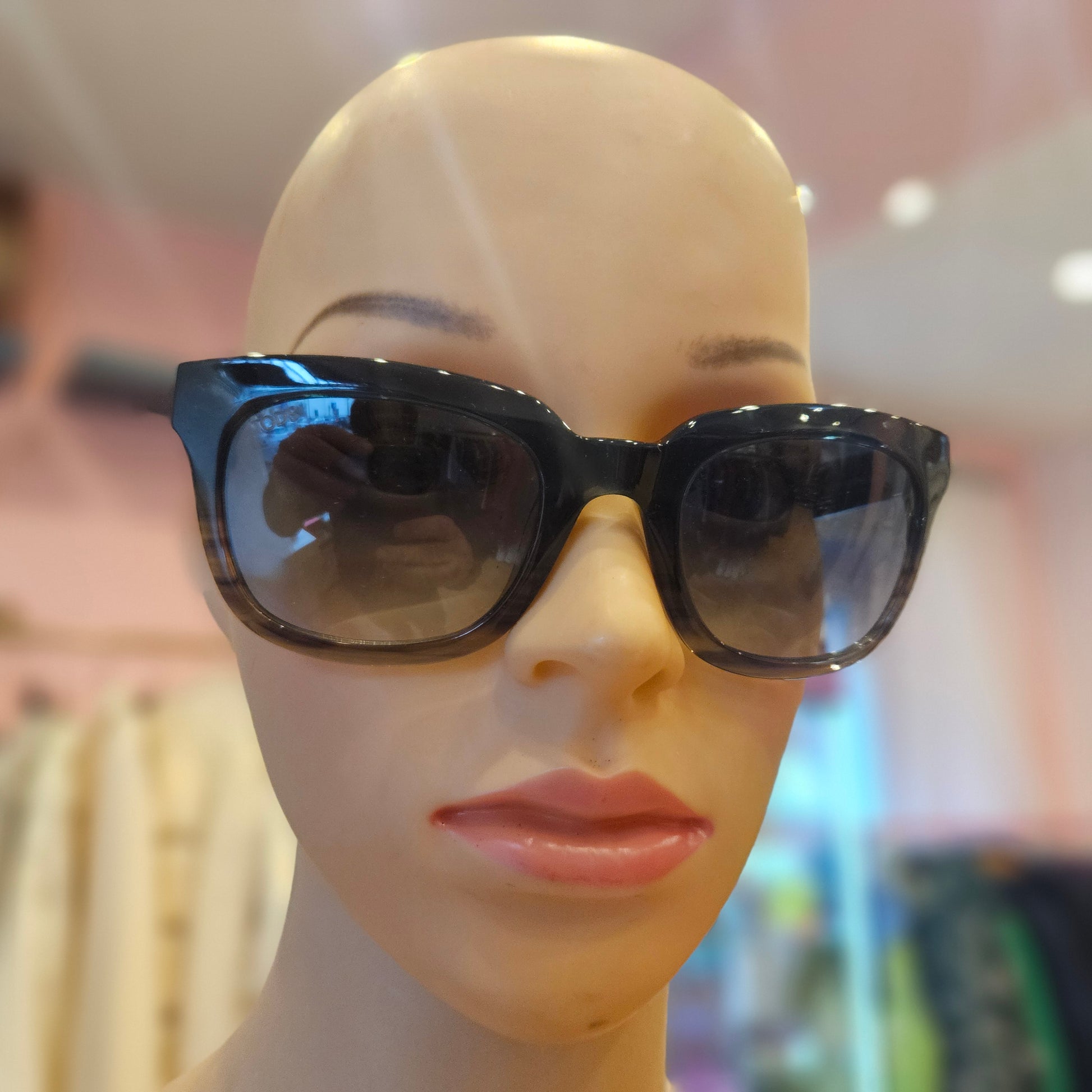 Occhiali Tod's in colorazione marrone e venature blu, Occhiali dal design moderno.