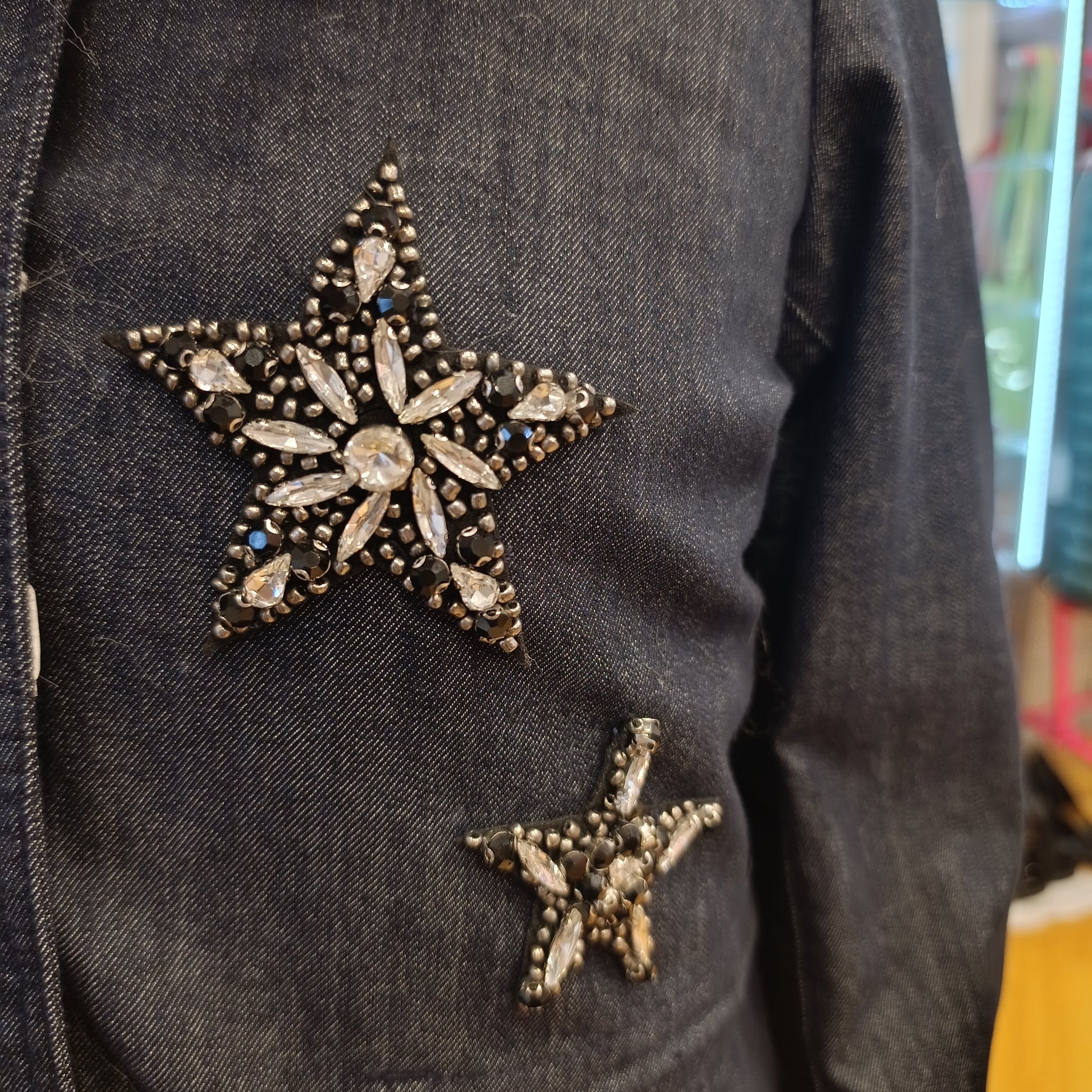 Bellissimo capo questo parka di Liu Jo in denim decorato da questa pelliccia sintetica sul cappuccio e queste applicazioni di strass a forma di stella sul lato sinistro.