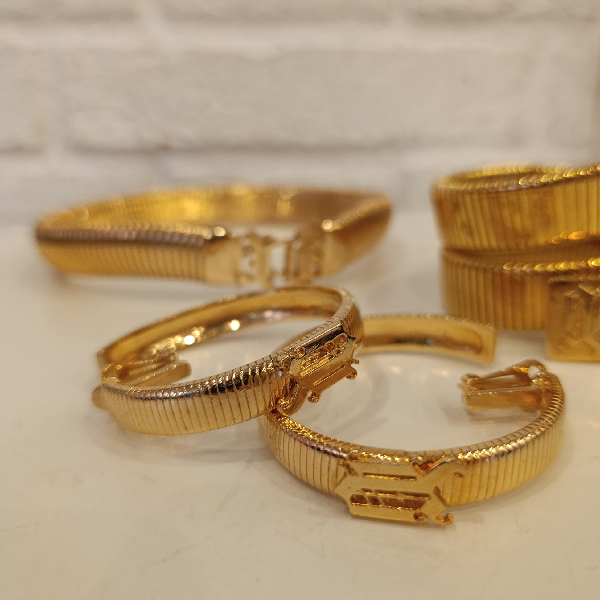 Orecchini a cerchio, bracciale tipo serpente e girocollo dorato 45 cm