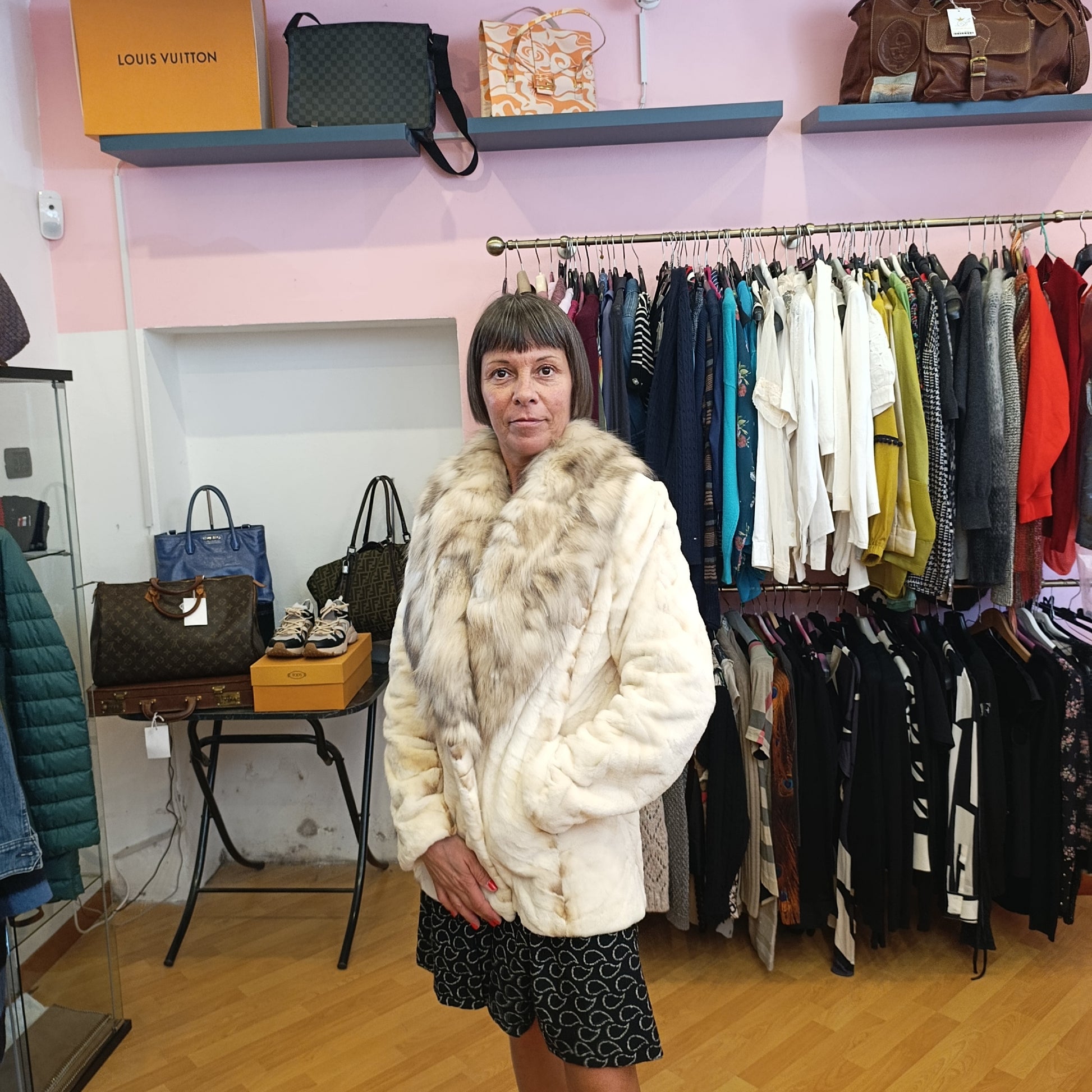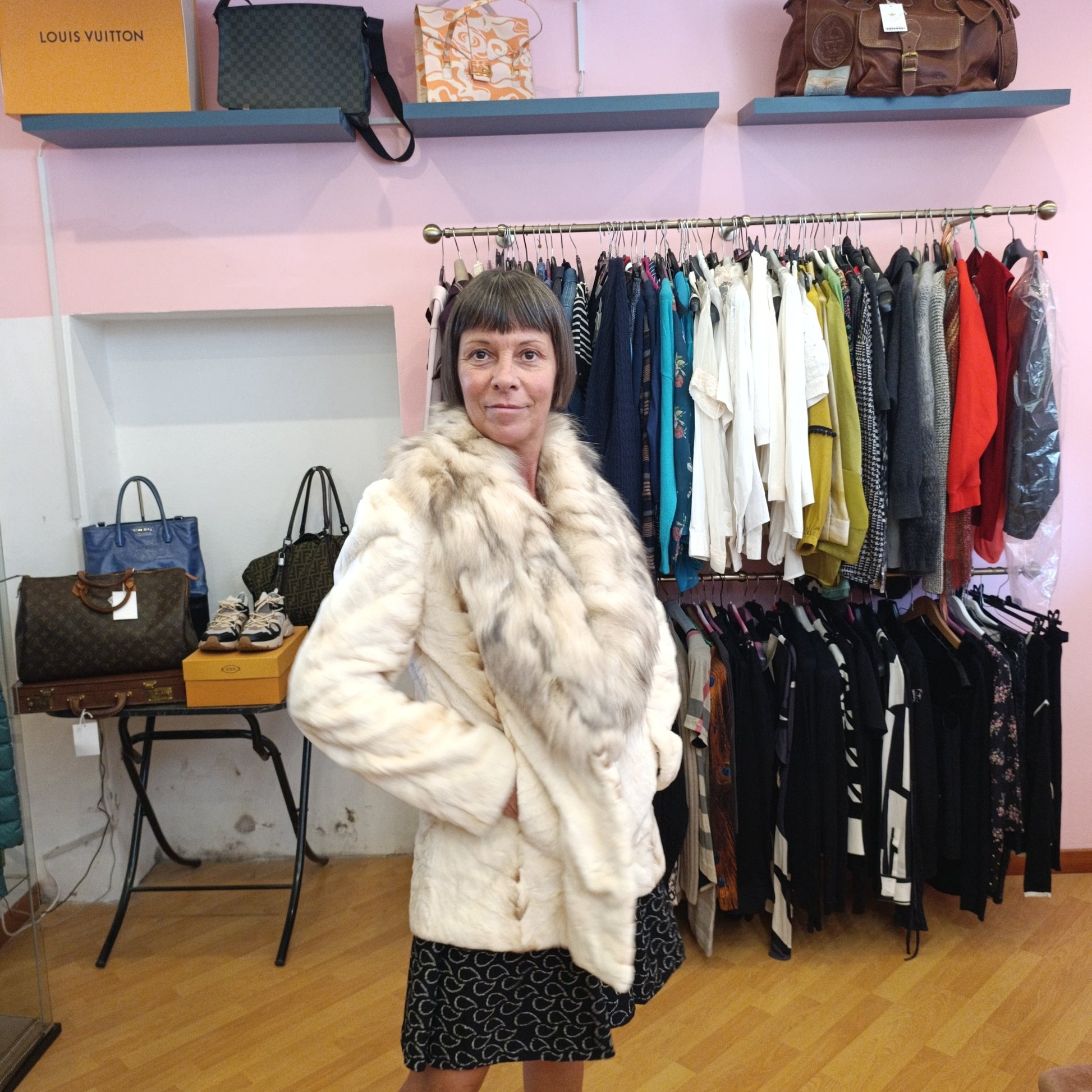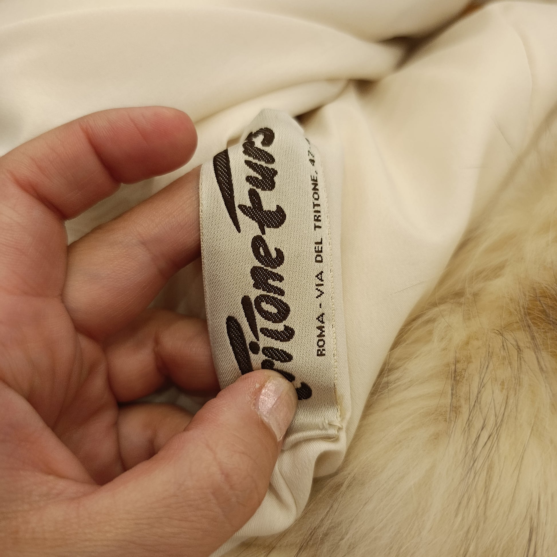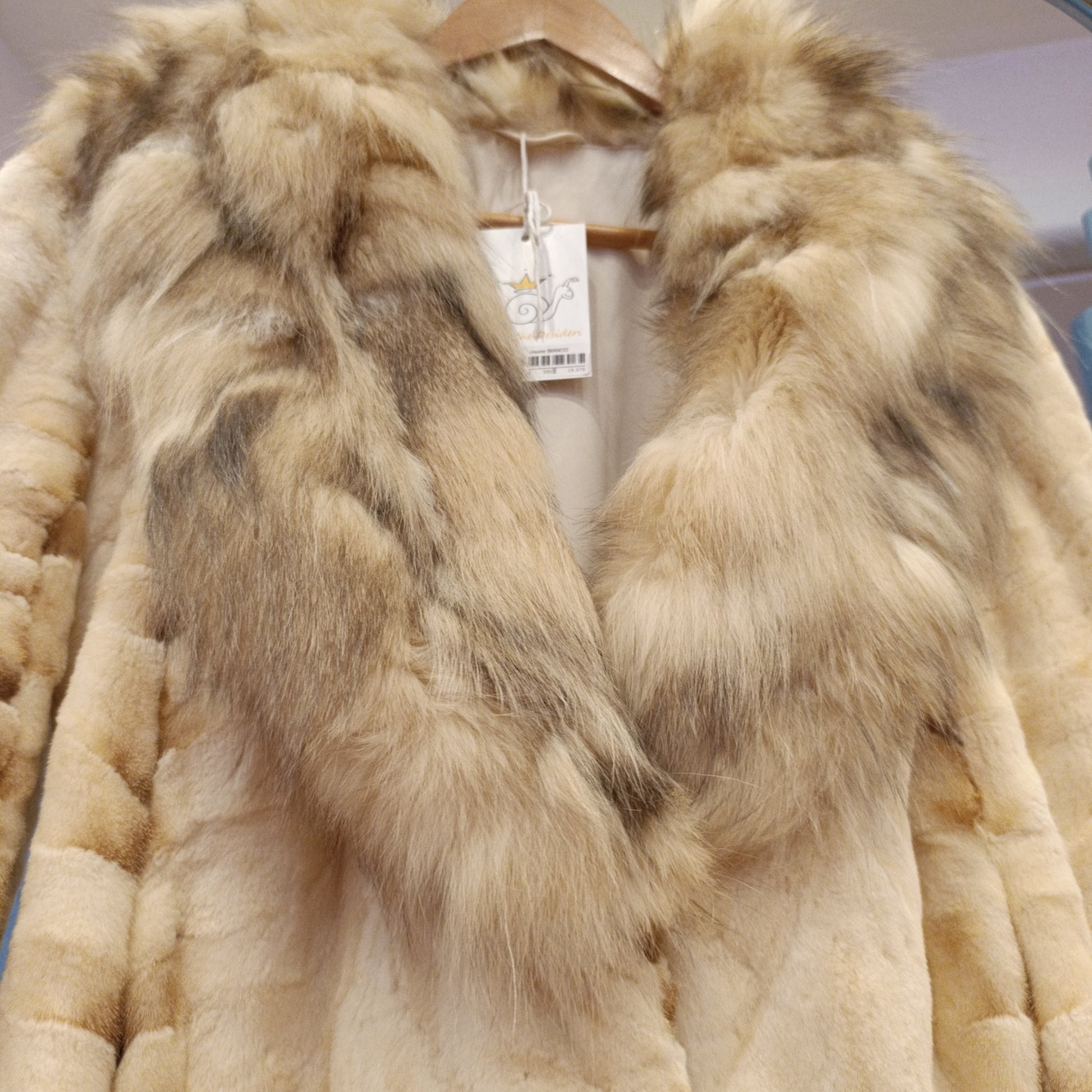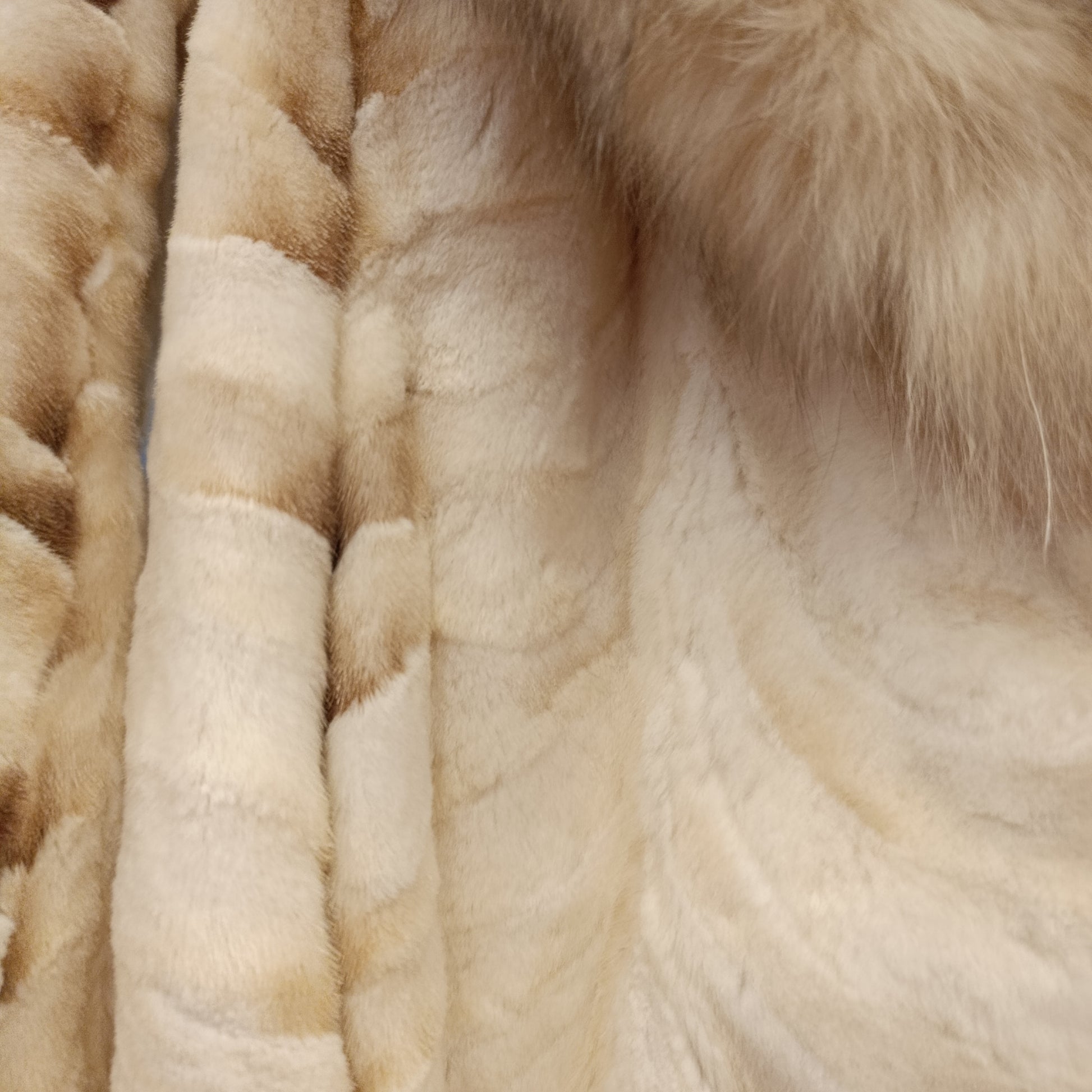 Bellissima pelliccia di visone bianca con inserto del collo in volpe