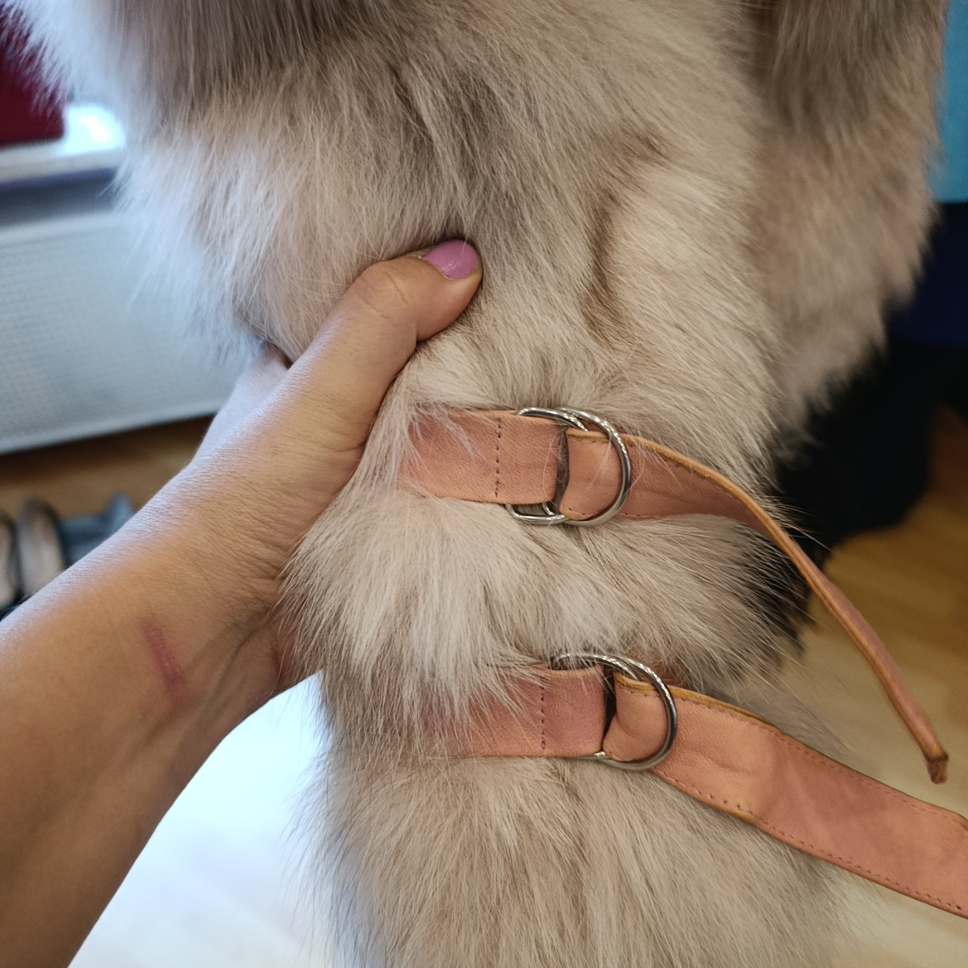 Dettagli in pelle rosa che si abbianano alla pelliccia
