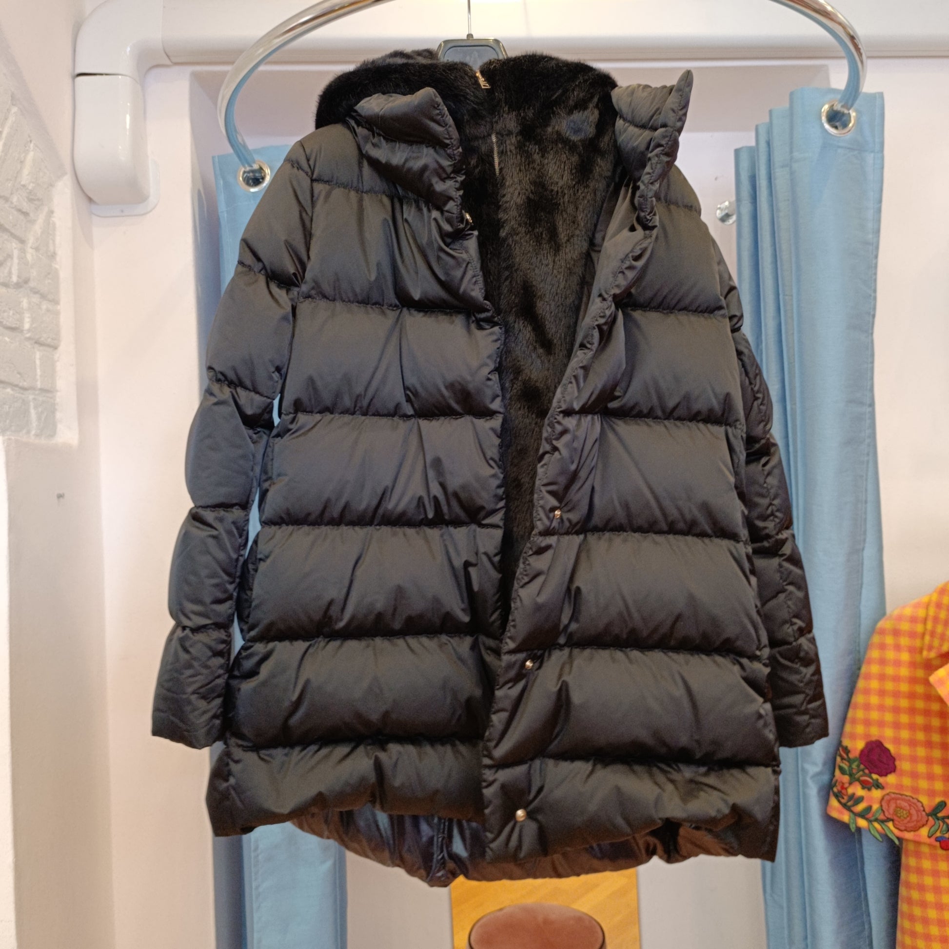 Bellissimo piumino Herno tg 44 con dettagli in pelo sintetico con zip e cappuccio non removibile
