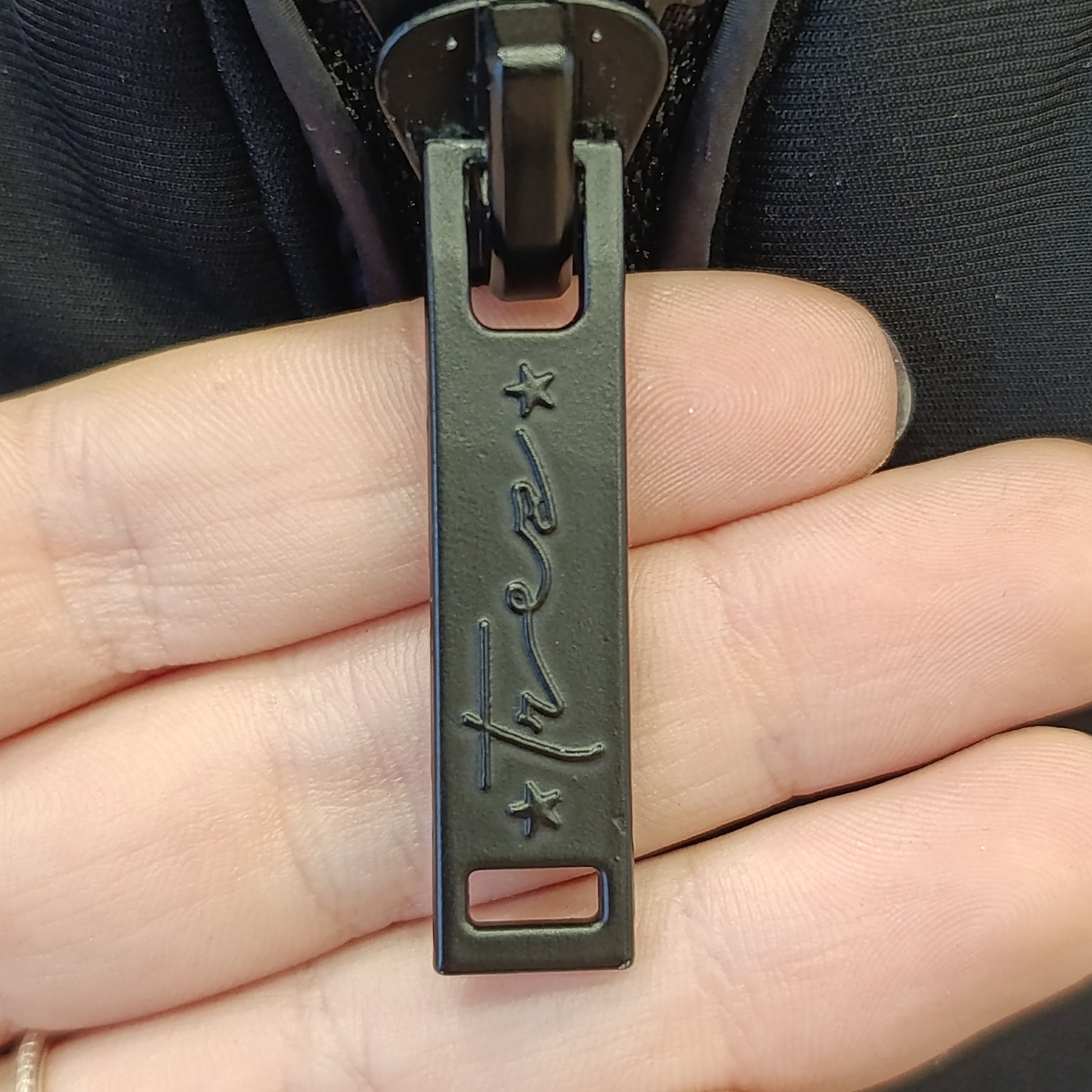 Capo da tutti i giorni, chiusura a zip nera loggata.