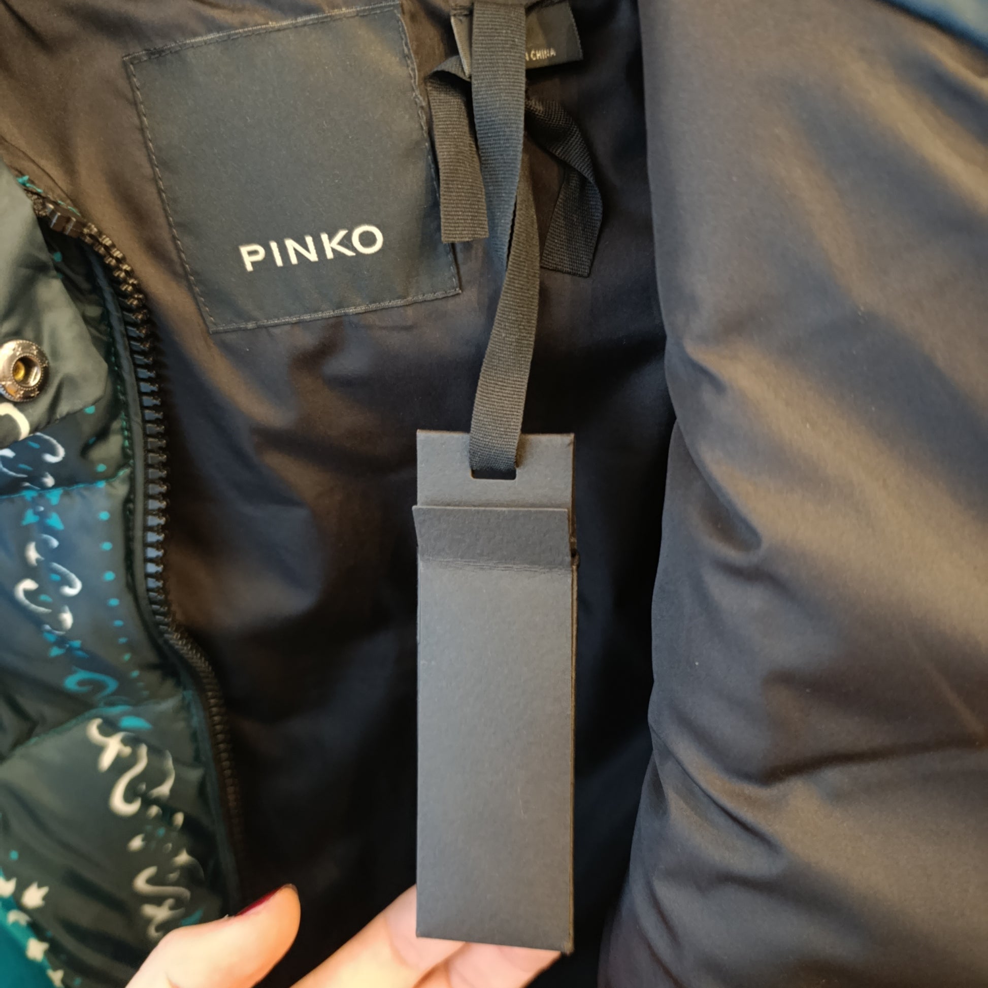 Piumino corto di Pinko con logo love sulla spalla come visibile in foto.