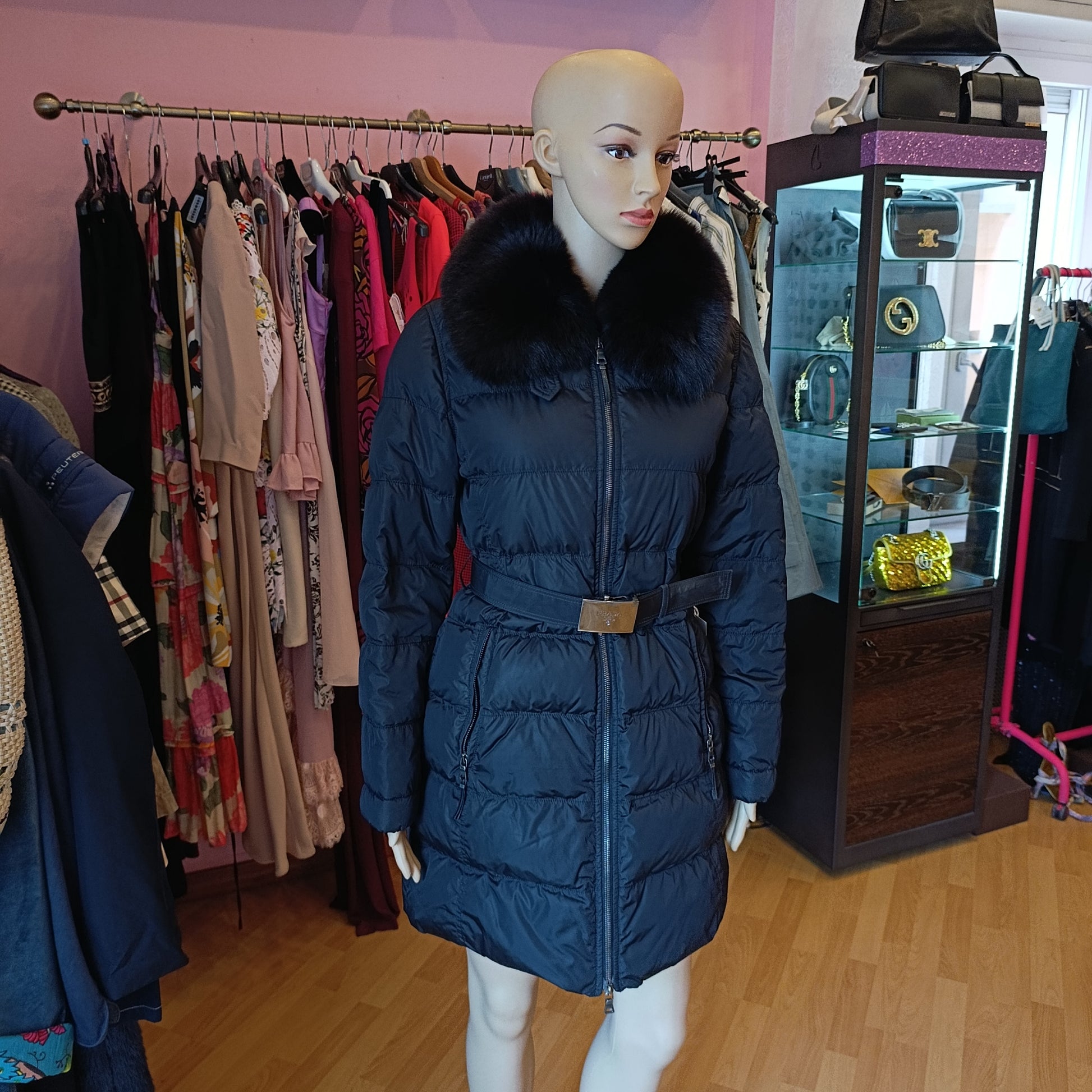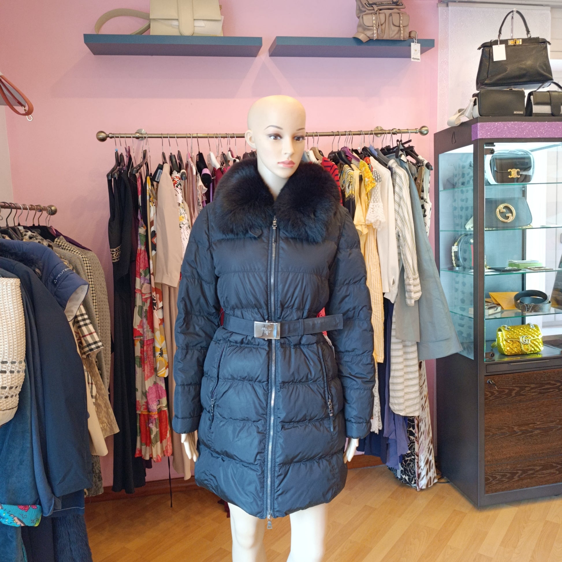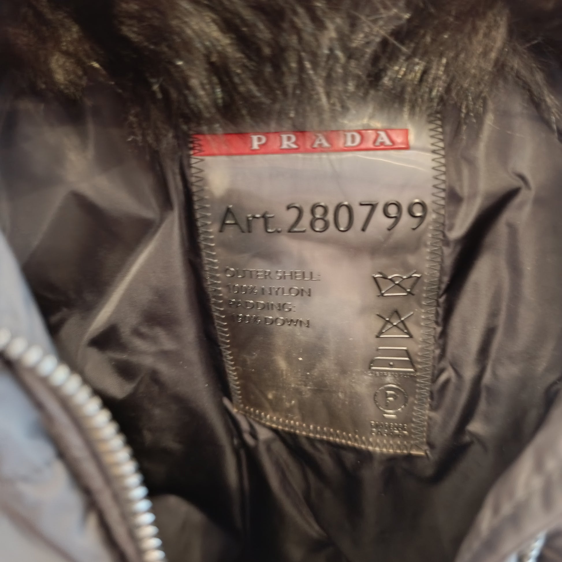 Bellissimo piumino di Prada con inserti in pelo vero di volpe e pelle