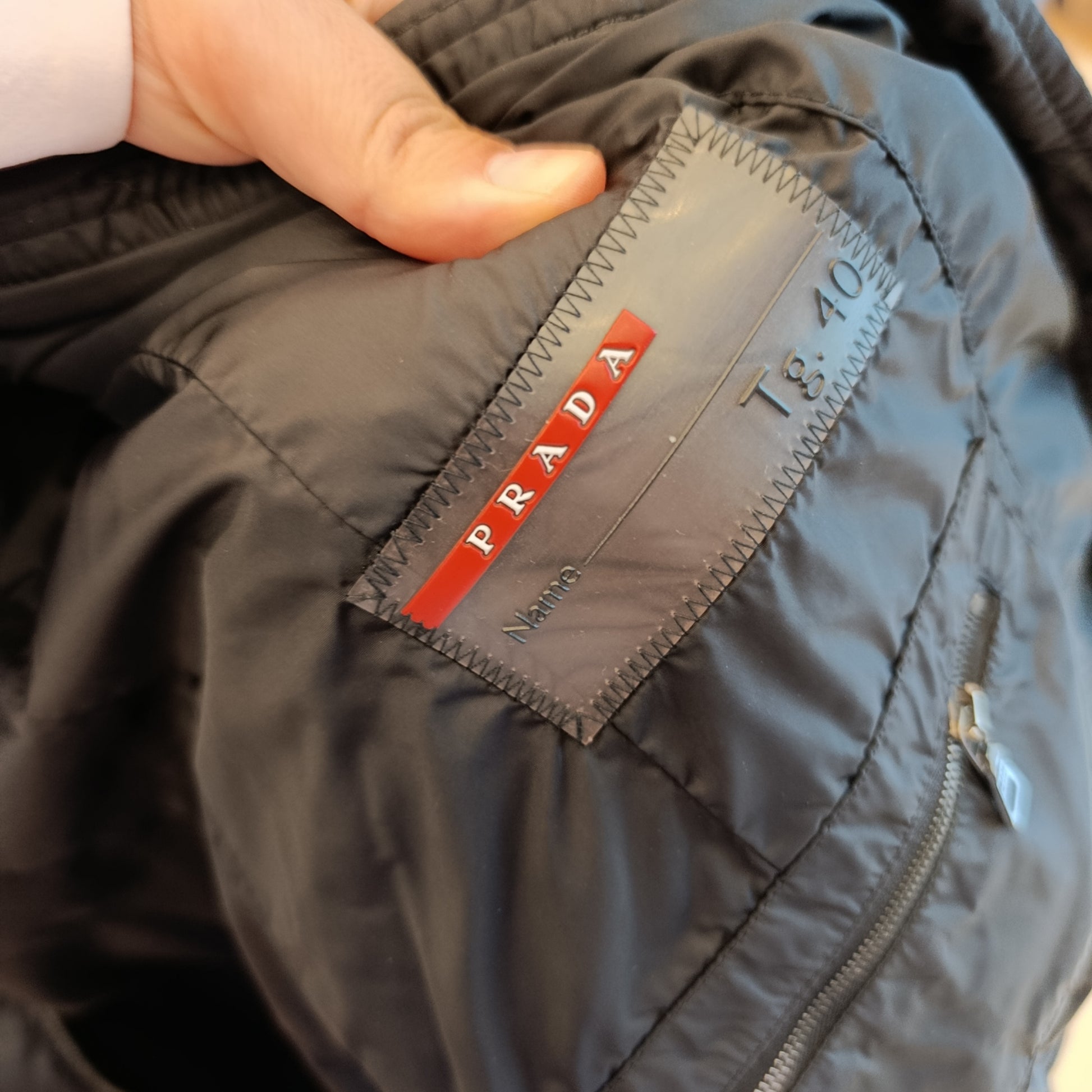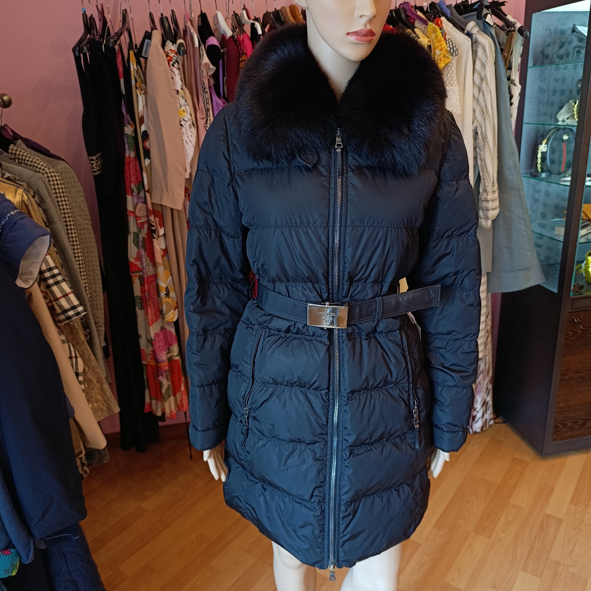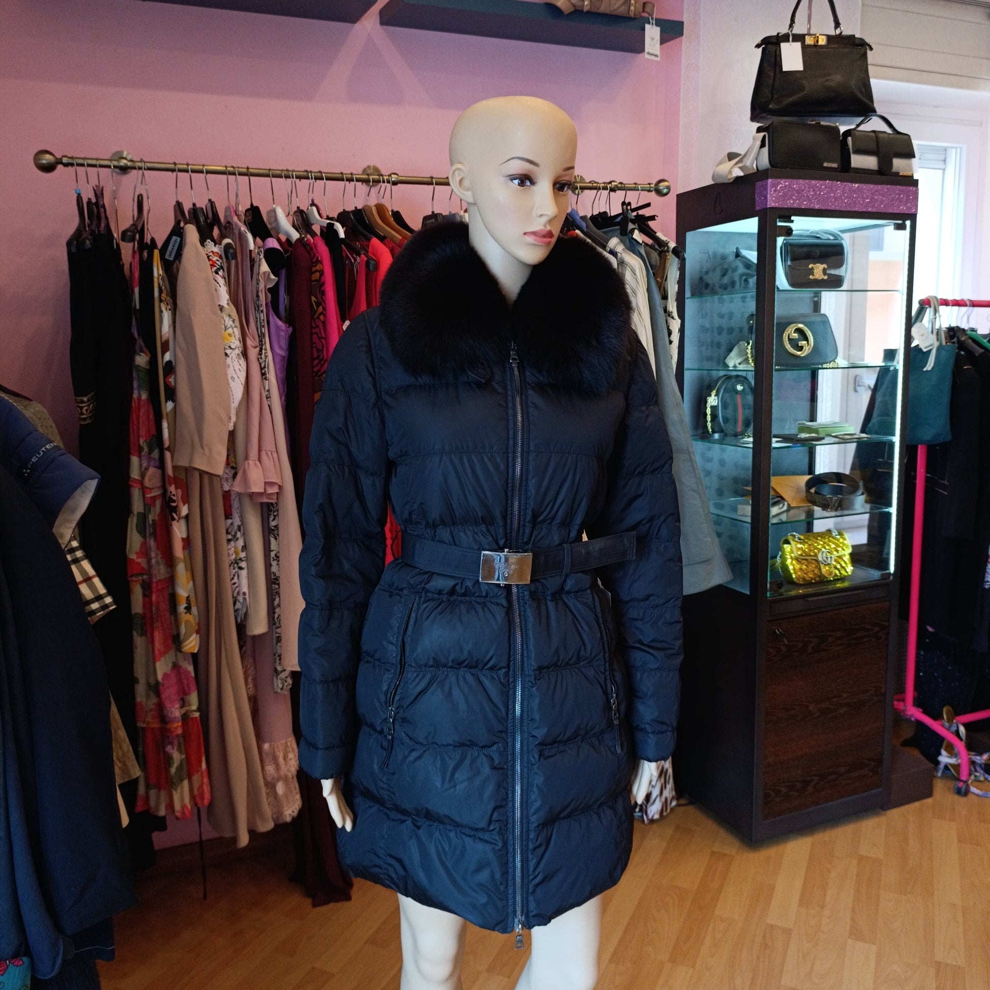 Bellissimo piumino di Prada con inserti in pelo vero di volpe e pelle