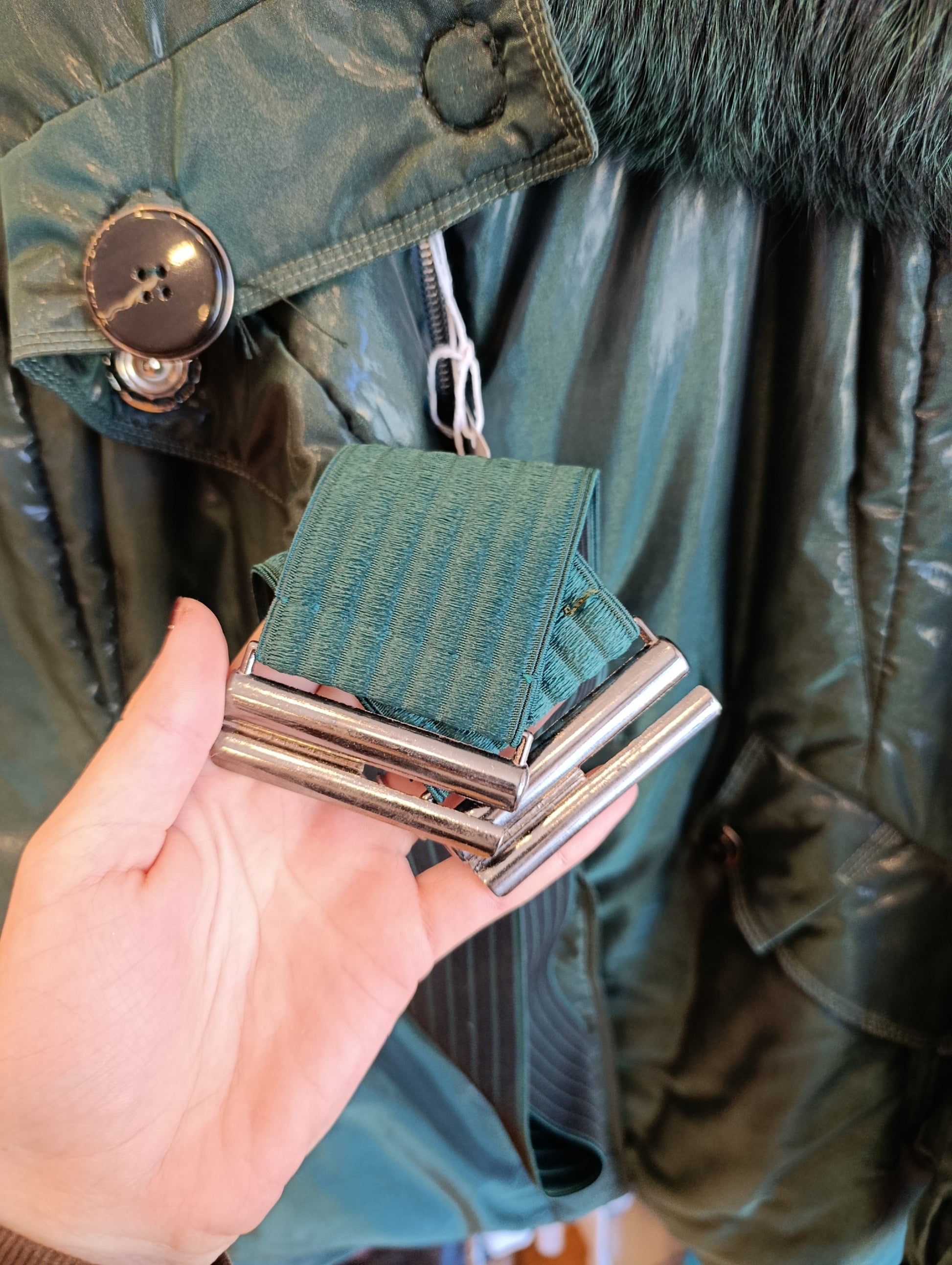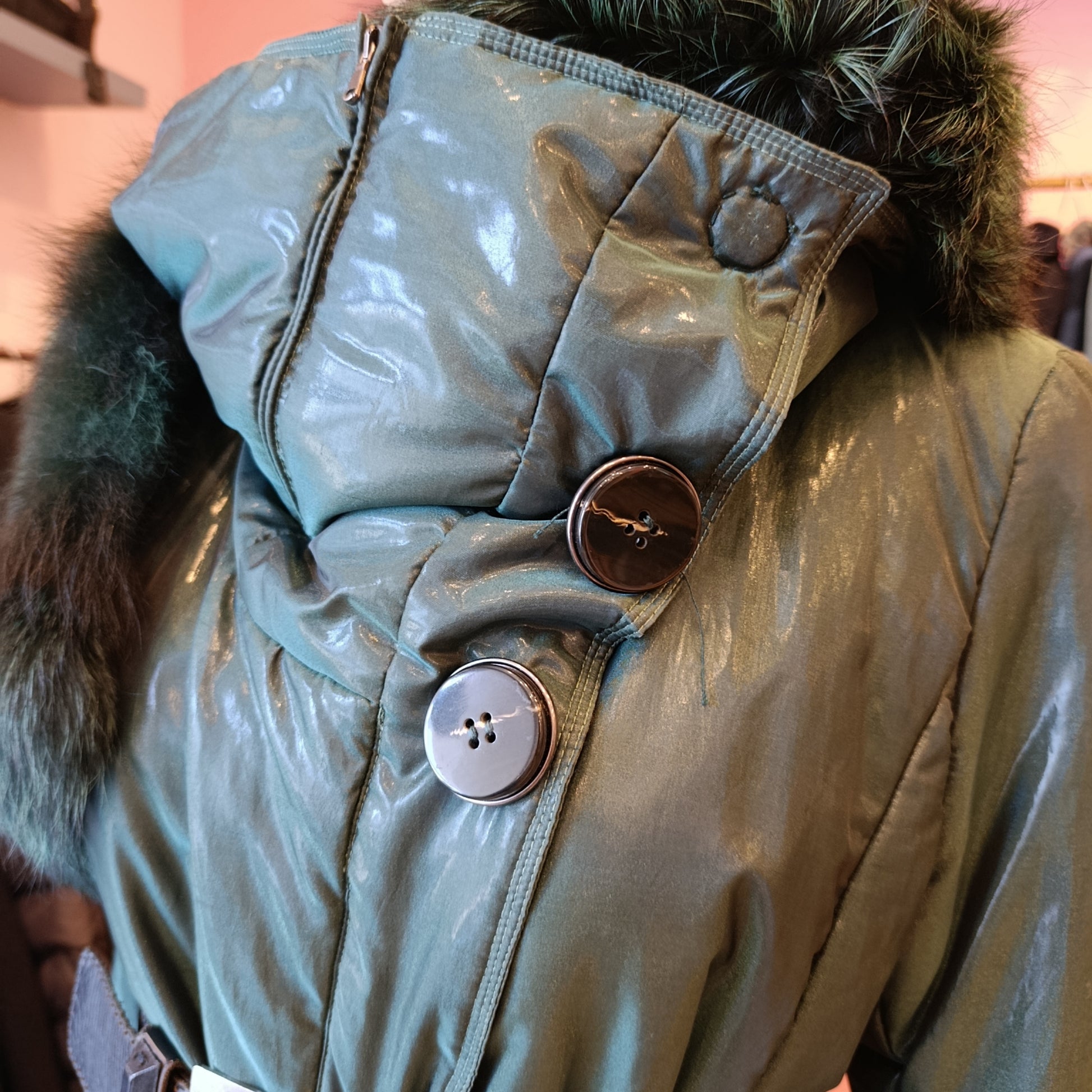 Ha l'inserto in pelo di volpe, che può essere rimosso tramite bottoncini.