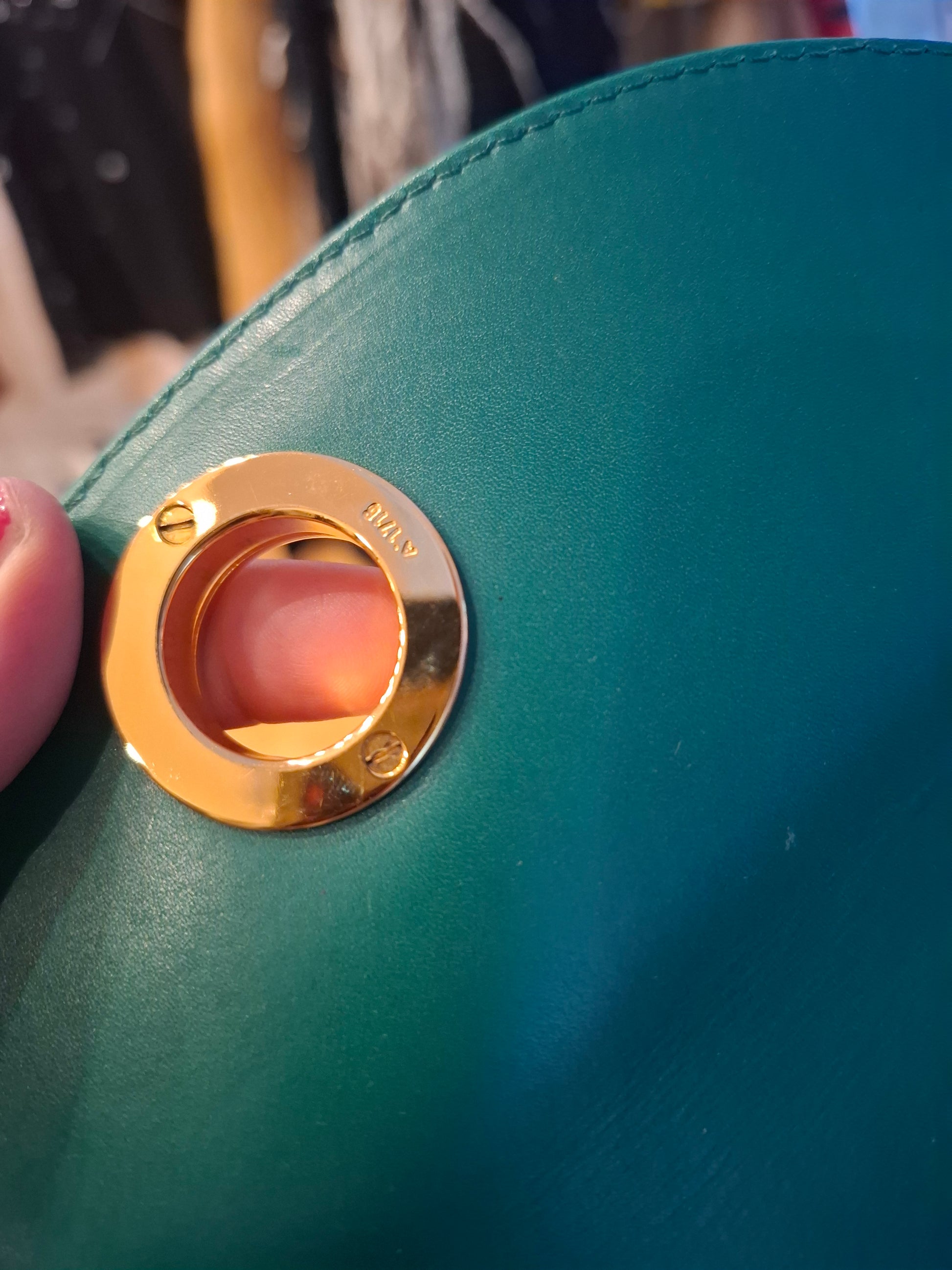 Possiede anche portafoglio interno tono su tono in verde che richiama l'interno della pochette