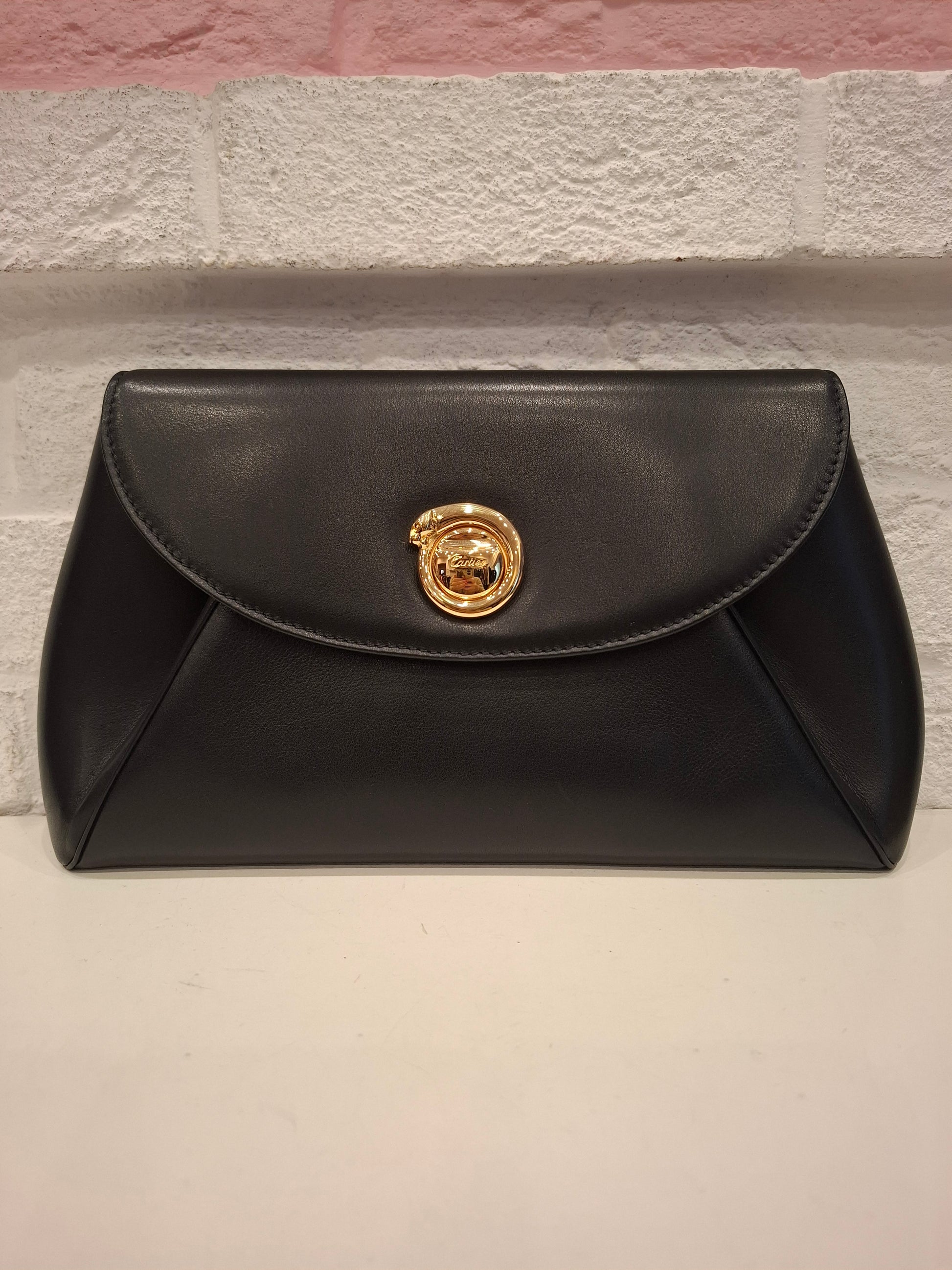 Pochette Cartier nera con logo frontale cartier in colorazione dorata