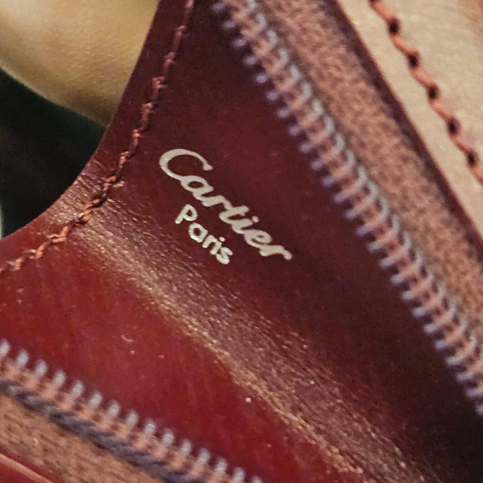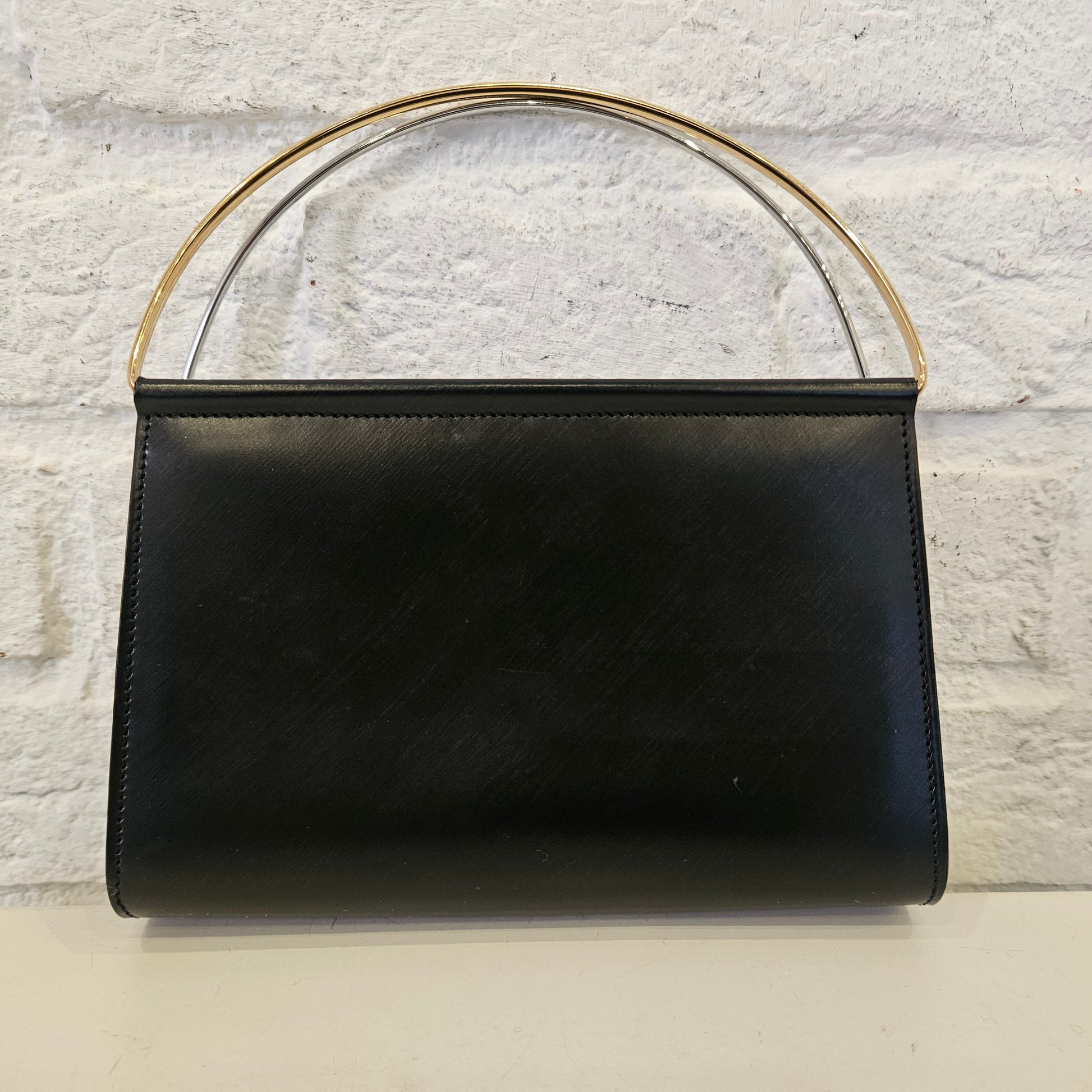 Borsa in pelle colorazione nera e interno nel classico bordeaux del bran francese. Manici in acciaio cromato e dorato, dotata di card