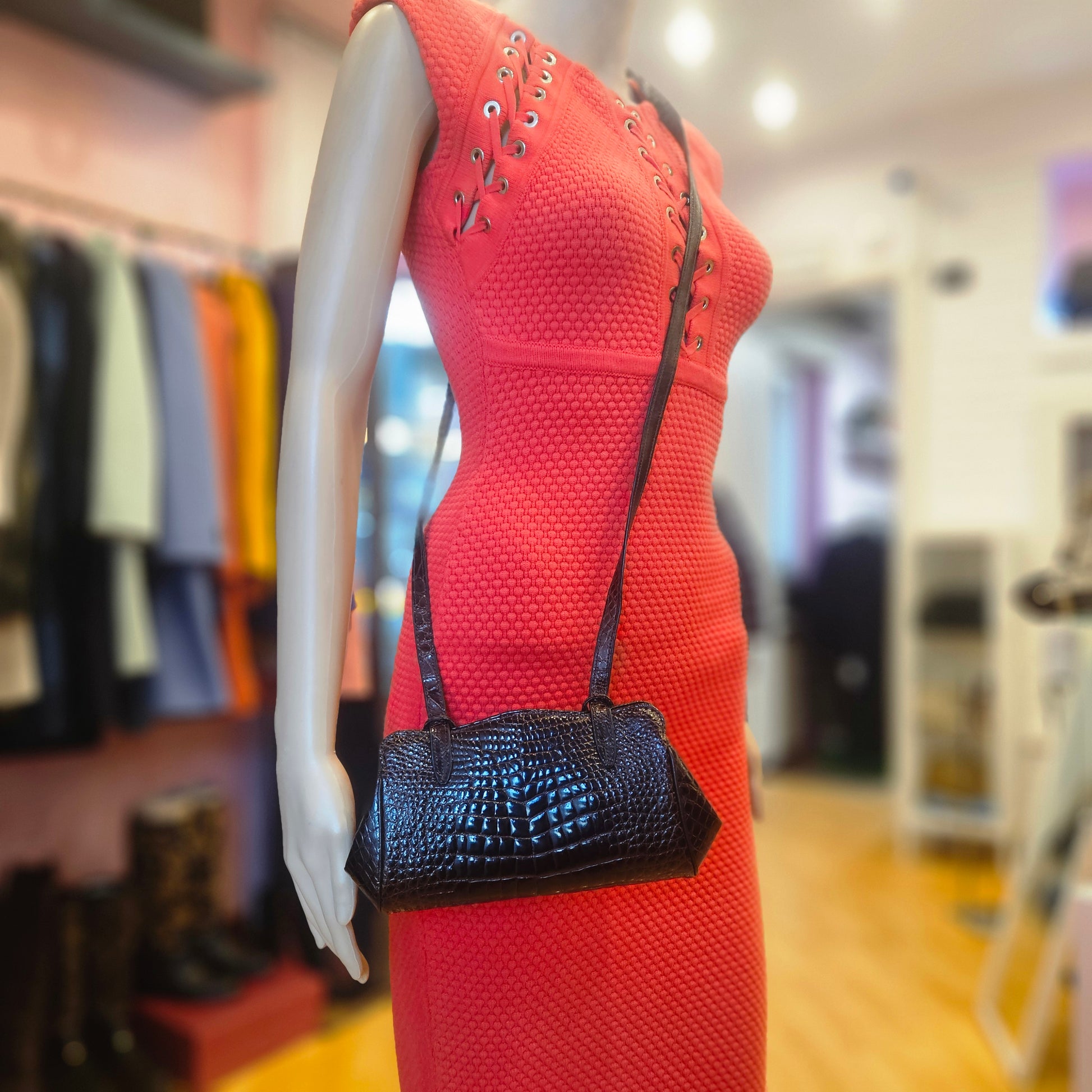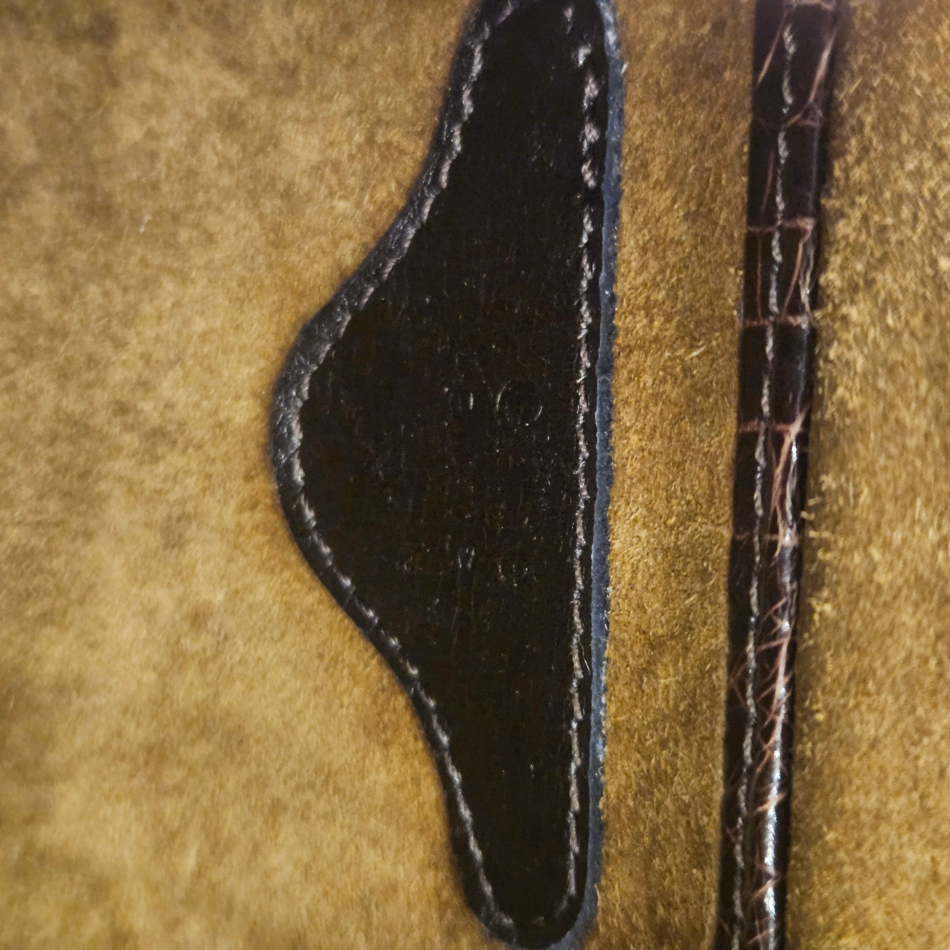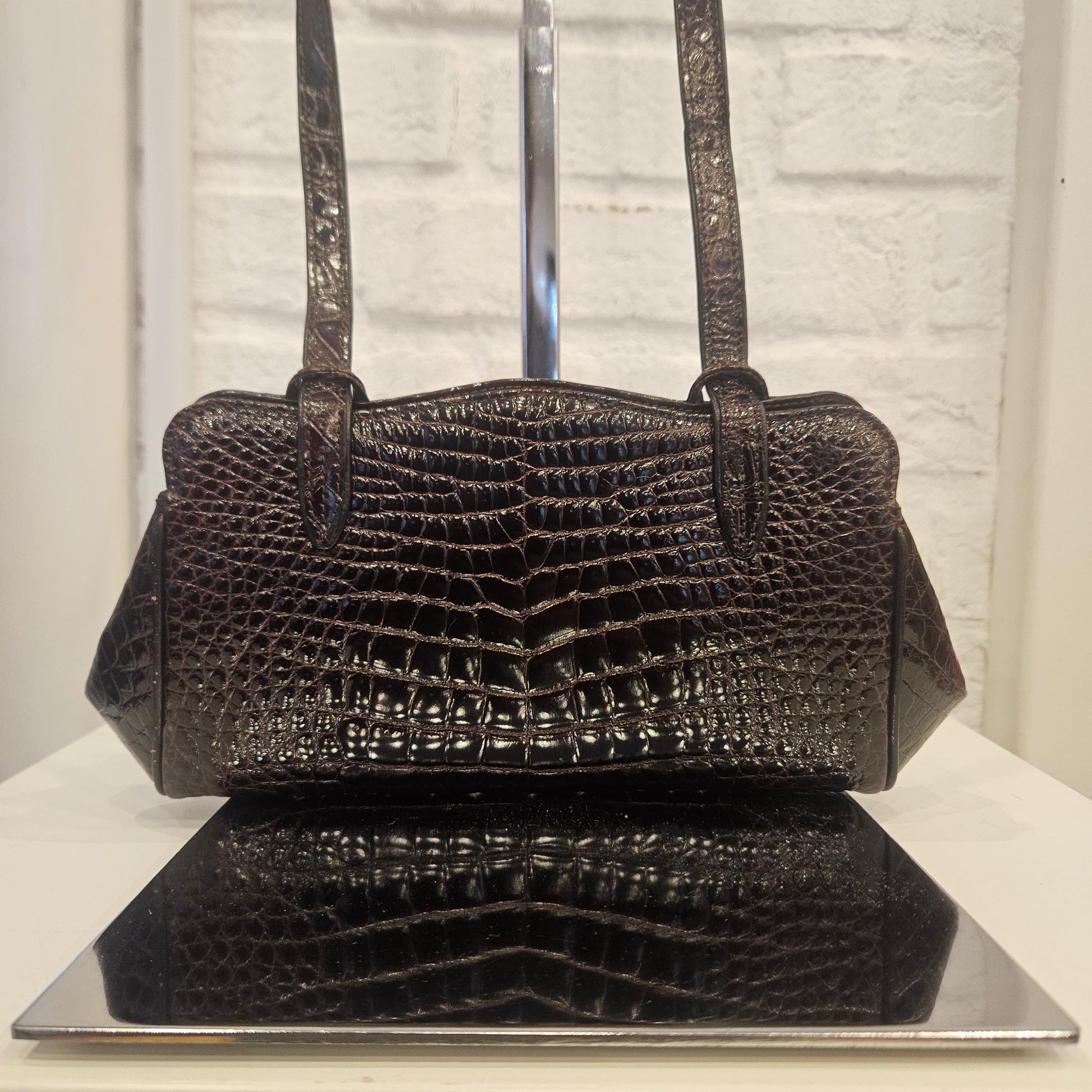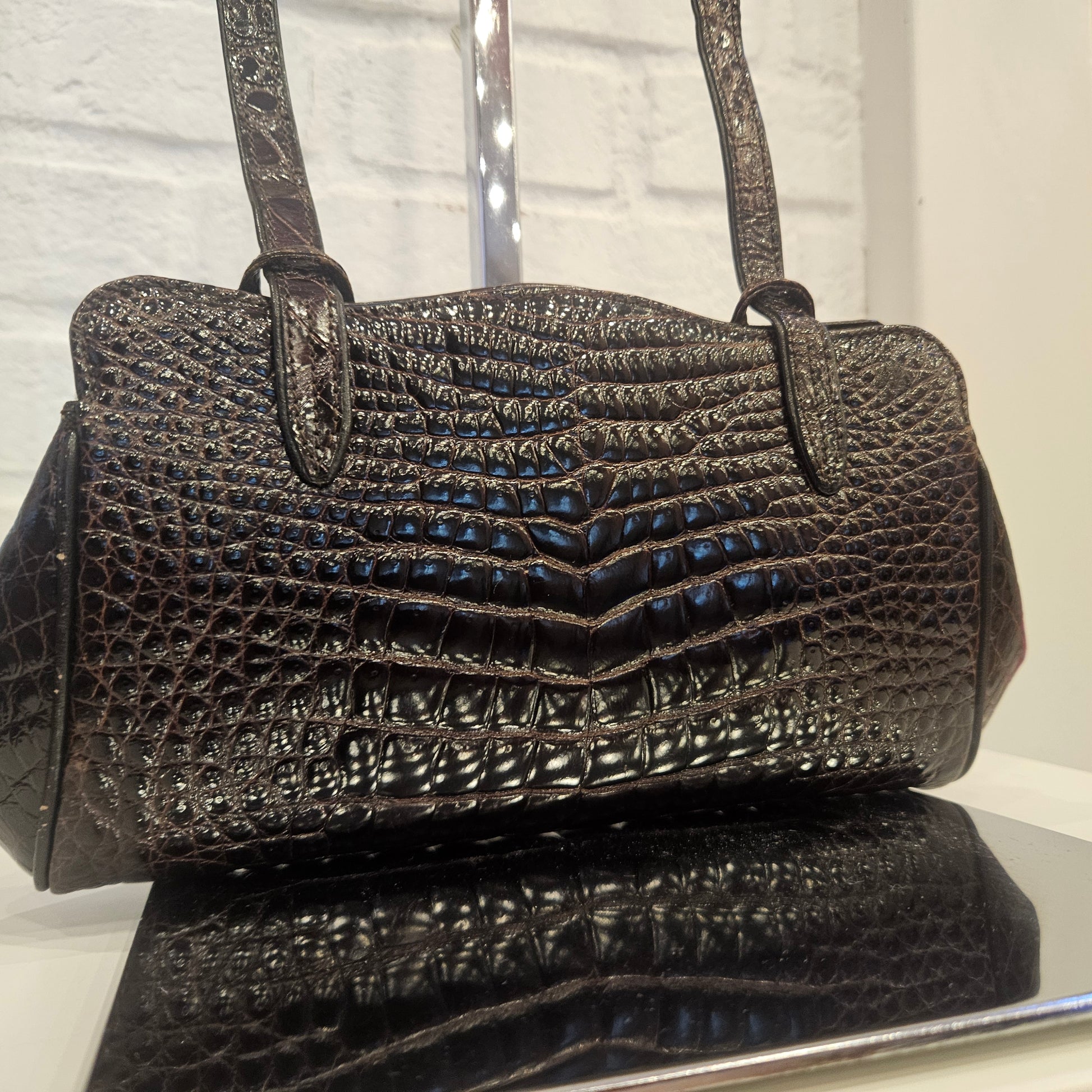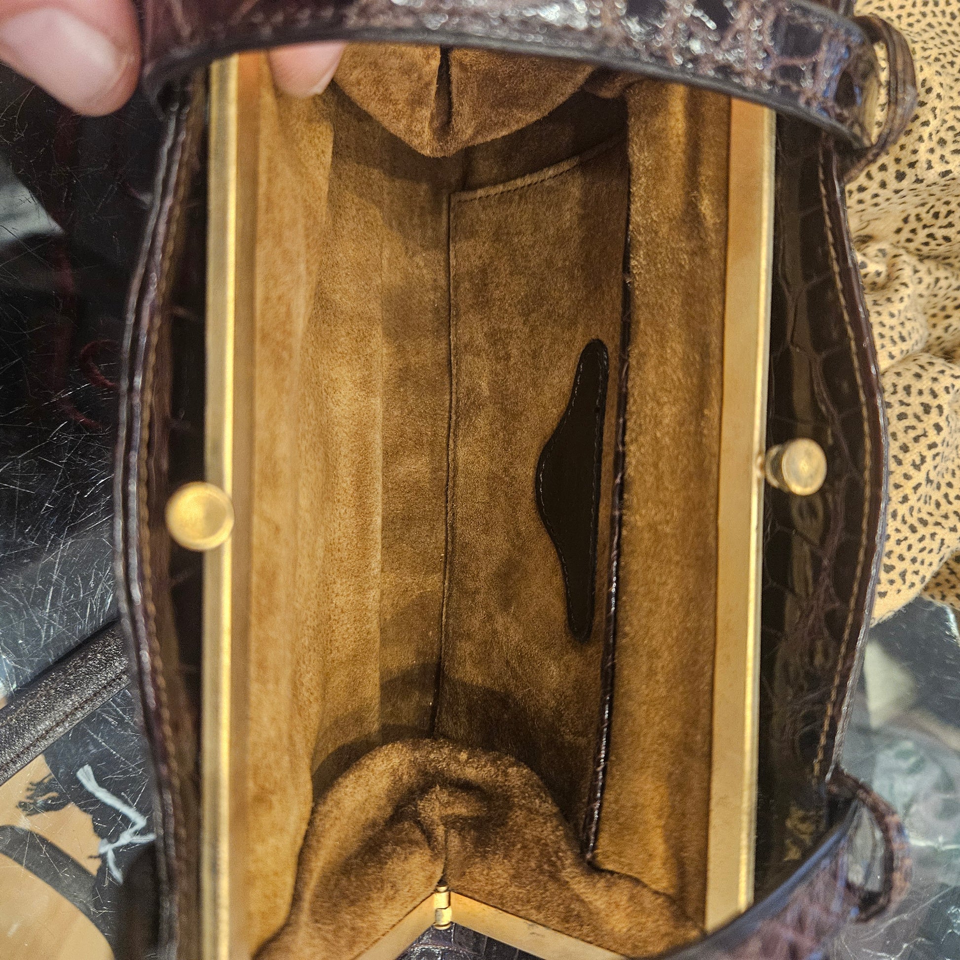 Pochette a tracolla Vintage Chloé dalla forma trapeziodale in pelle di coccodrillo colorazione marrone, interno in pelle scamosciata con tre scomparti separati.