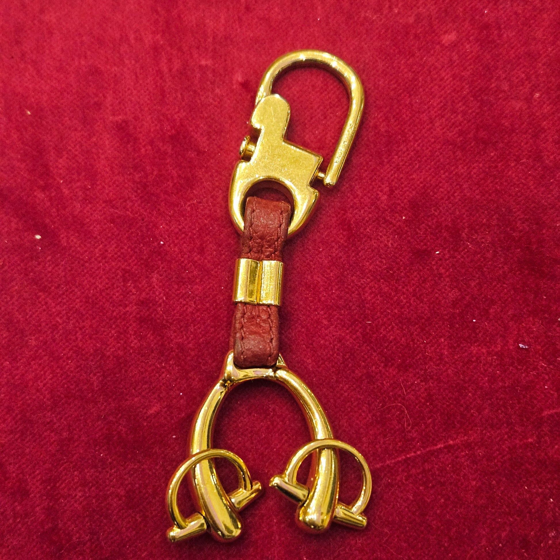 porta chiavi Gucci vintage in colorazione oro e inserto in pelle rossa