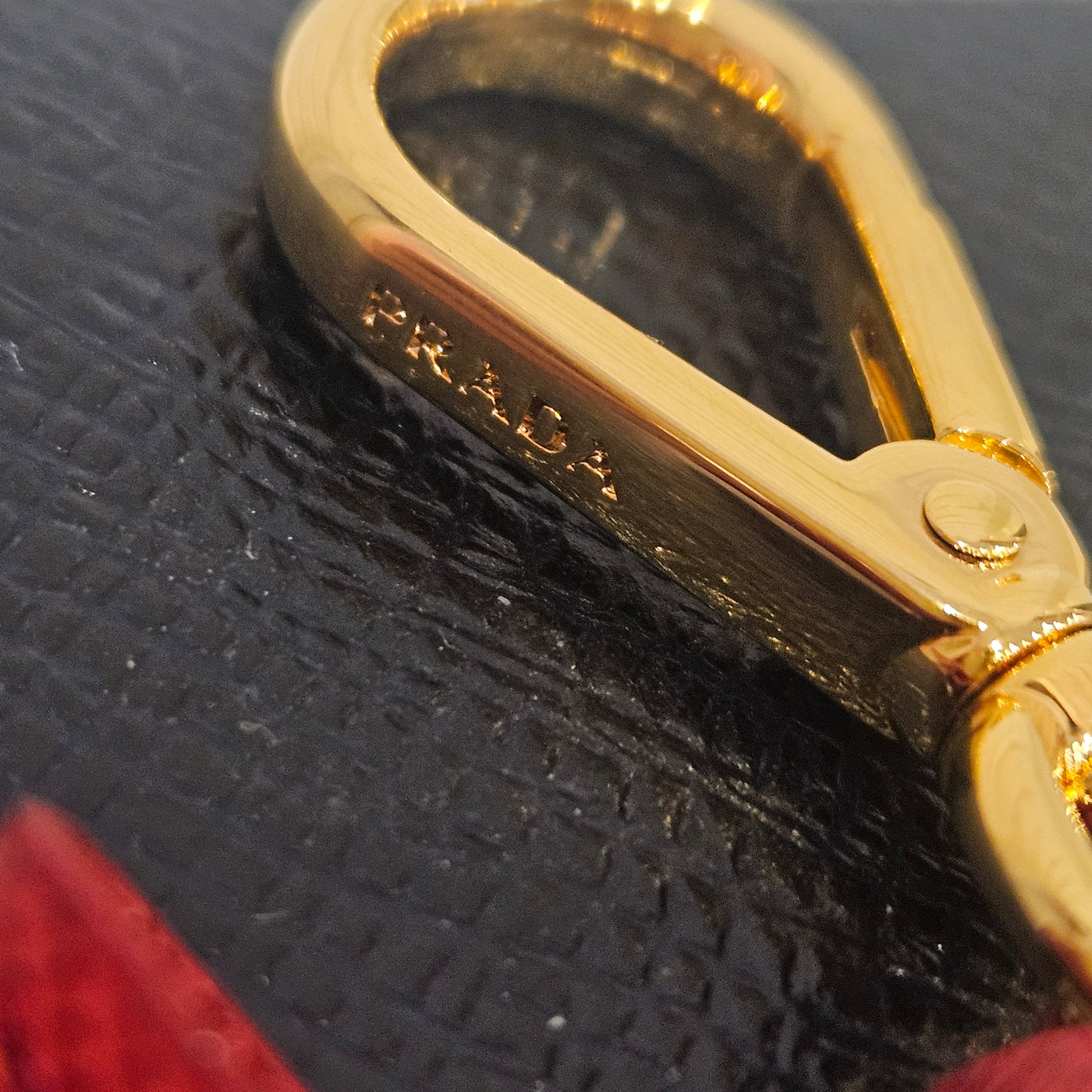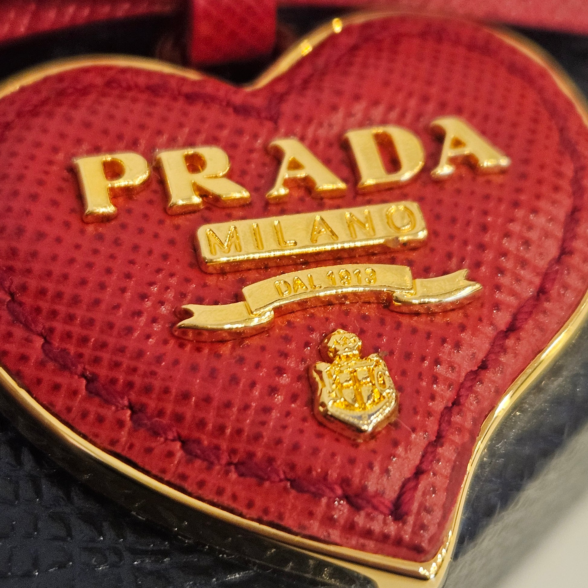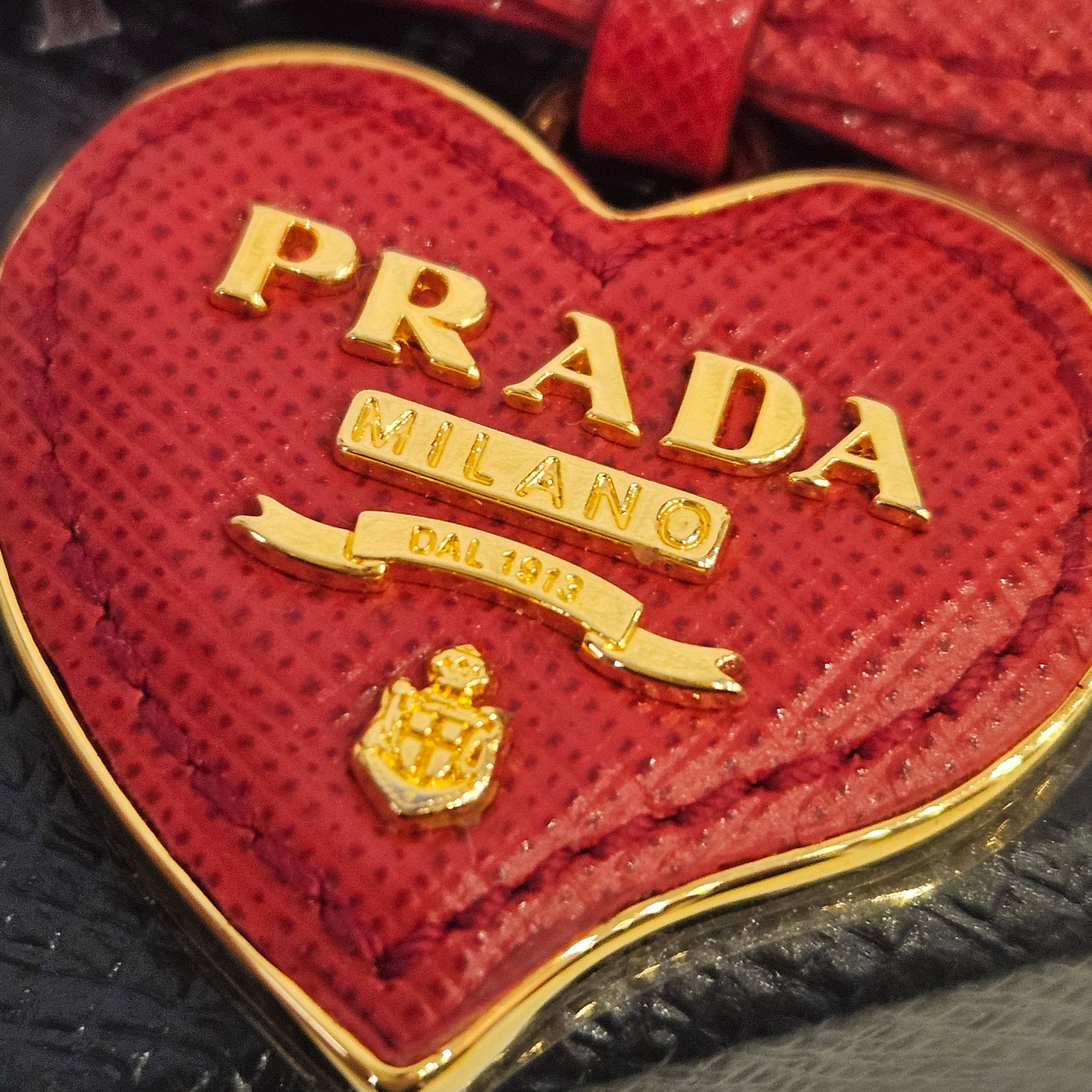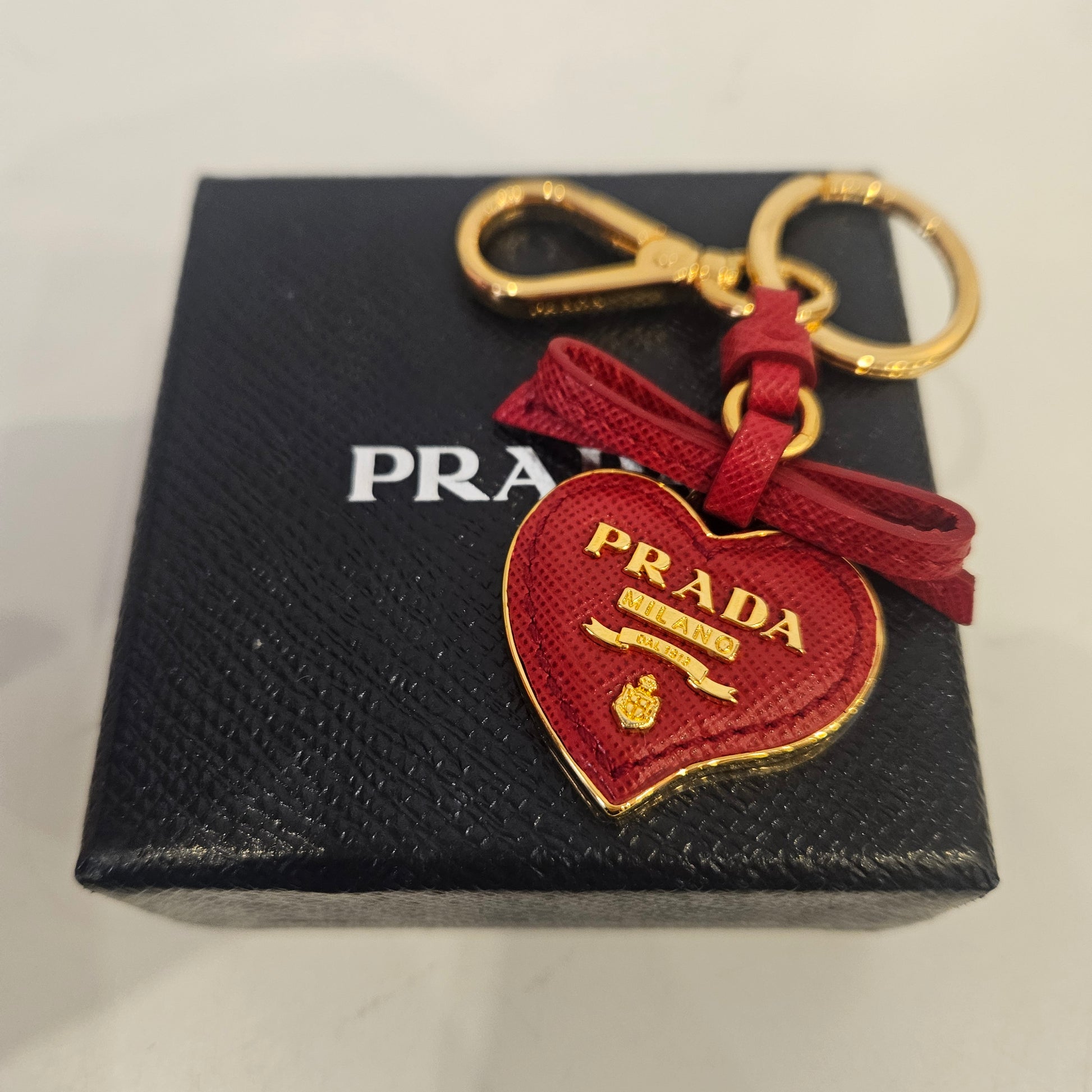 Porta chiavi Prada a forma di cuore in saffiano colorazione rossa e hardware dorato