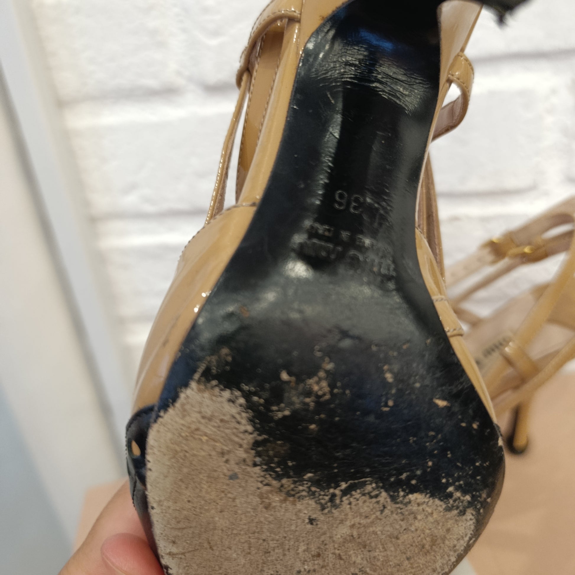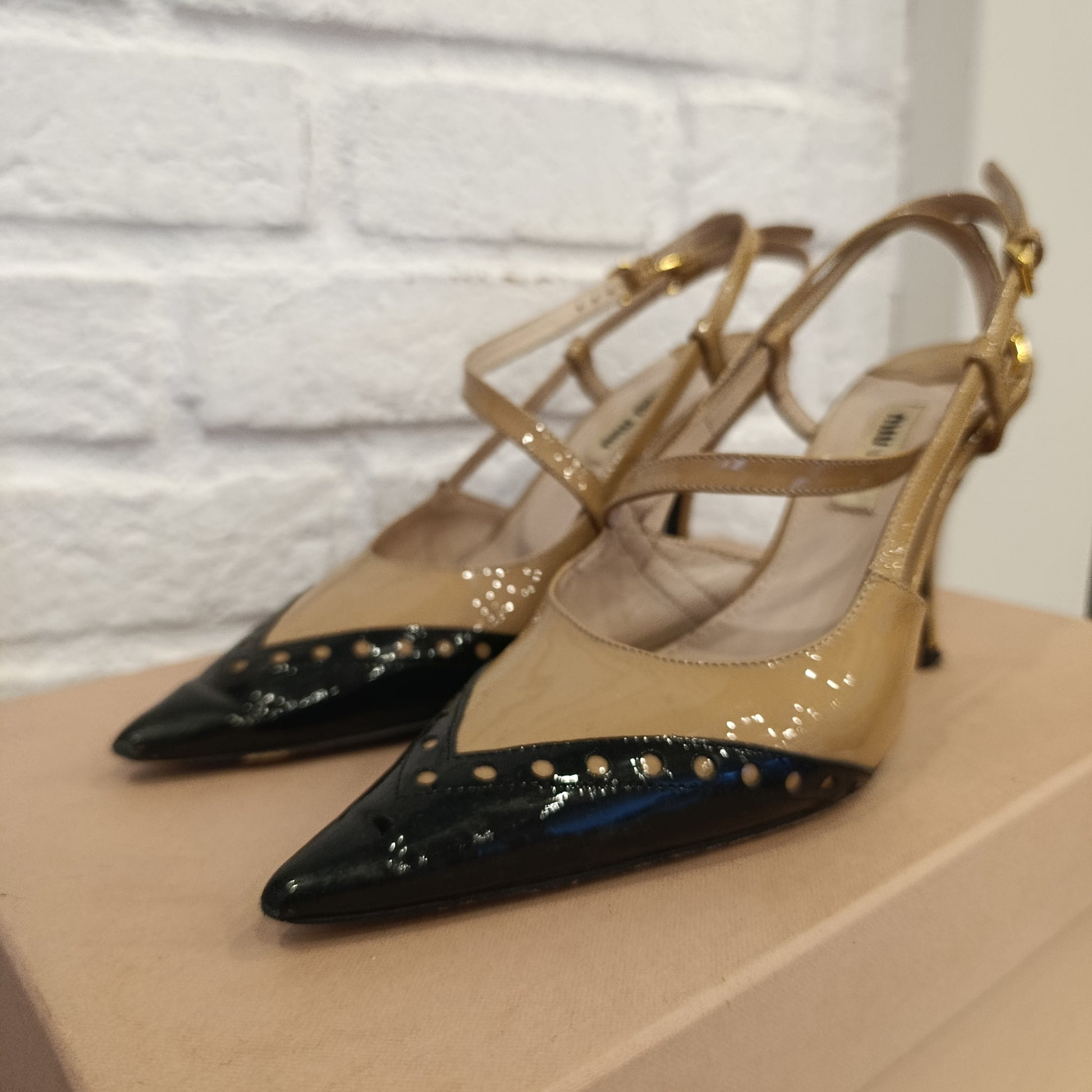 Tacco in vernice lucida beige e e bianca, numero 36, a punta