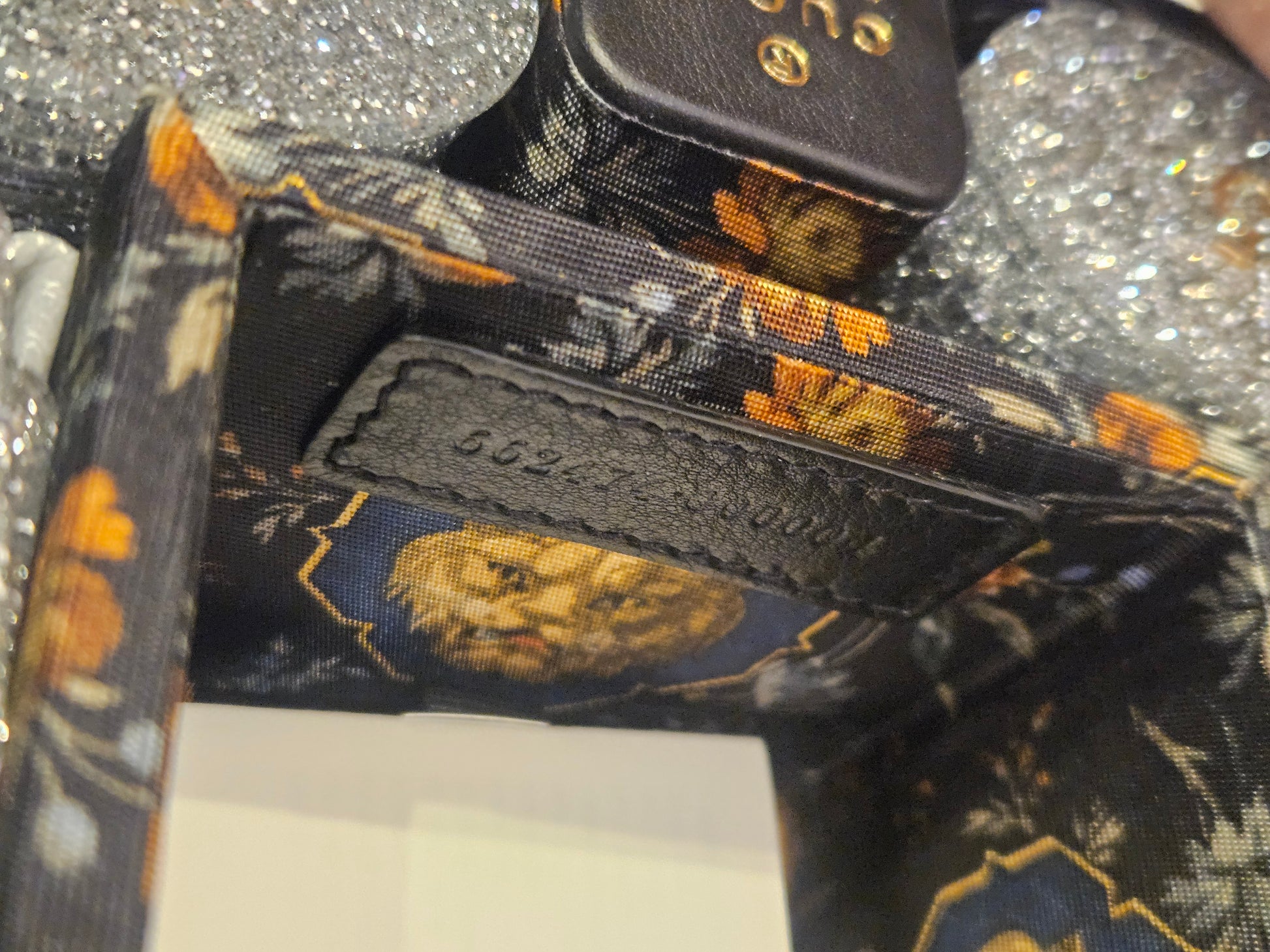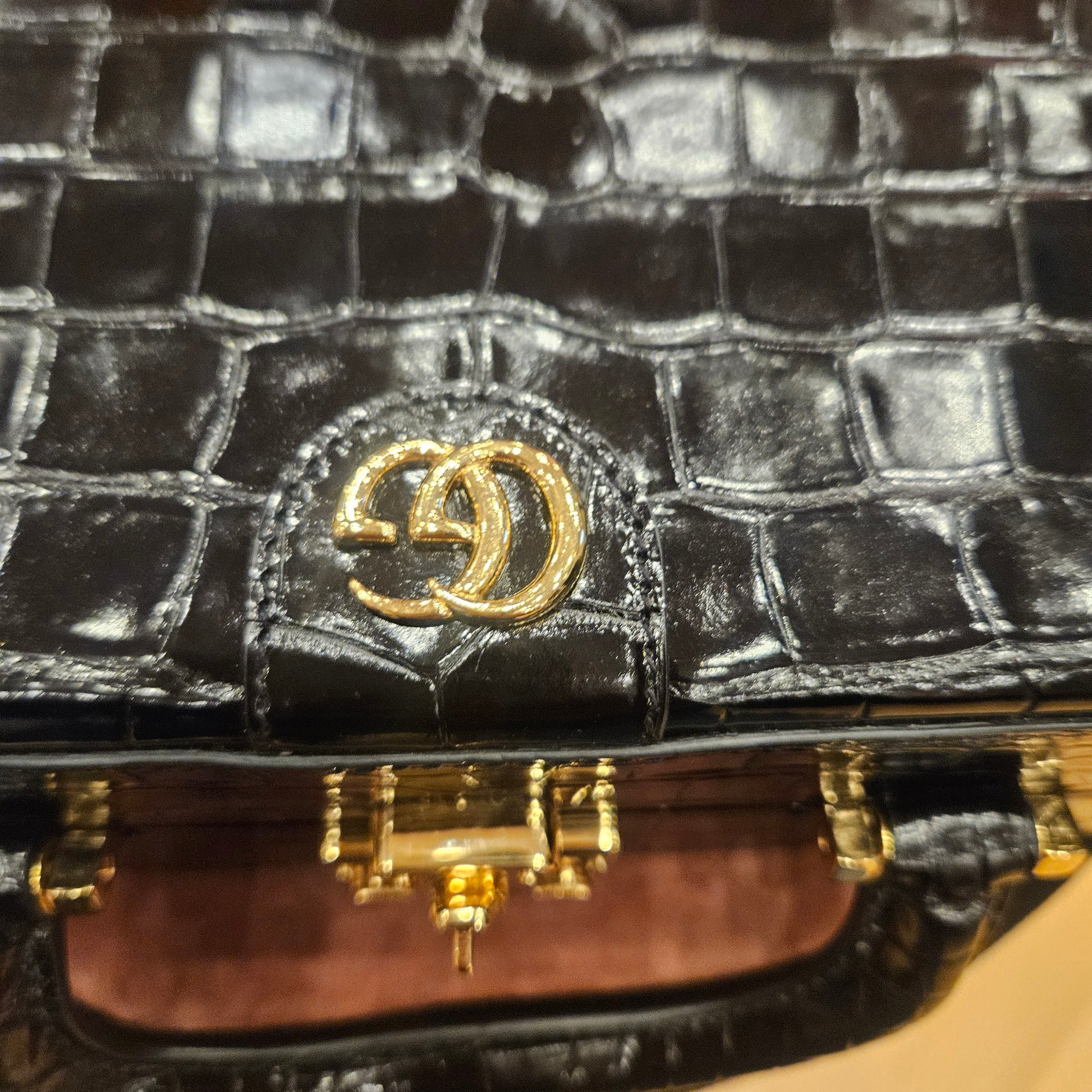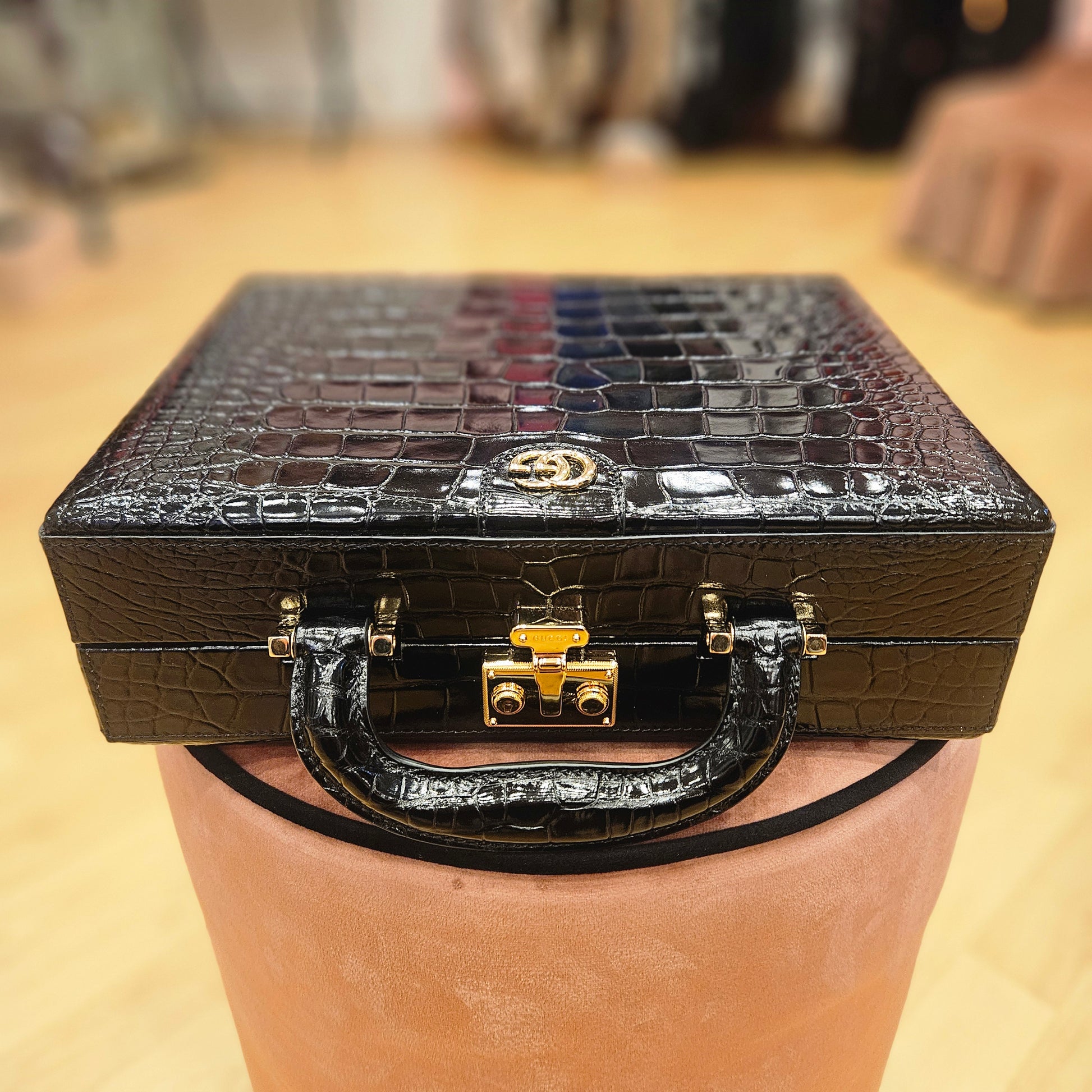 Valigia in vero coccodrillo nero con logo Gucci Marmont, motivo preso dagli archivio Gucci. Un pezzo senza tempo dalla tiratura limitata.