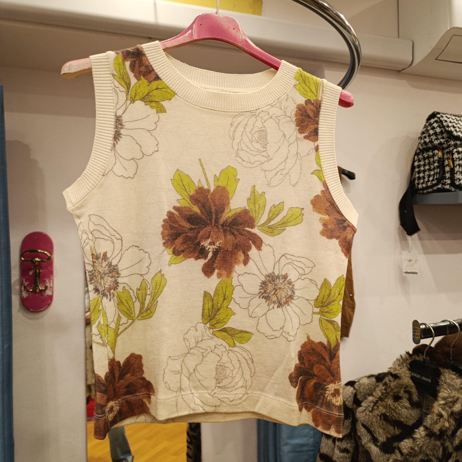 Combo sottogiacca smanicato + cardigan panna fantasia floreale Gabriele Botto tg 44.