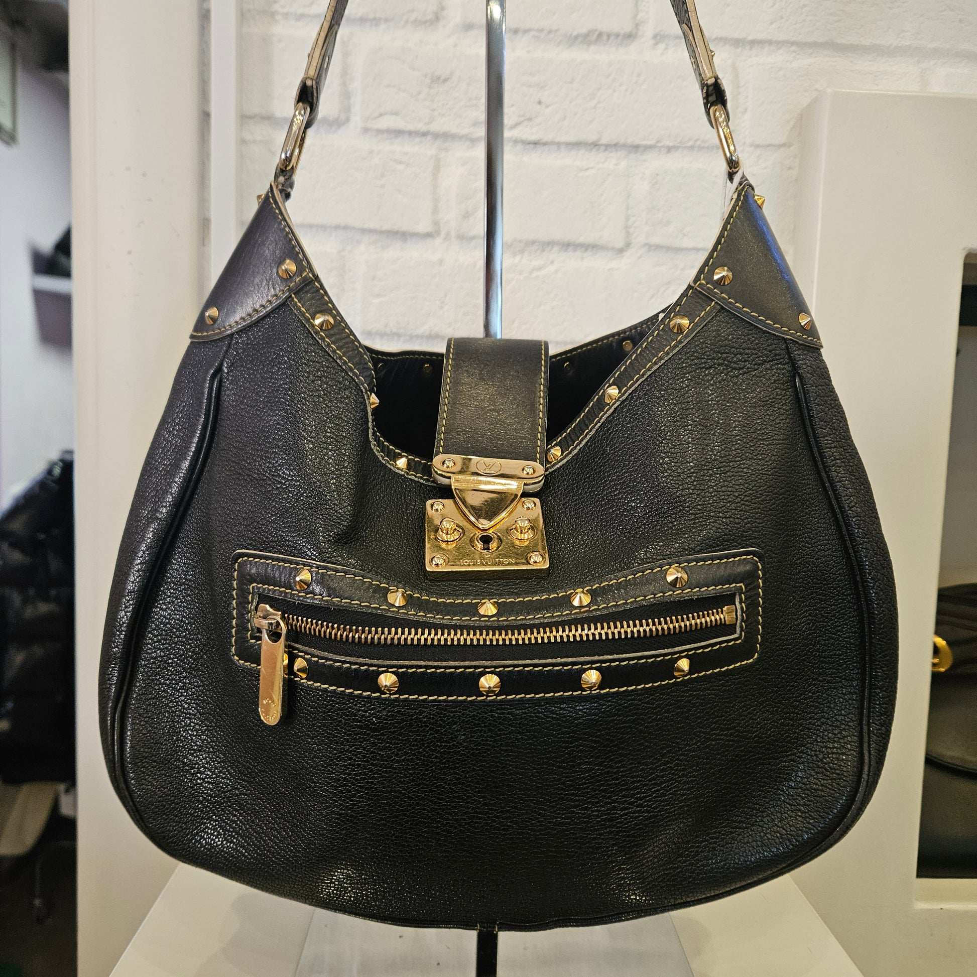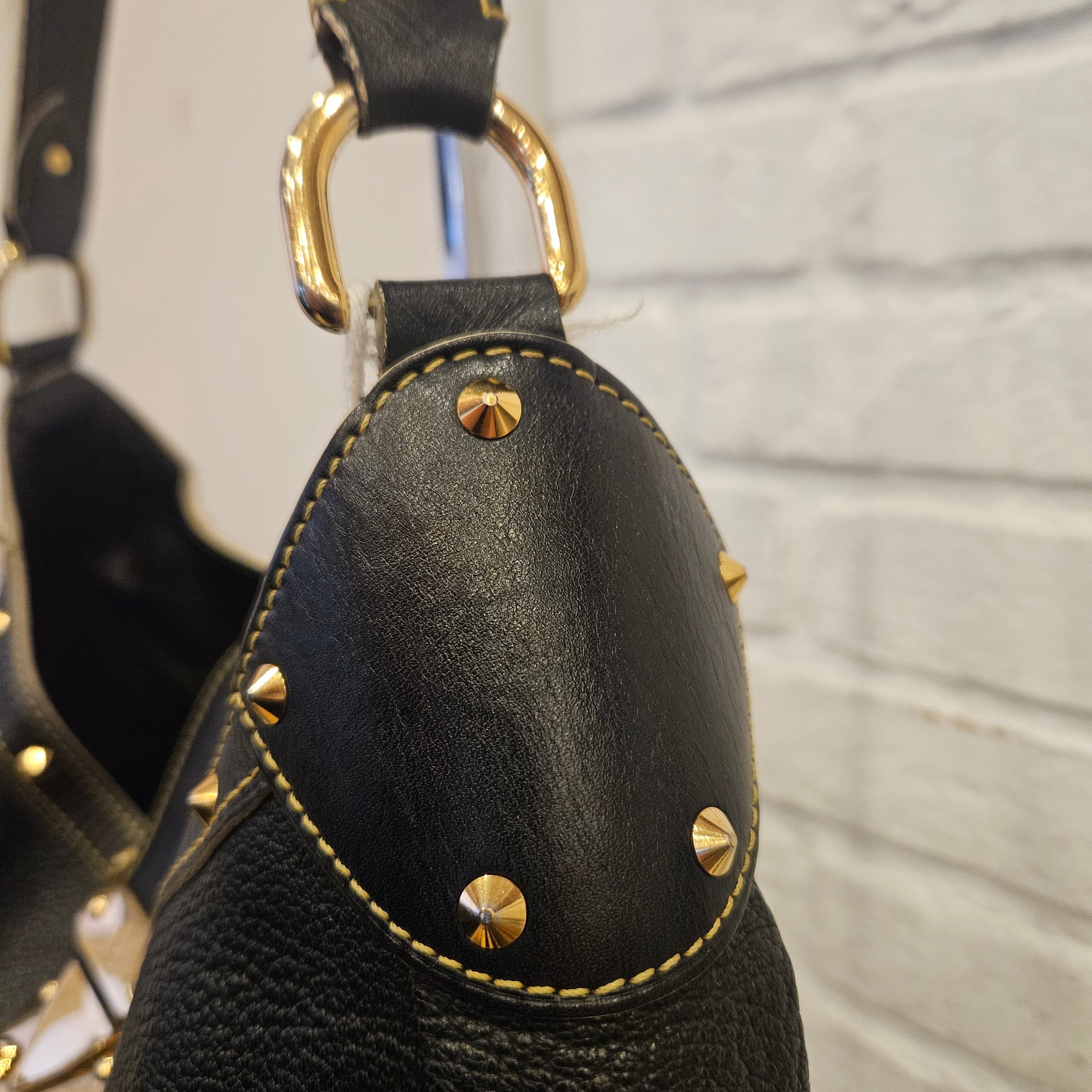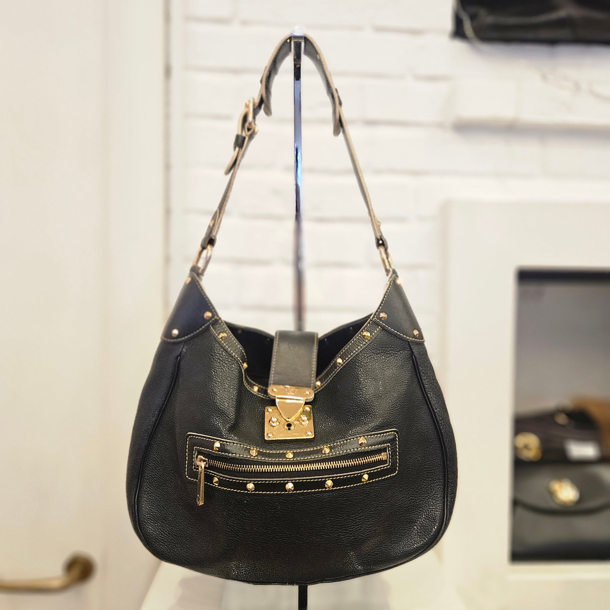 Borsa Suhali L'Affriolan Louis Vuitton in pelle martellata nera e hardware dorato, borsa a spalla con tracolla regolabile. articolo in ottime condizioni, segnaliamo normali segni dovuti all'utilizzo. interno in buone condizioni é presenta una tasca interna