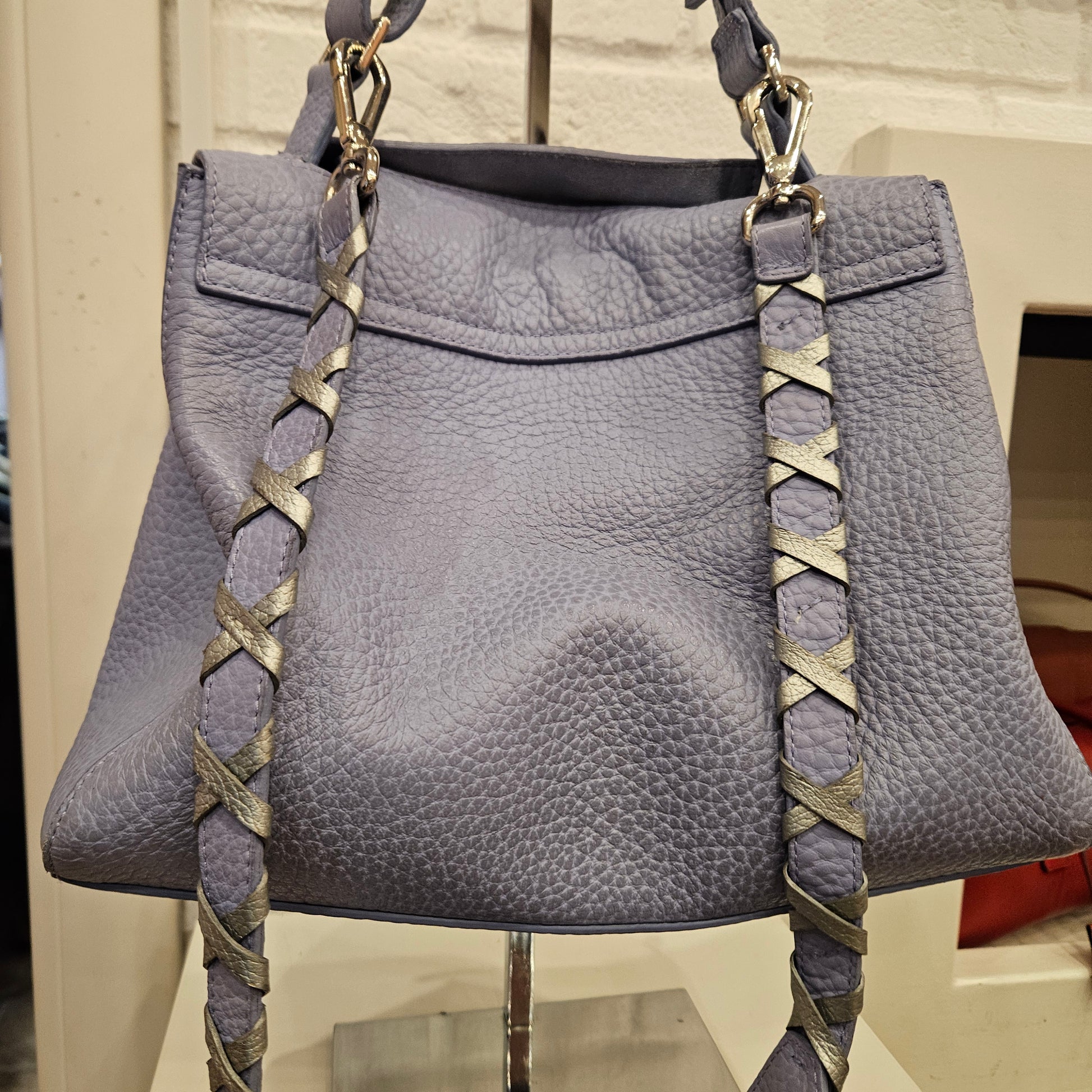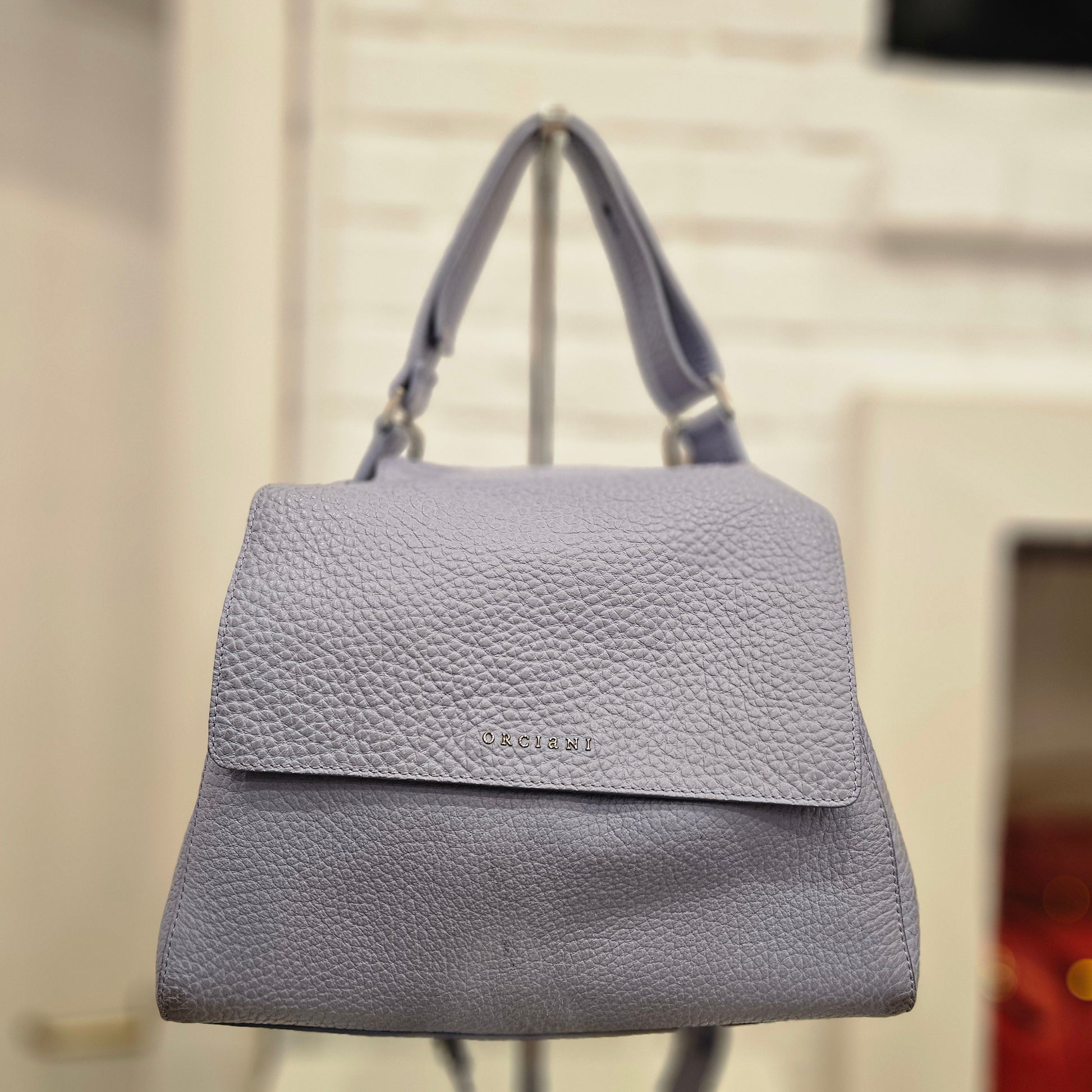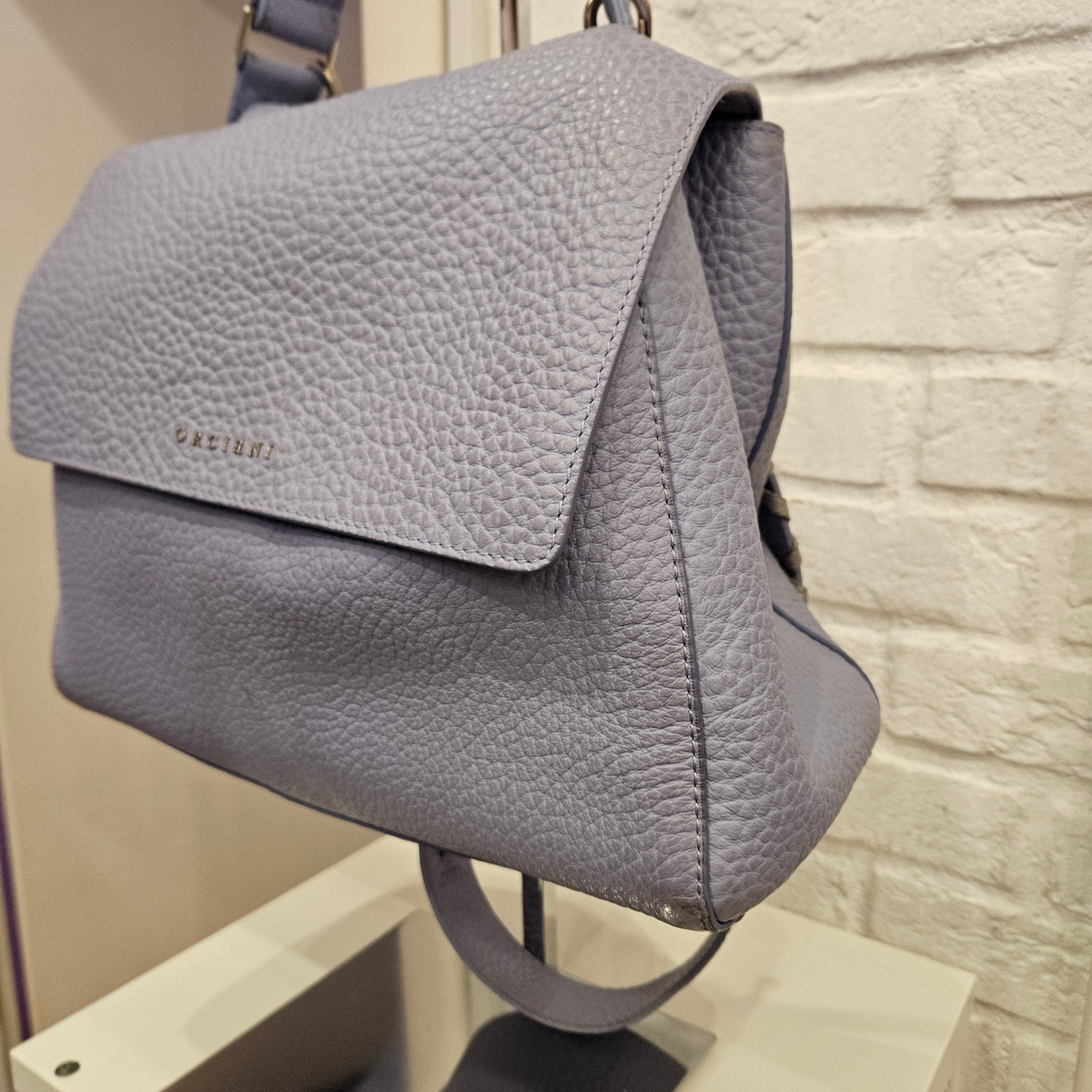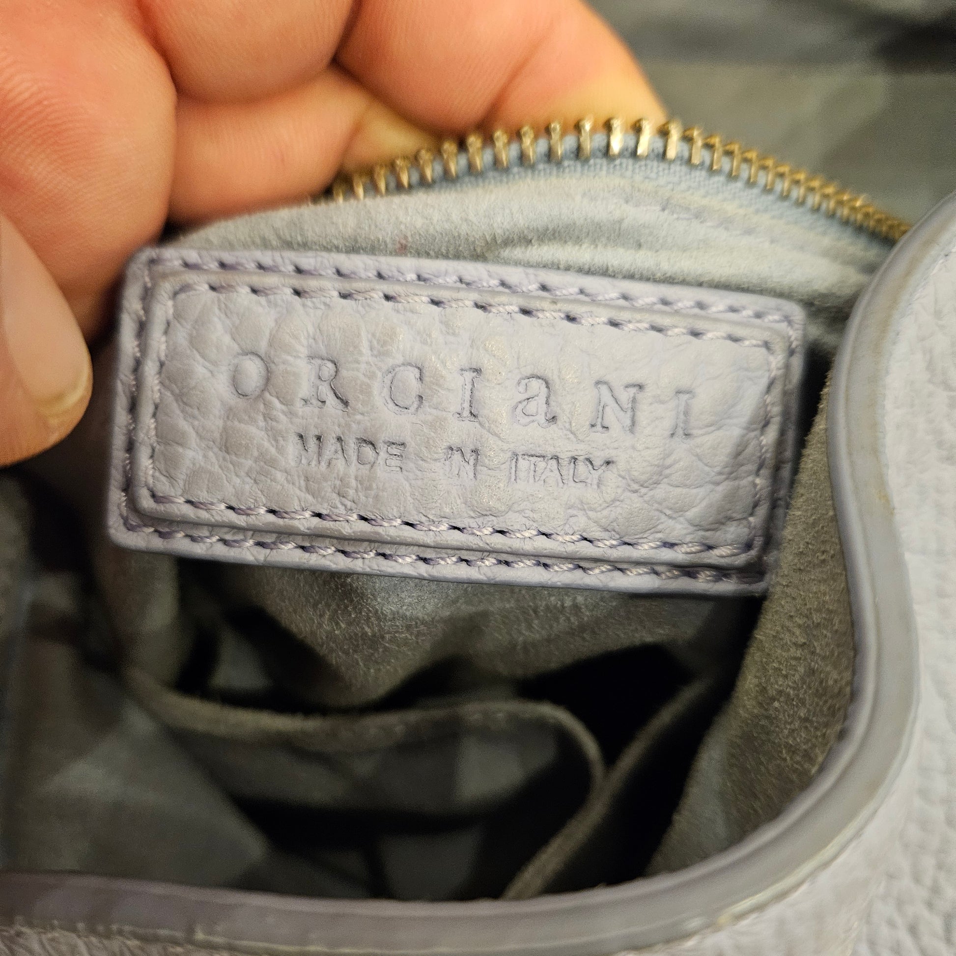 Bellissima borsa Orciani modello Sveva, in pelle in colorazione azzurra polvere, La borsa é in ottime condizioni angoli e manici in ottime condizioni , l'interno, scamosciato, presenta leggeri segni di annerimento