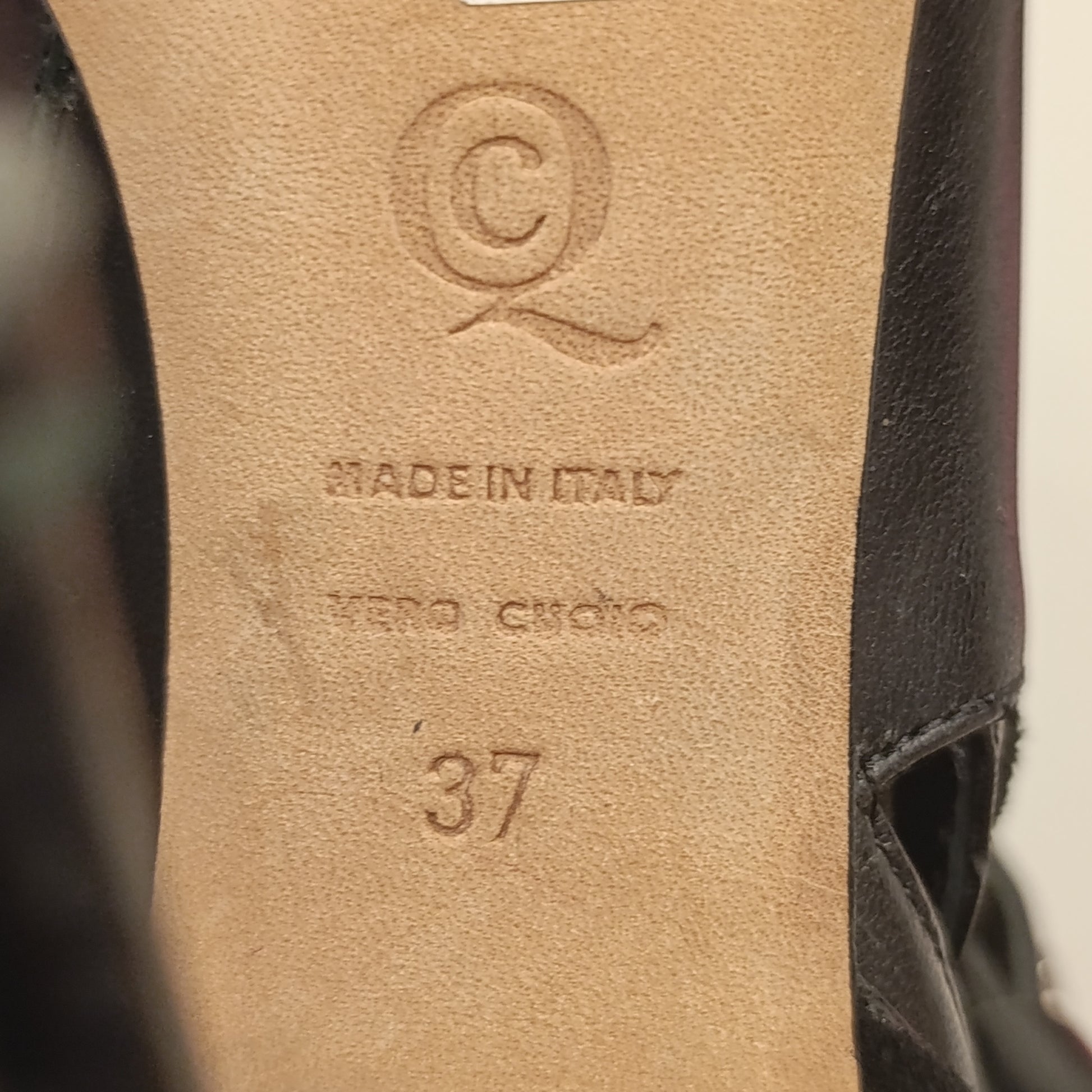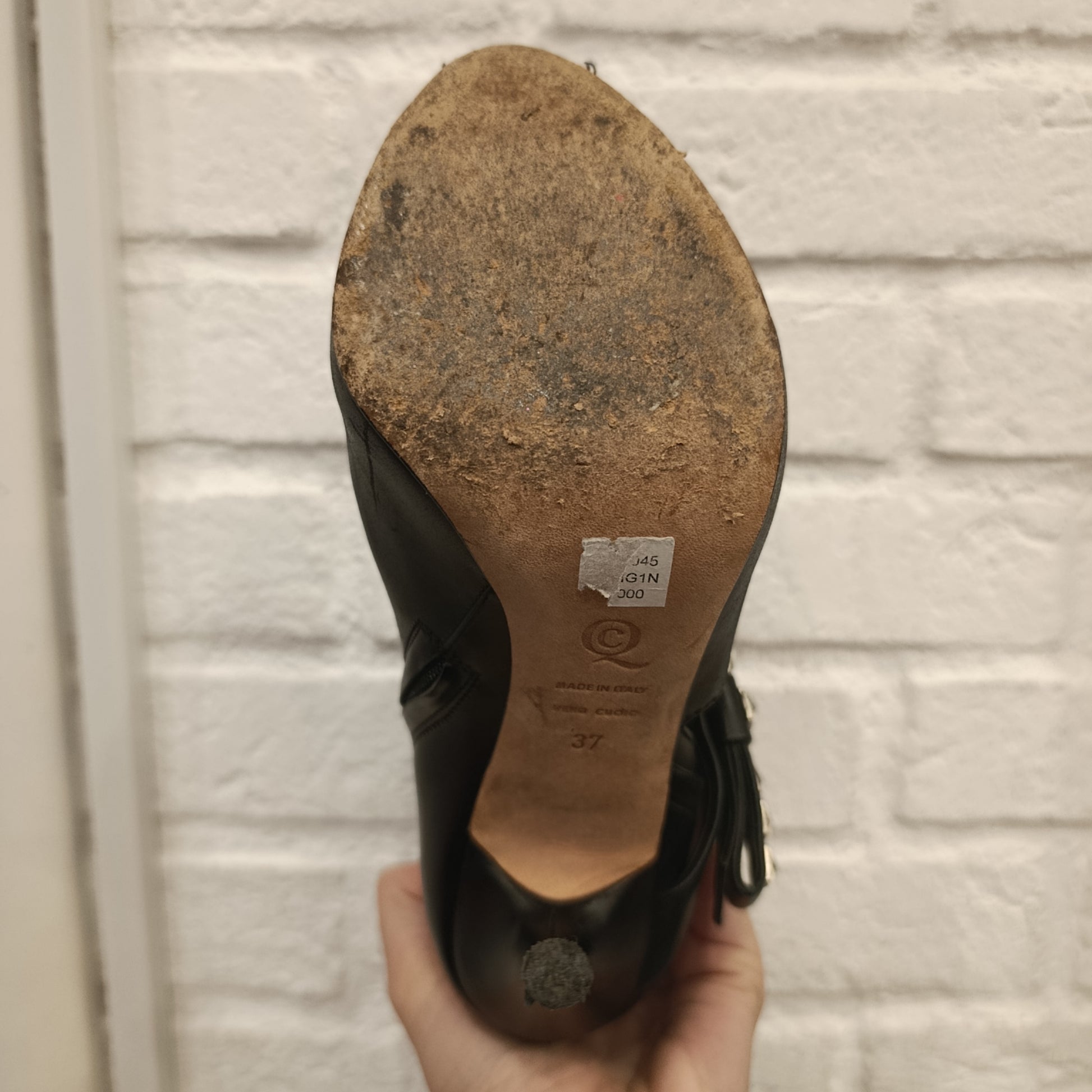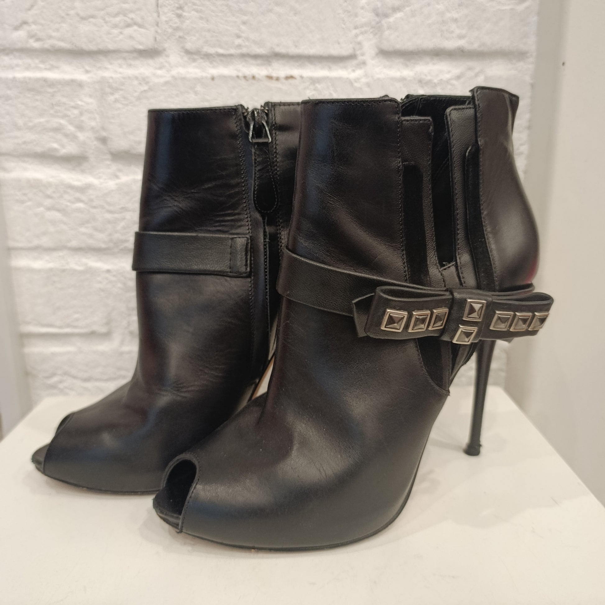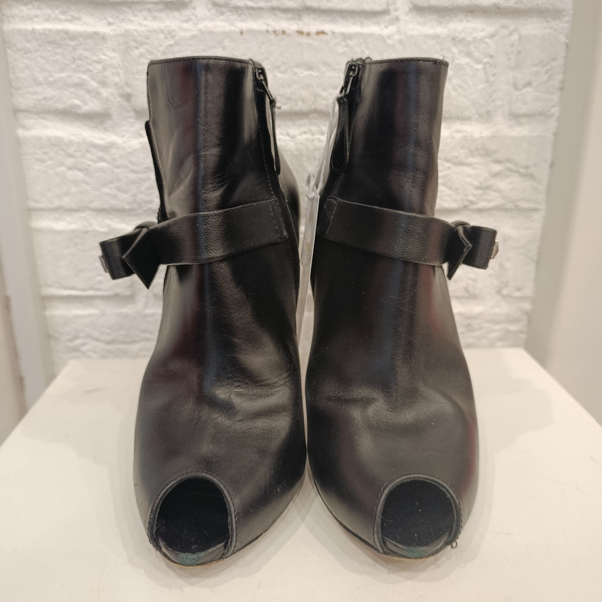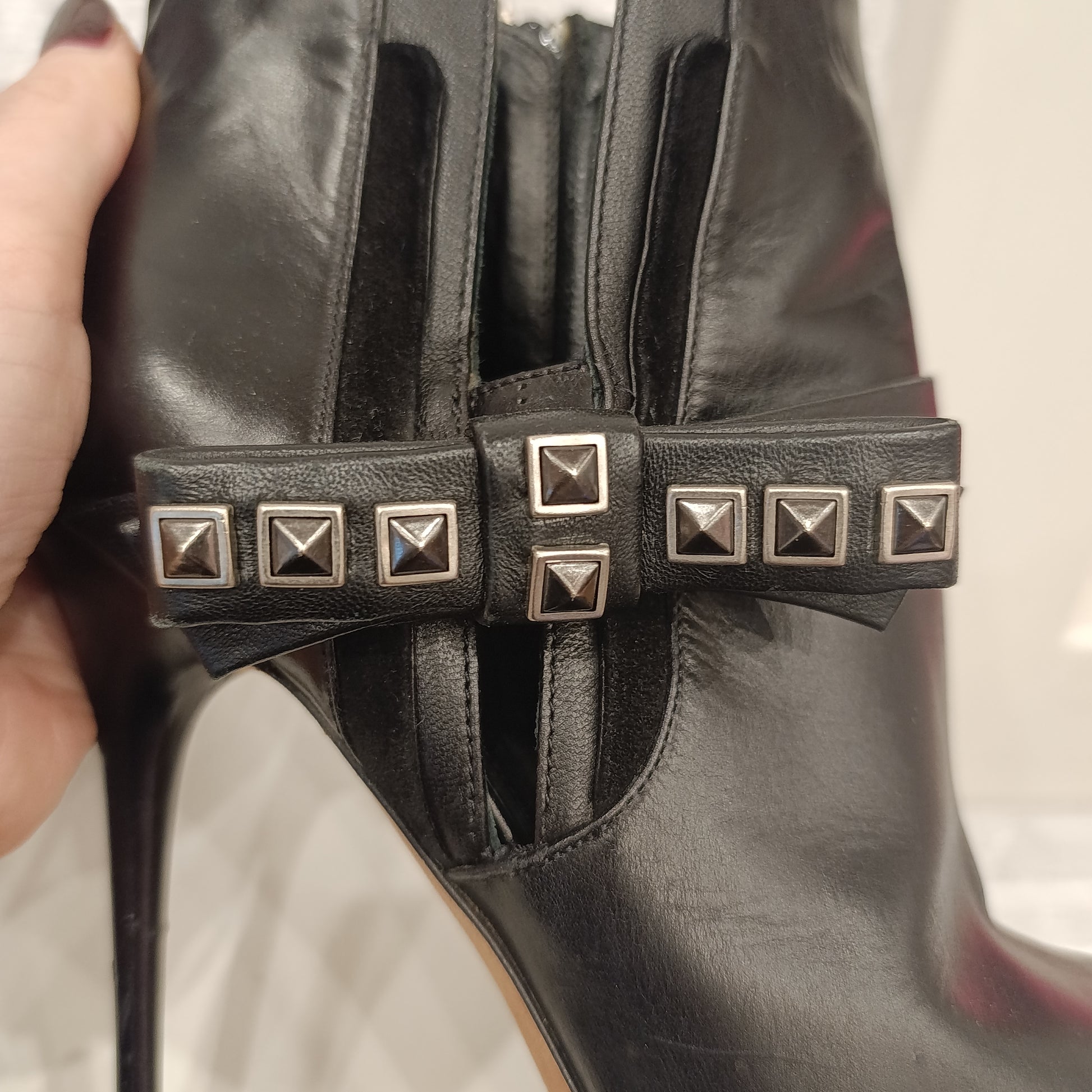 Tronchetto nero McQueen nr 37, con cerniera interna per la chiusura, e come dettaglio fiocco borchiato argento sul lato esterno della scarpa.