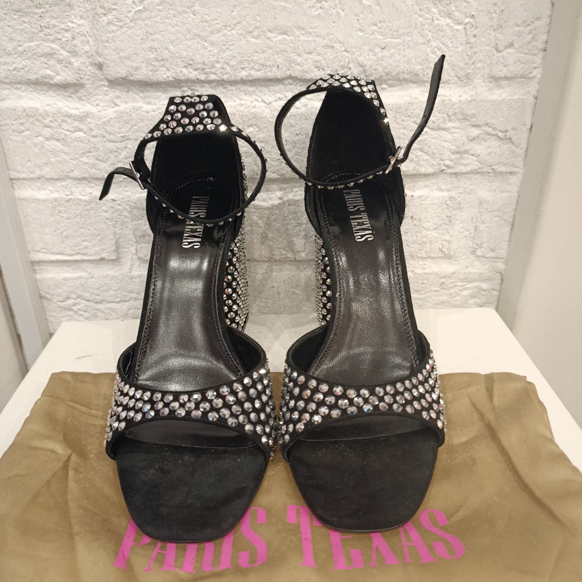 Bellissima scarpa con tacco nera ricoperta interamente da strass che danno luce, di Paris Texas in nr 39.