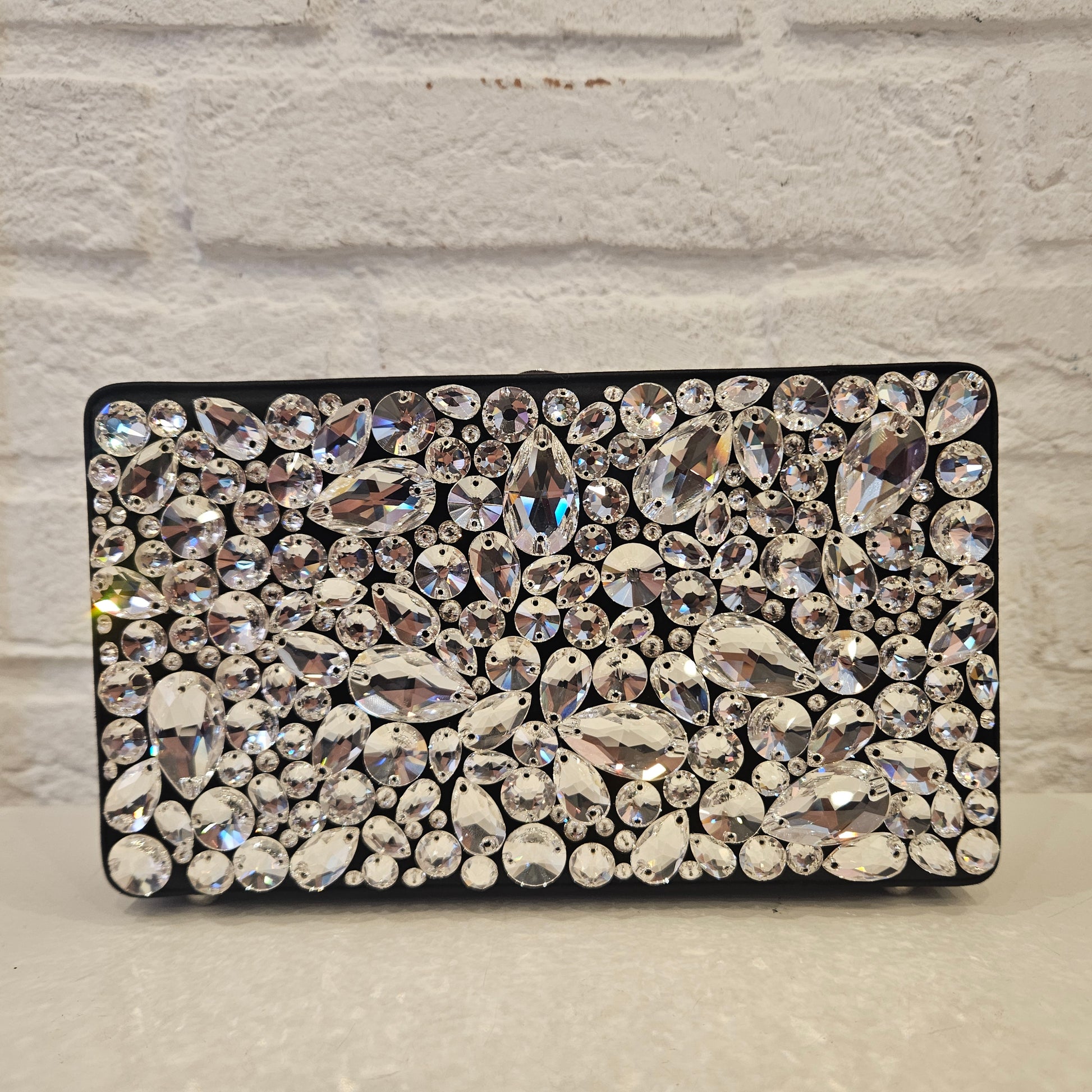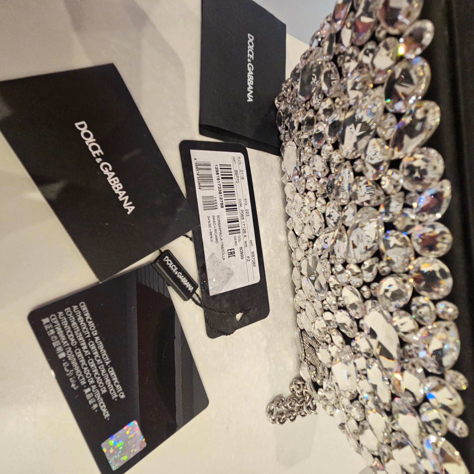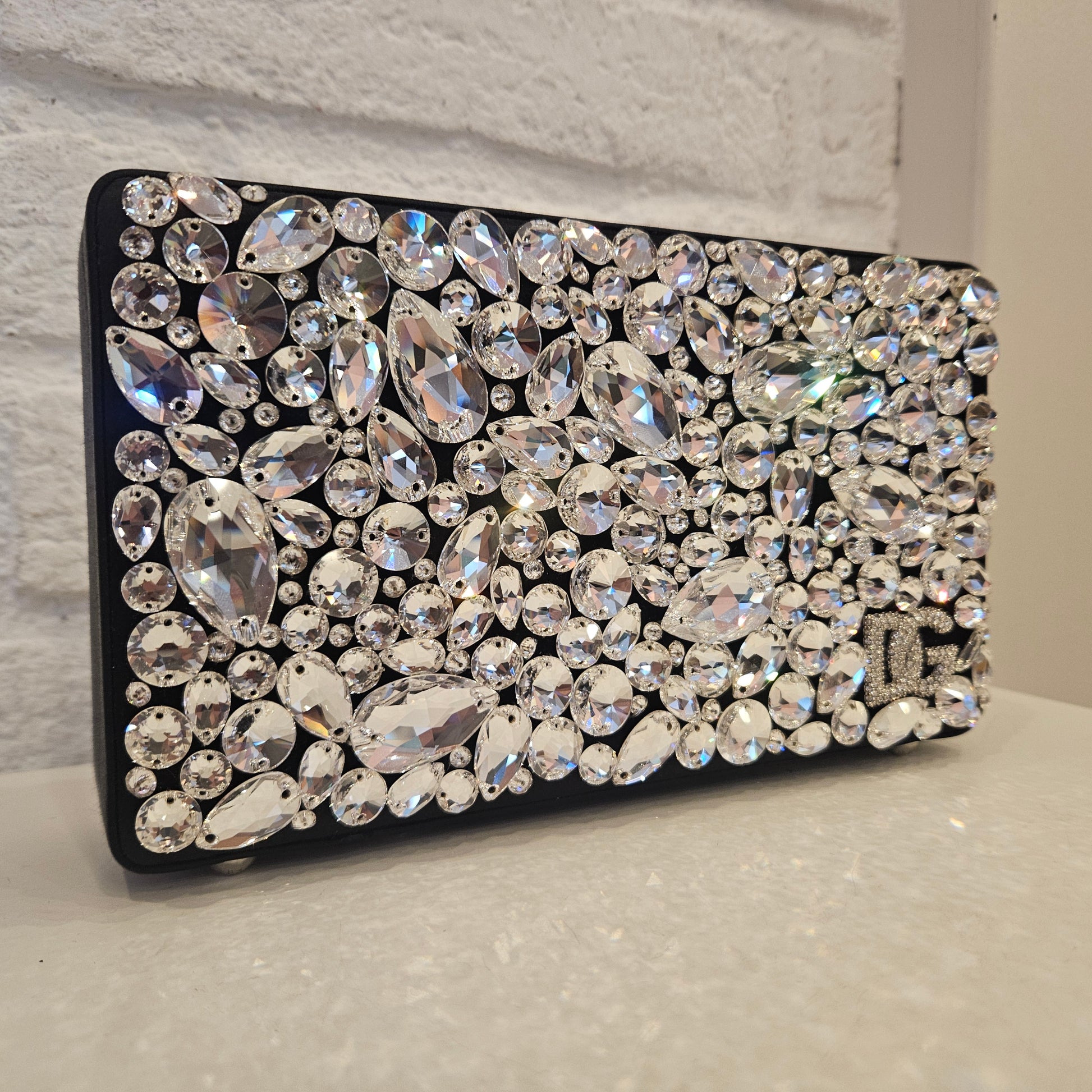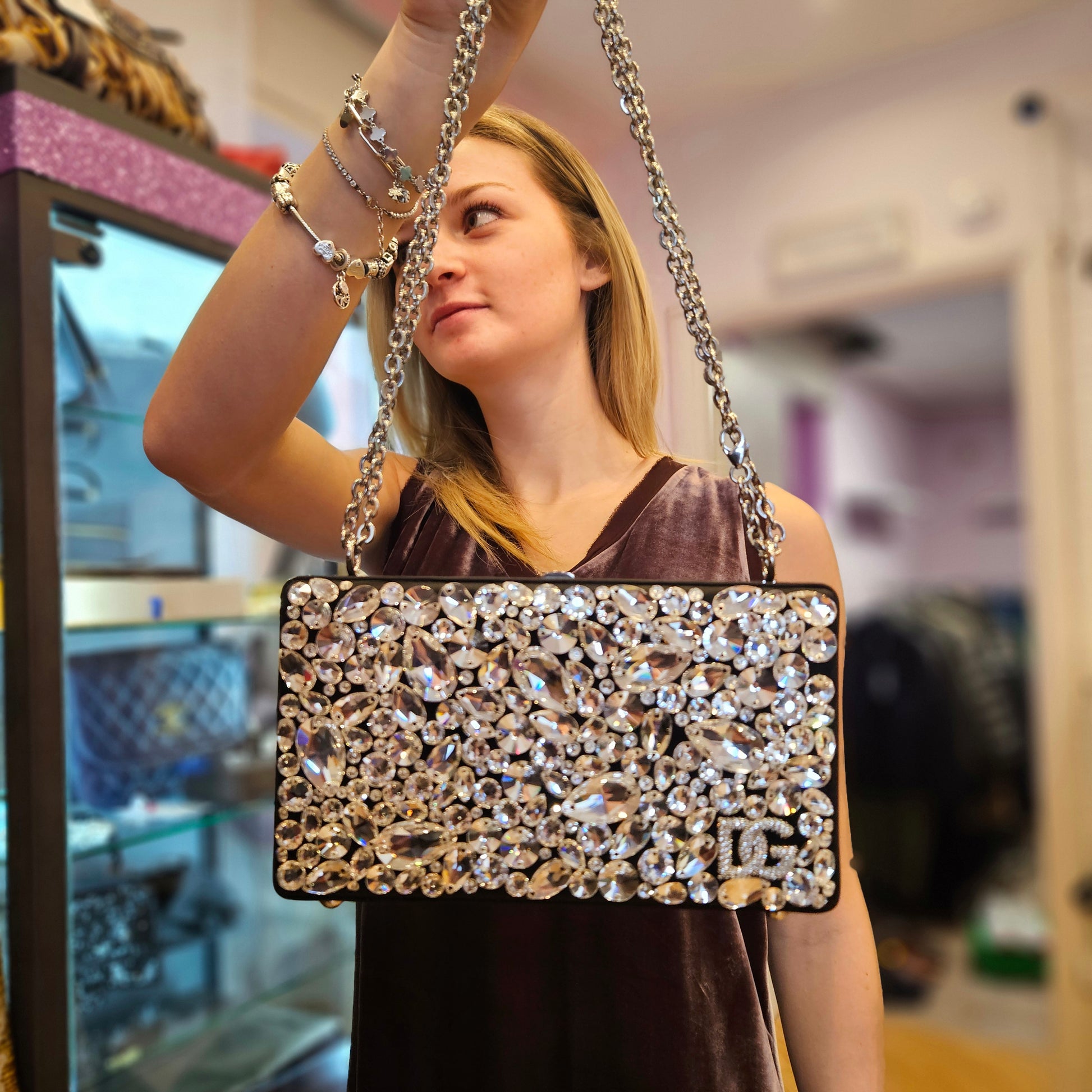 Tracollina Dolce&Gabbana in raso e Swarovski, borsetta rettangolare che può essere portata sia a tracolla che a mano, elegante e luminosissima