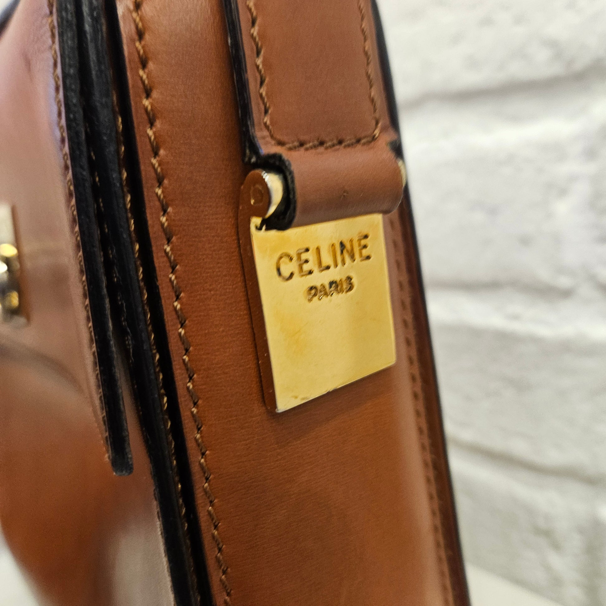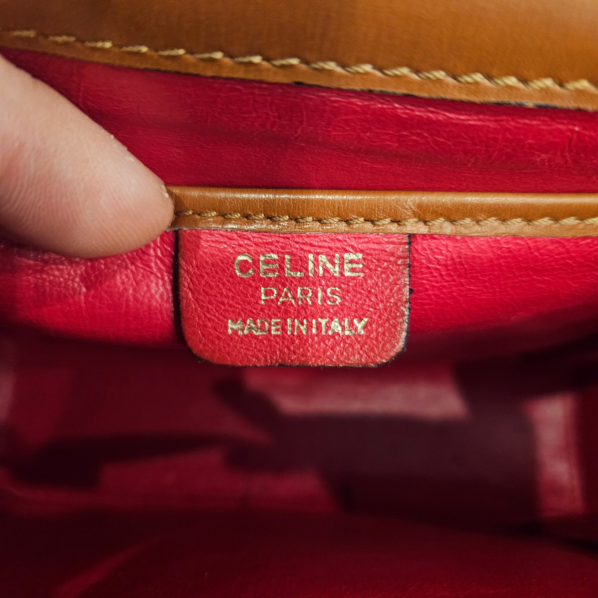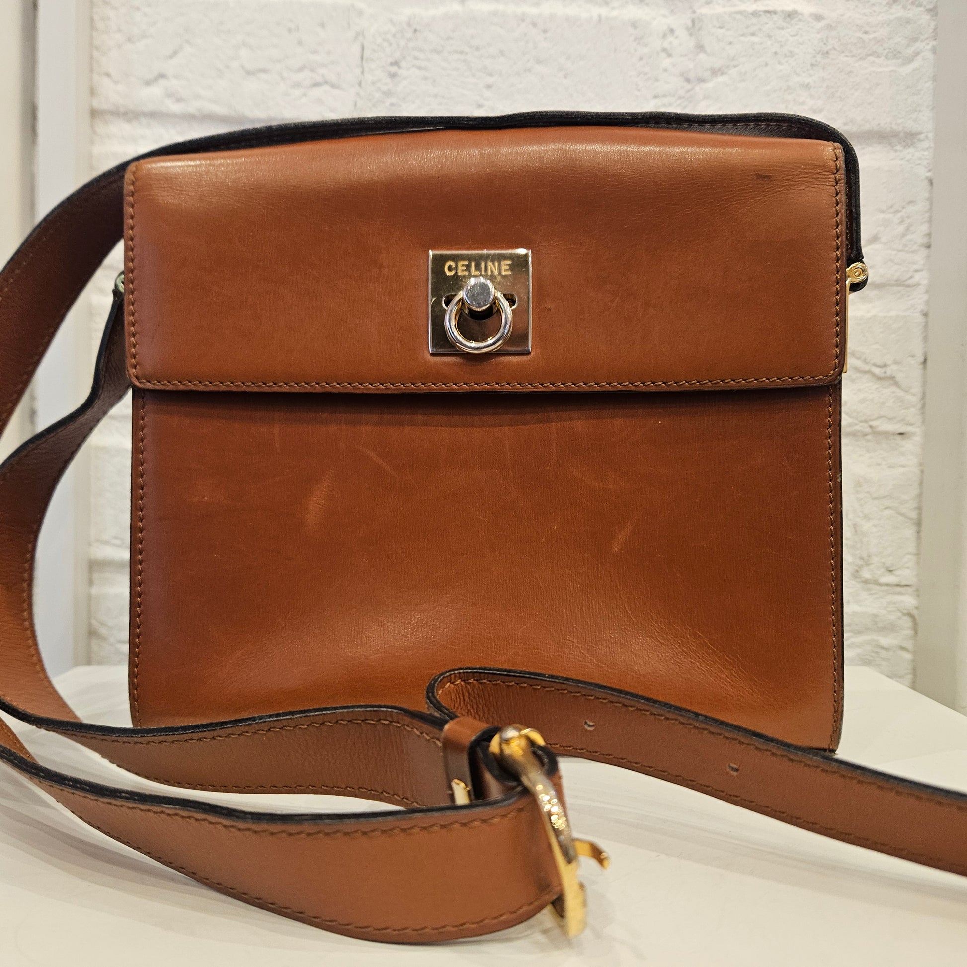 Tracollina vintage firmata Celine in pelle marrone e dettagli metallici dorati, borsa in buone condizioni segnaliamo normali segni dovuti all'uso e al tempo. Interno in pelle rossa con due tasche interne.