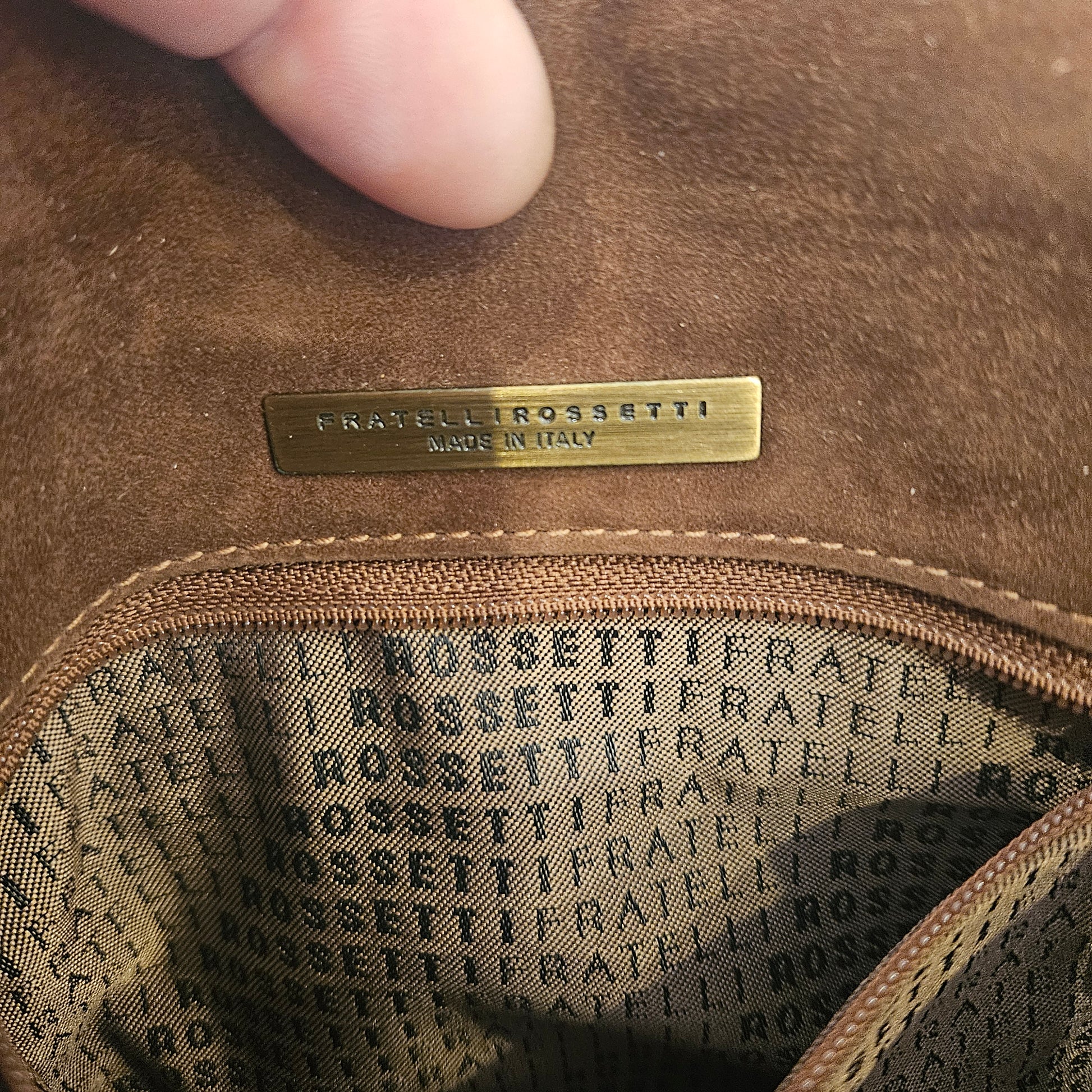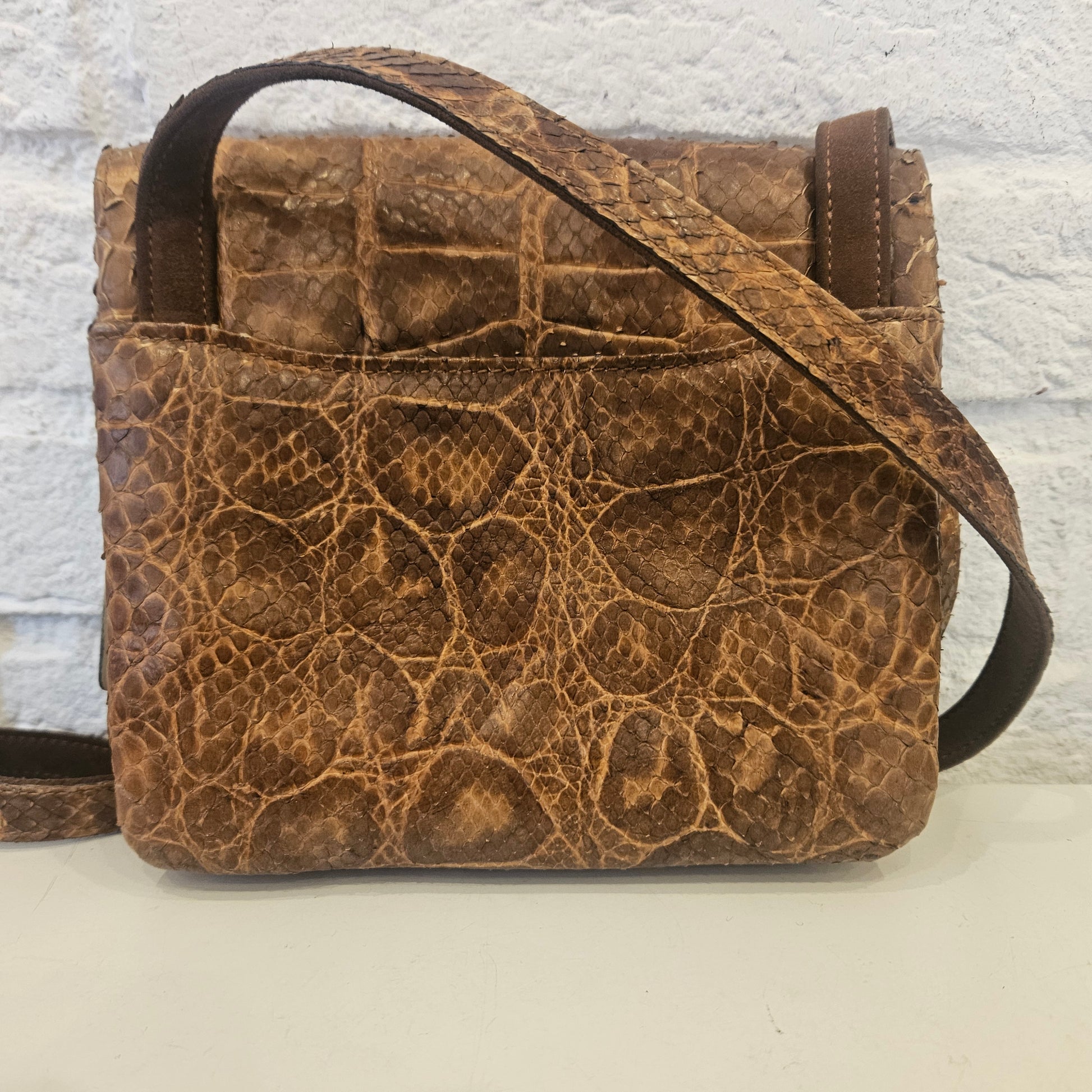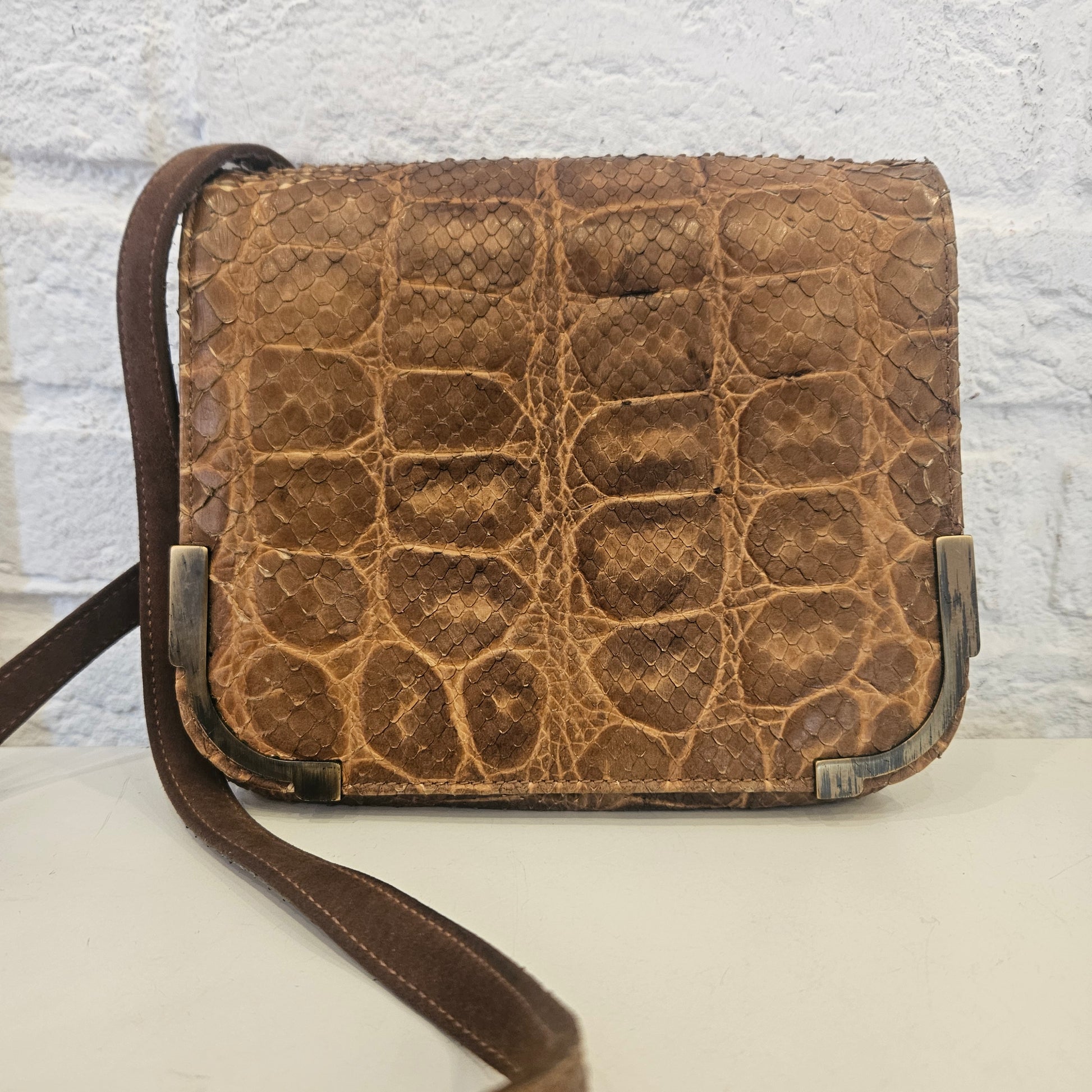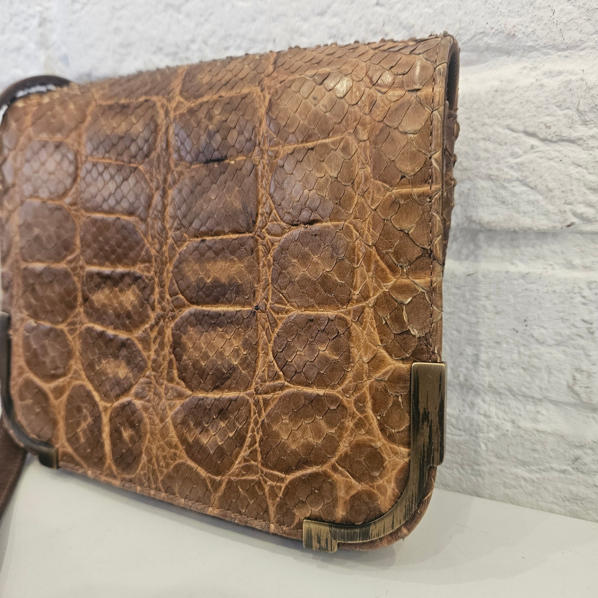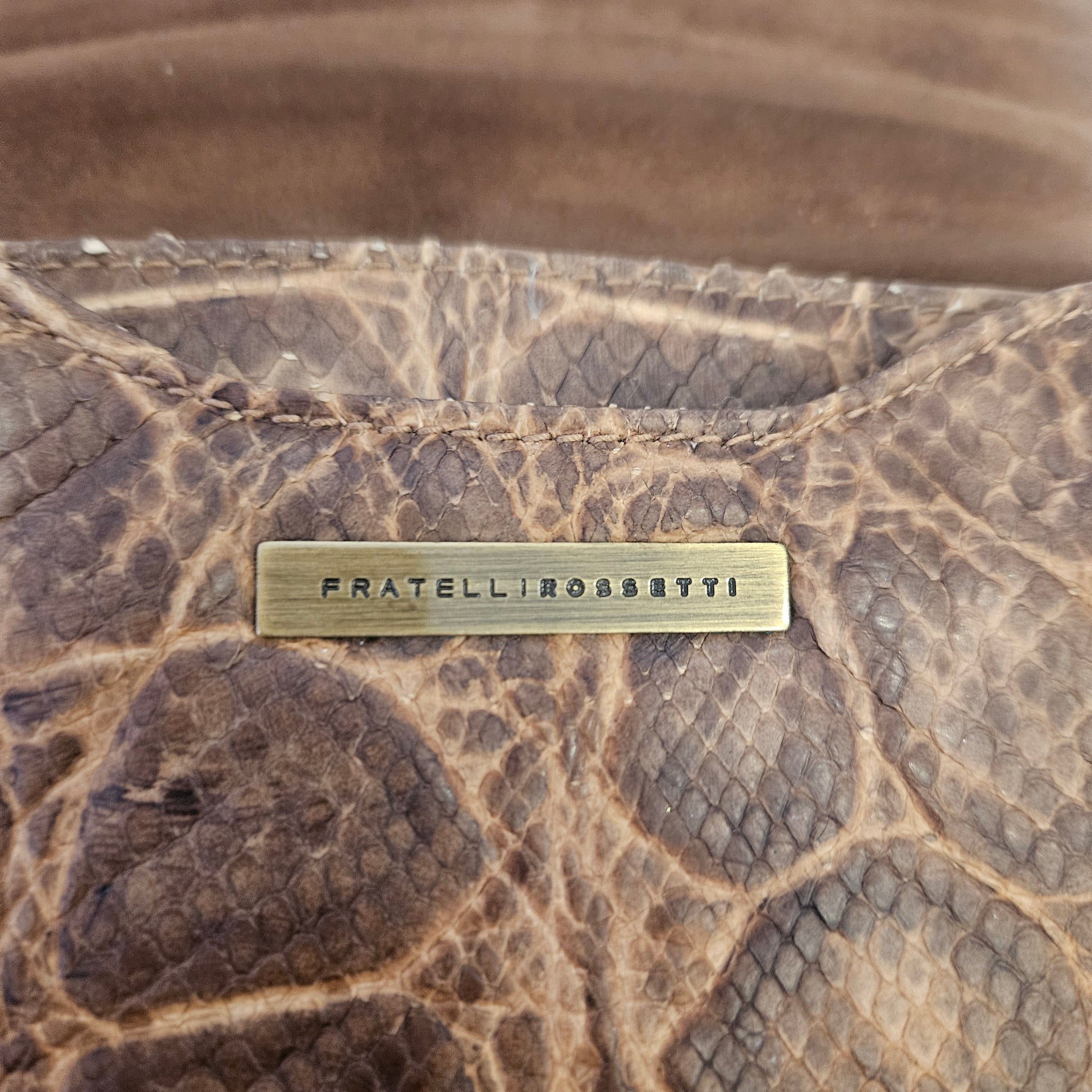 Tracollina Fratelli Rossetti in pelle esotica colorazione marrone e inserti in ottone.
