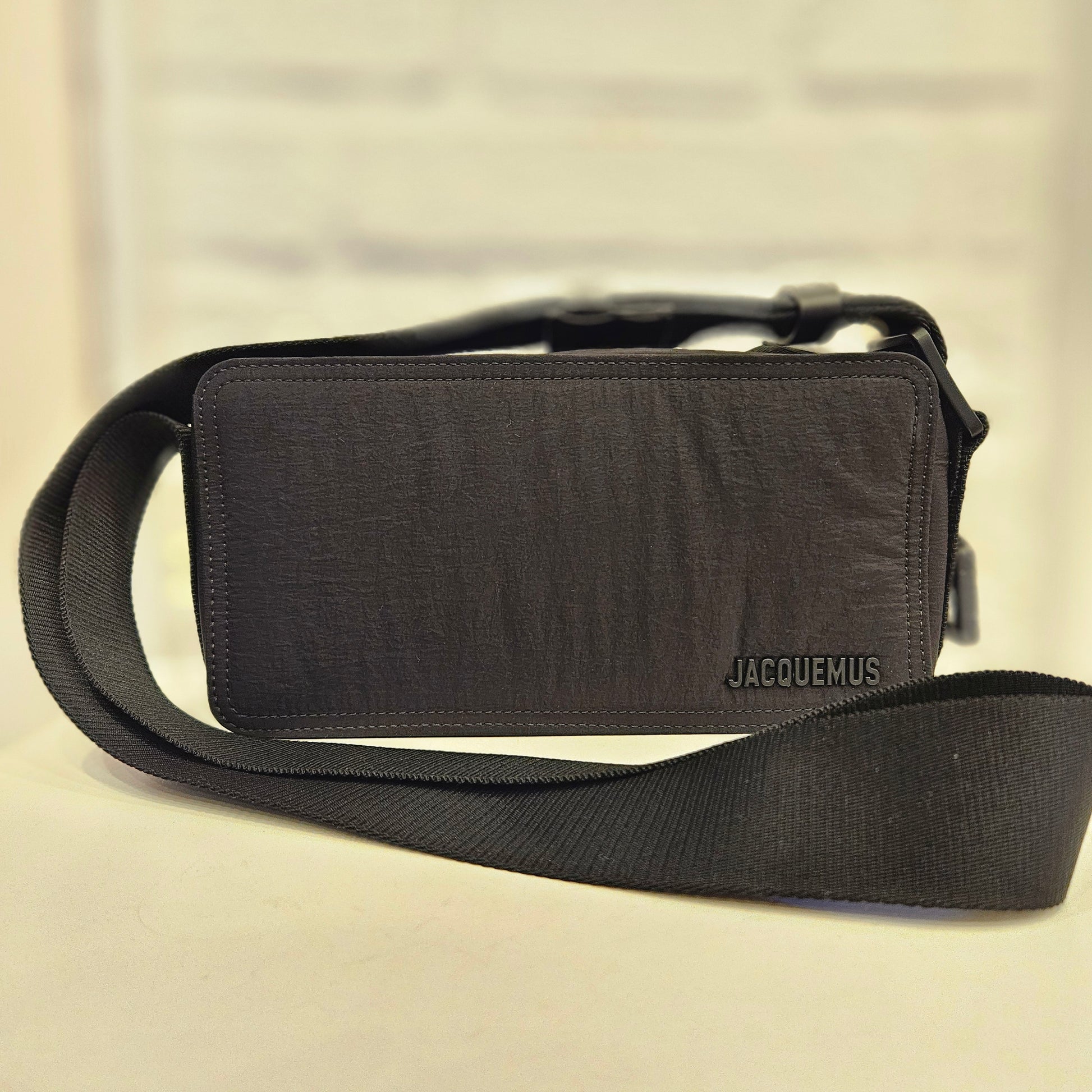 Tracollina Jacquemus in tessuto nero, articolo in ottimo stato dotata di tracolla regolabile e dustbag, interno in ottime condizioni, sono orsetti 2 tasche e una tasca esterna.