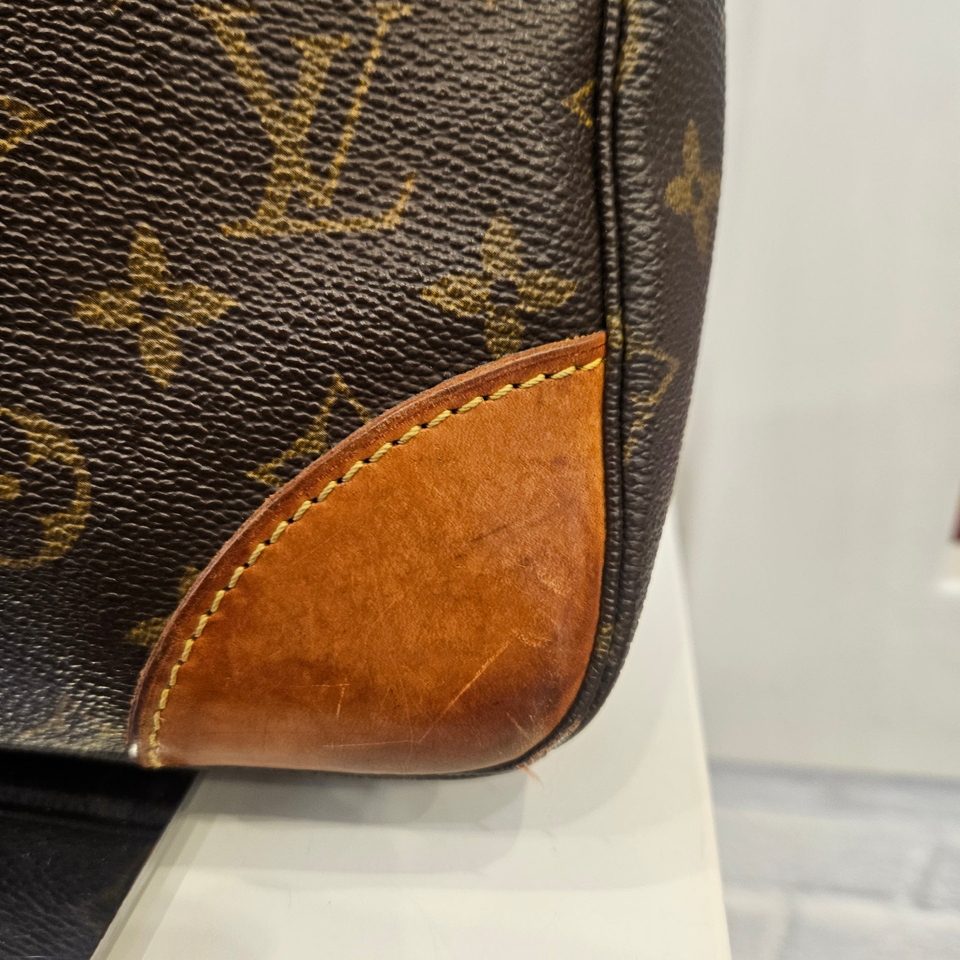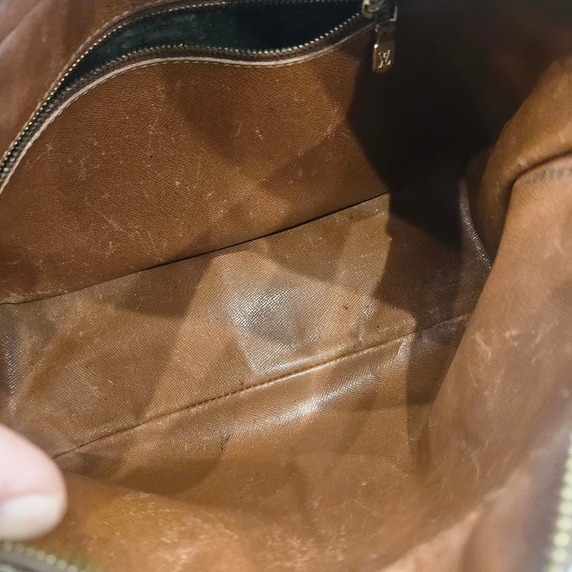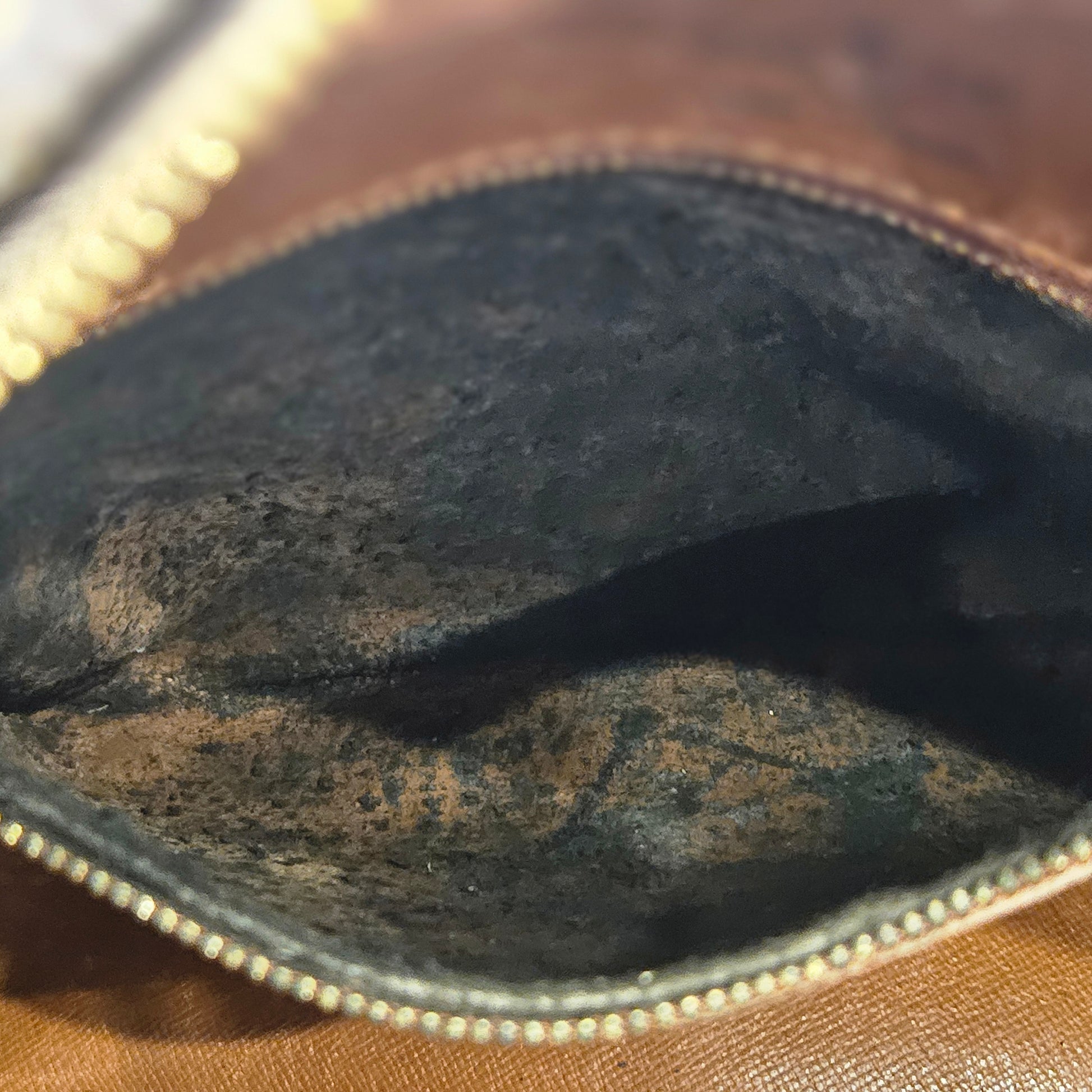 La borsa presenta diversi segni del tempo, la tracolla è stata probabilmente sostituita mentre il poggia spalla é ancora l'originale dell'epoca