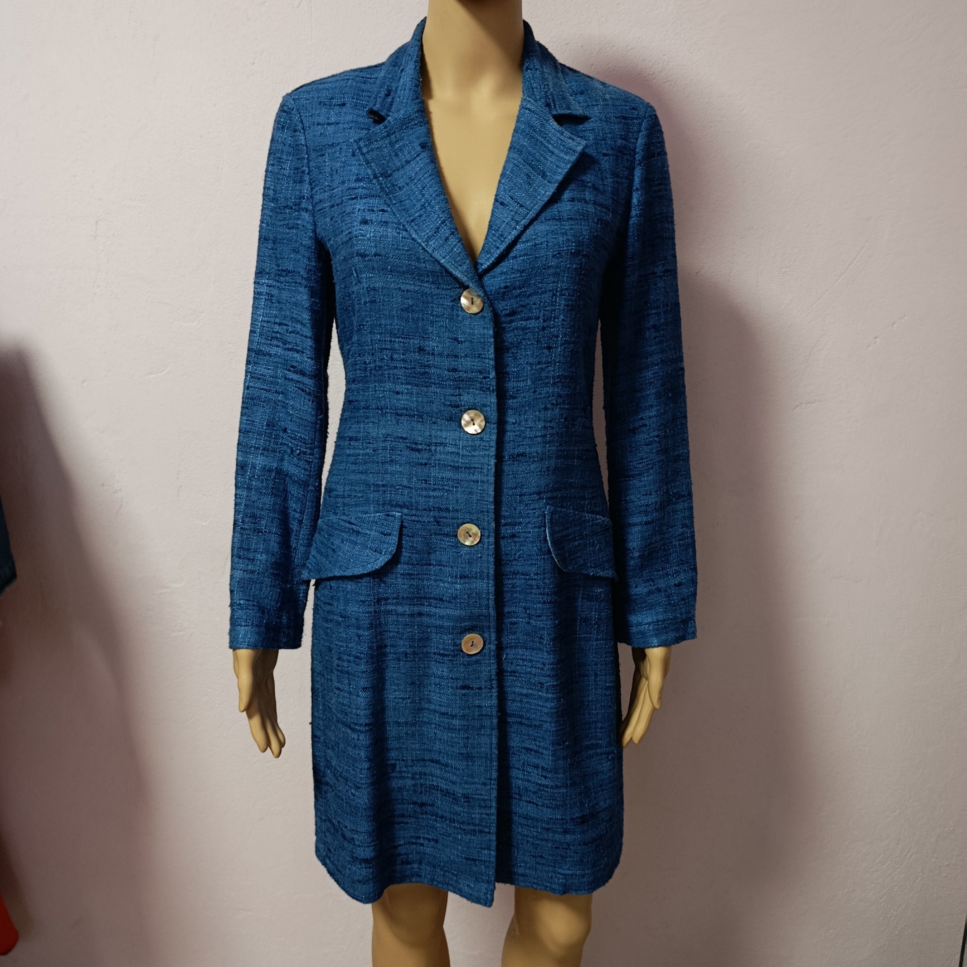 Trench azzurro La Guglielmina con bottoni stile madreperla tg 40.