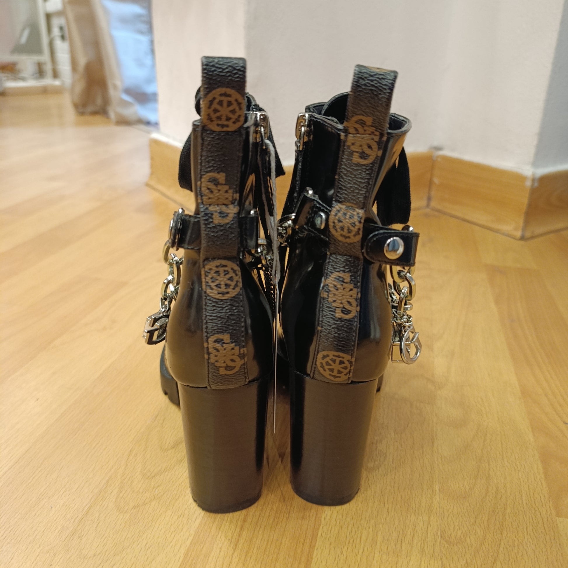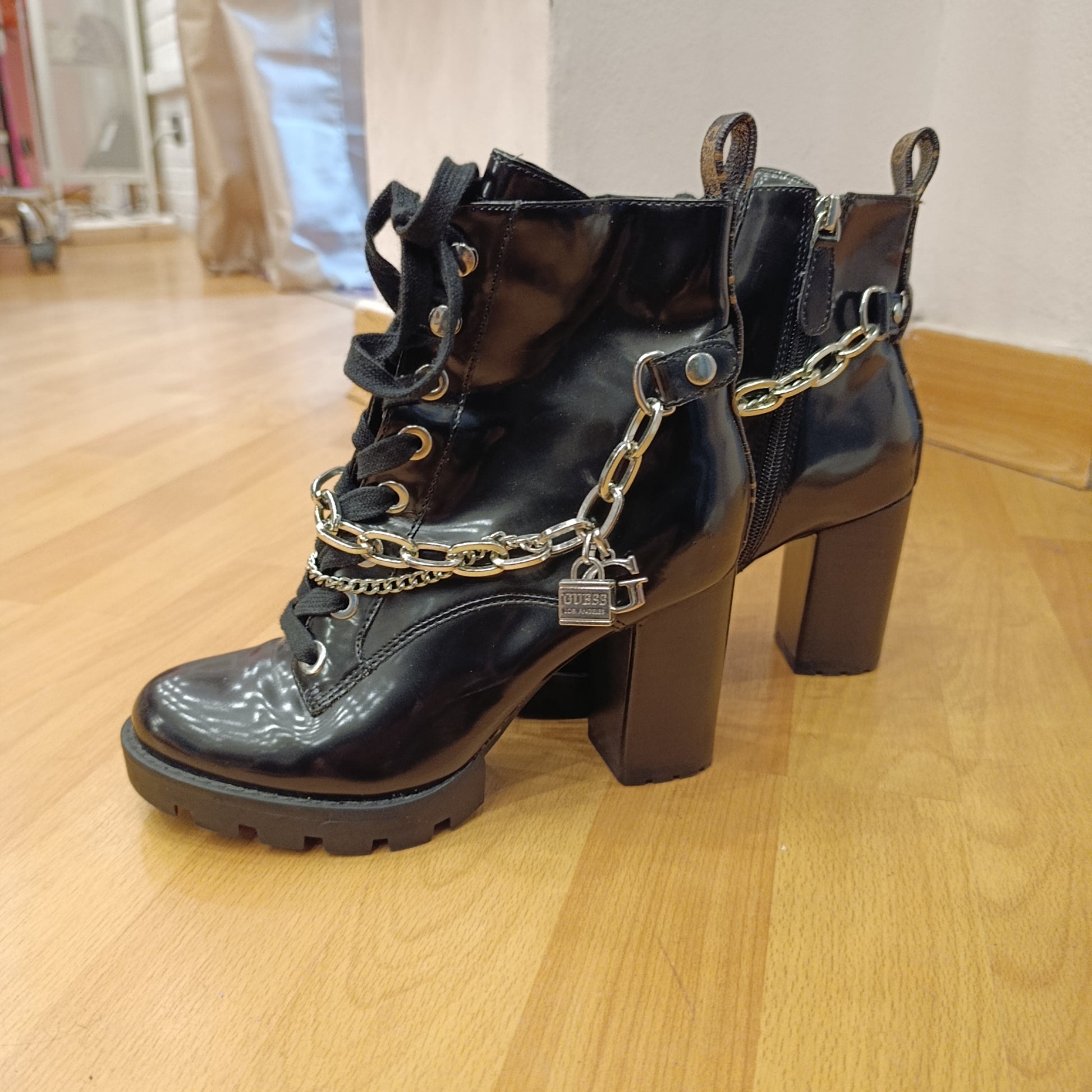 Tacco 8.5cm, altezza totale scarpa 20.5cm, circonferenza caviglia 9cm circa.